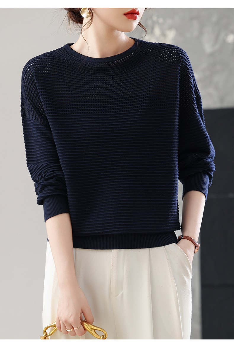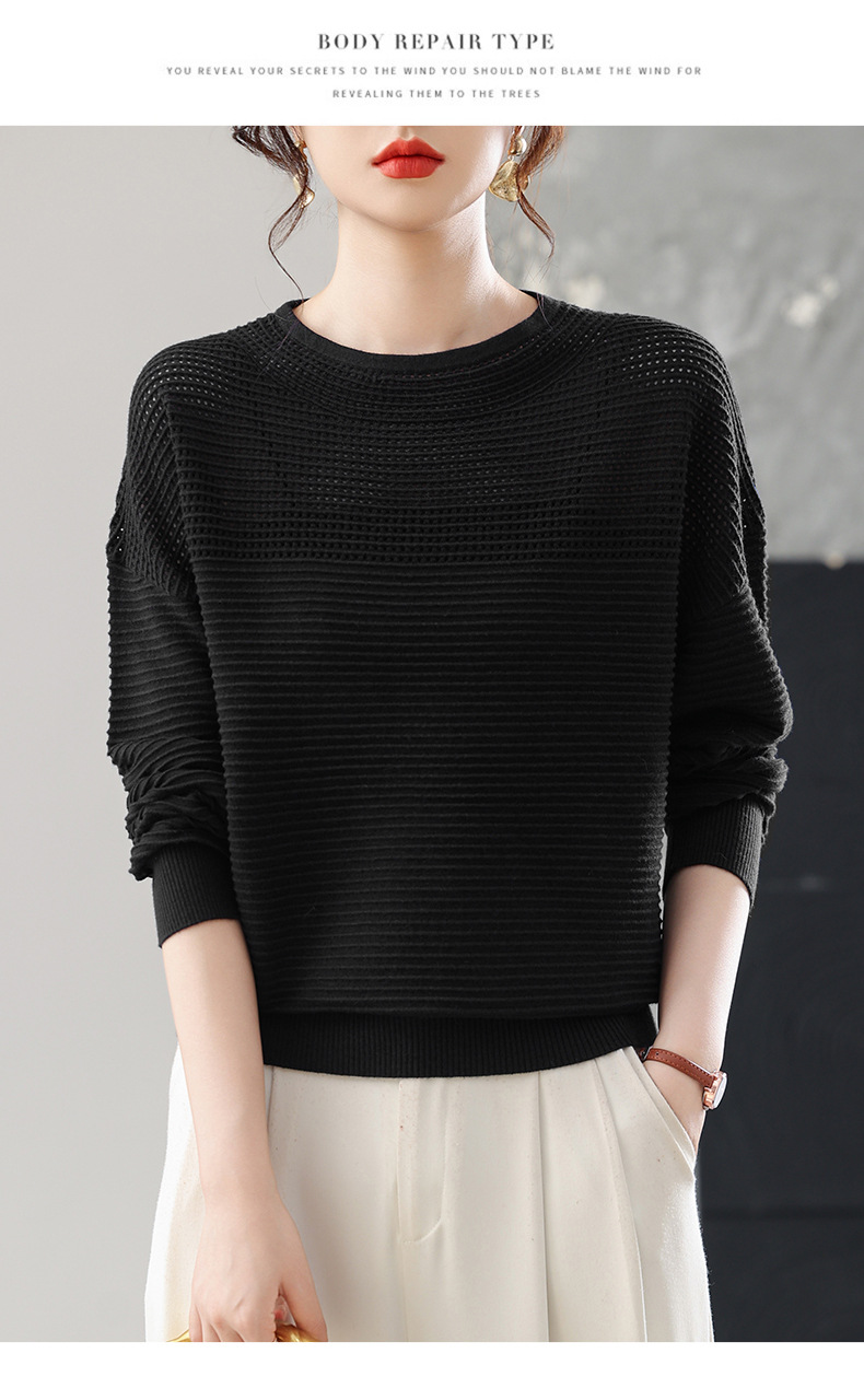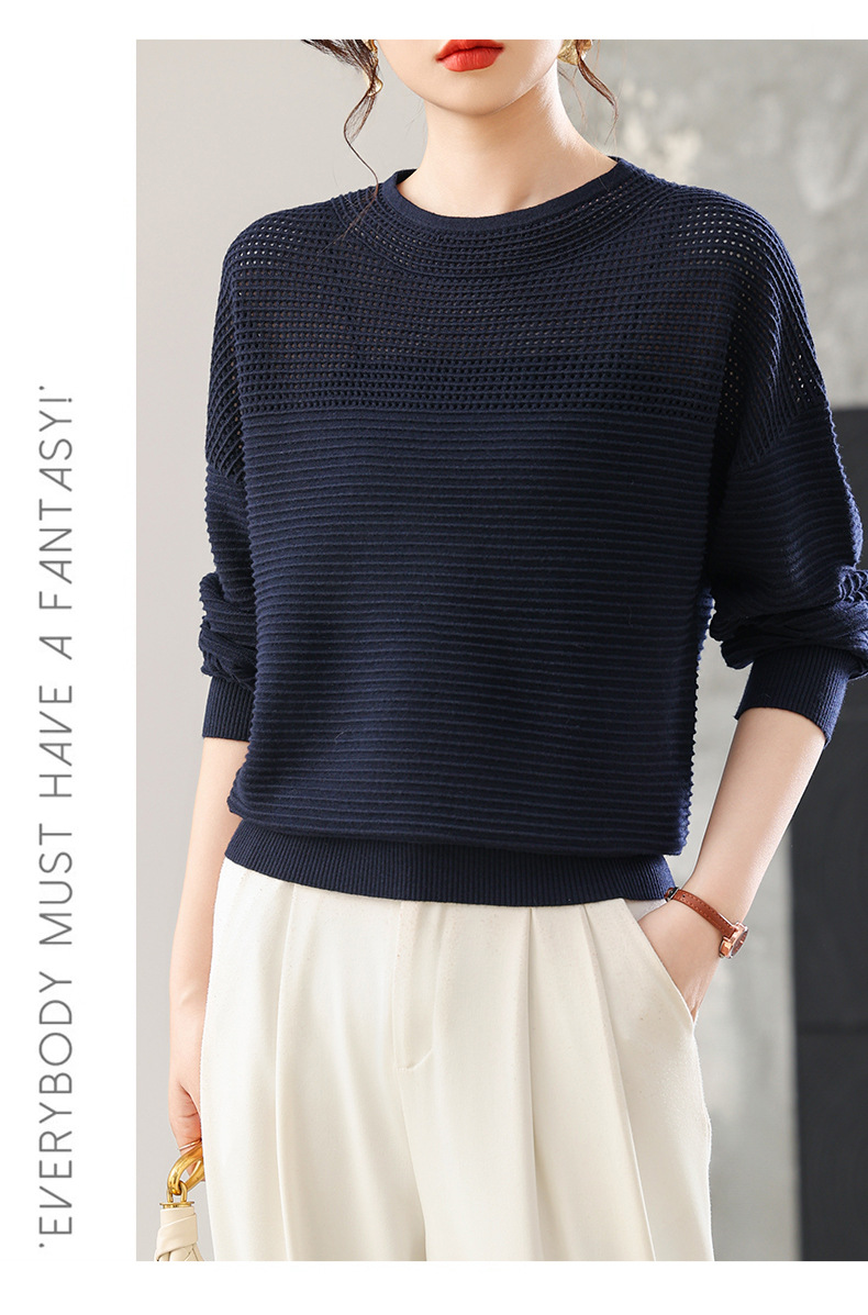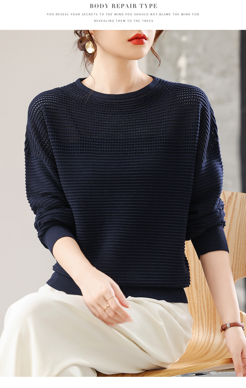 CC女士早秋薄款镂空针织衫宽松上衣春秋装2025新款洋气打底毛衣