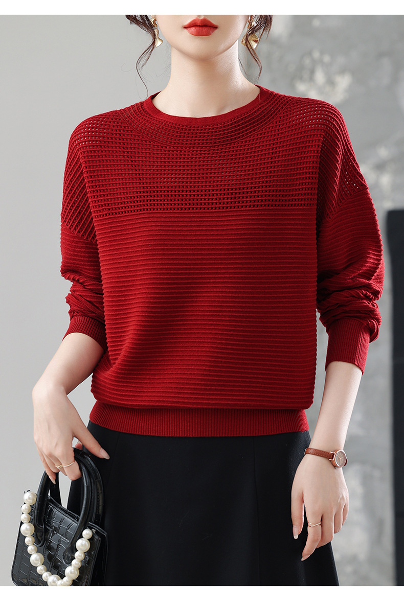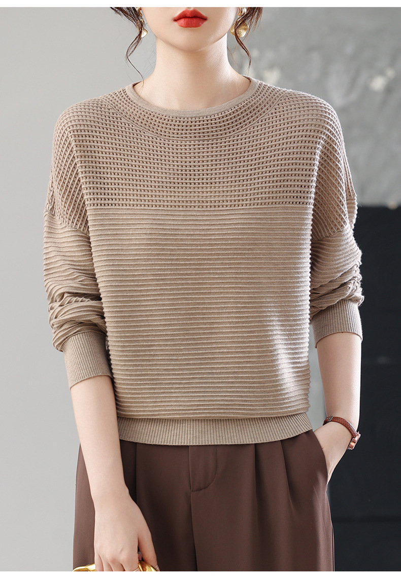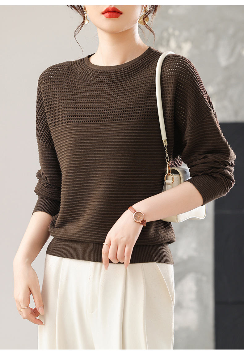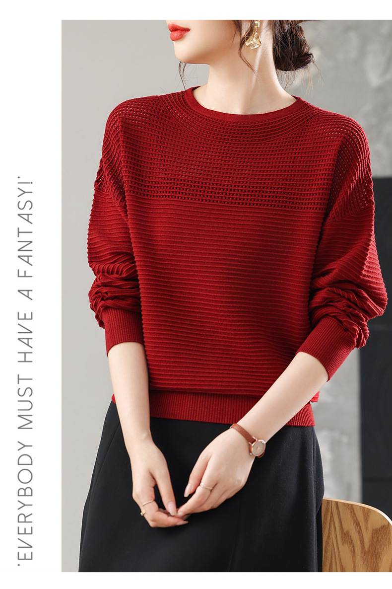 CC女士早秋薄款镂空针织衫宽松上衣春秋装2025新款洋气打底毛衣