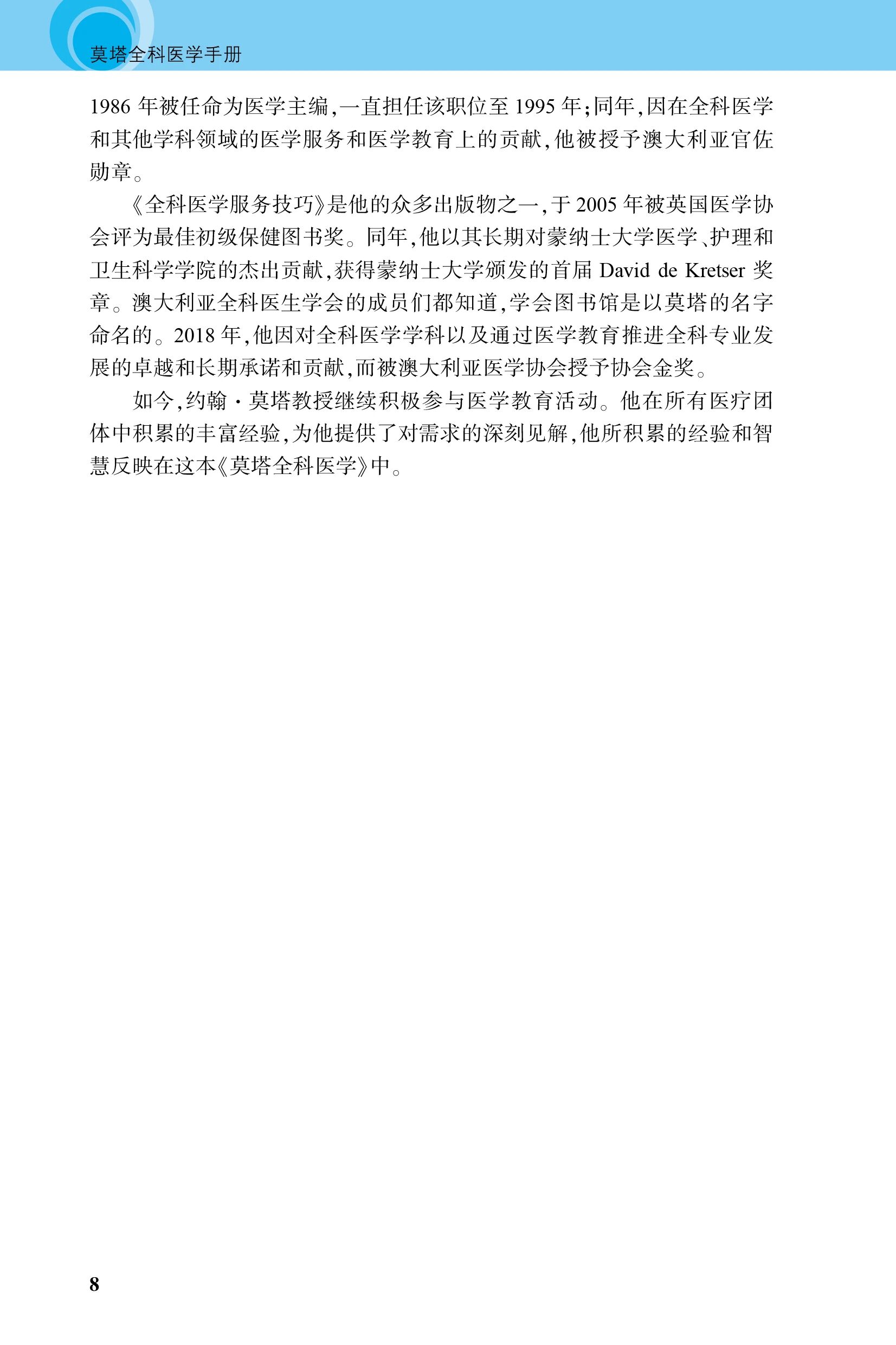 《莫塔全科医学》是由澳大利亚著名全科医学专家约翰·莫塔(John Murtagh)教授领衔编写的一部享誉全球的经典著作。被誉为全科医学与初级医疗保健领域的金标准参考书。2023年,该书第8版中文版正式与中国读者见面,为我国全科医学的发展注入了新的理论滋养。