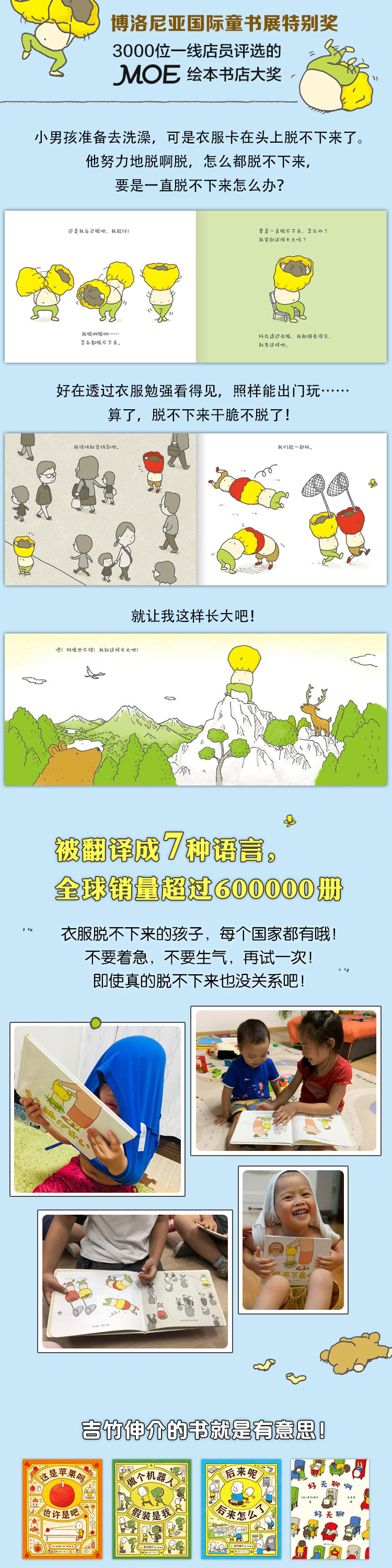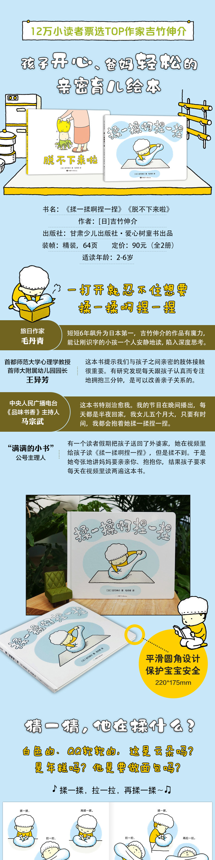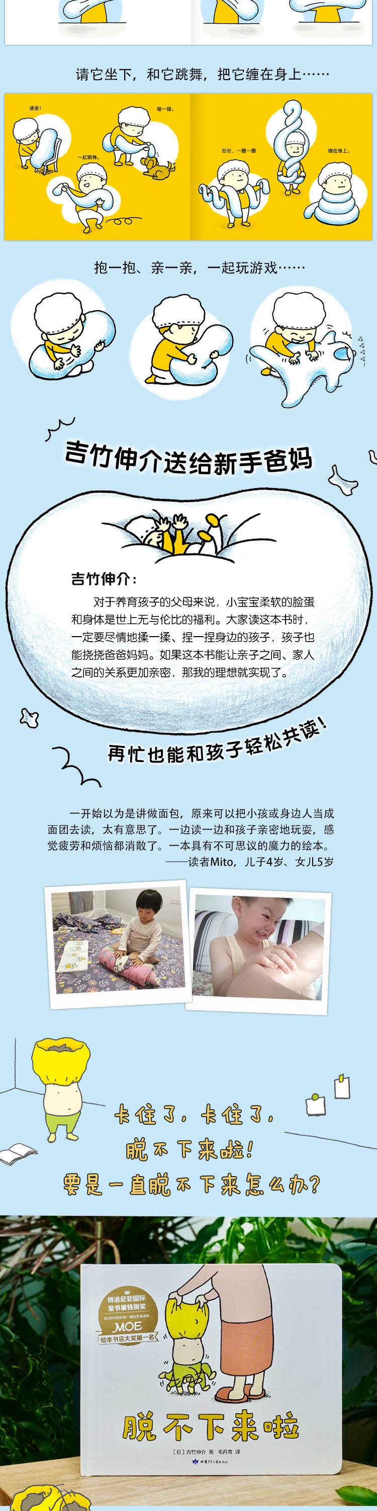 ★绘本届顶·级流量吉竹伸介亲子互动绘本,低龄宝宝***。收录《脱不下来啦》《夏美什么都能变》《哈哈哈早上好》《揉一揉啊捏一捏》。