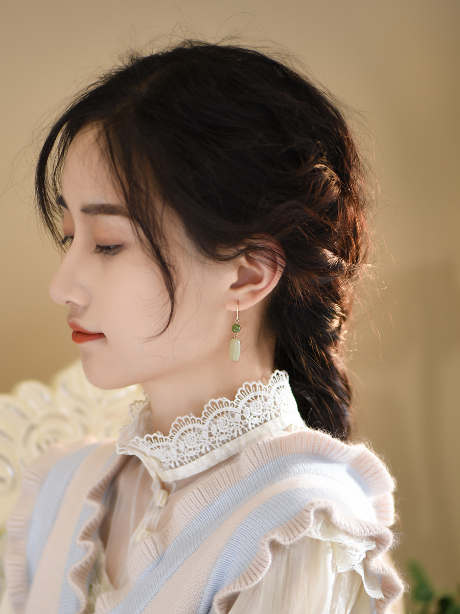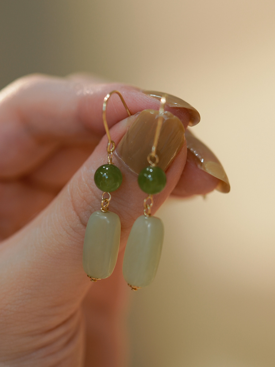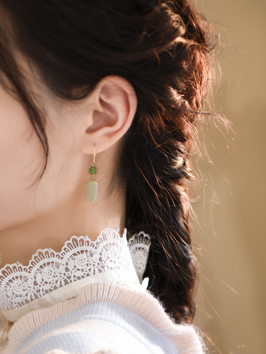 QSS倾尽年华和田玉碧玉14K包金原创小众设计国潮感轻奢耳环耳夹