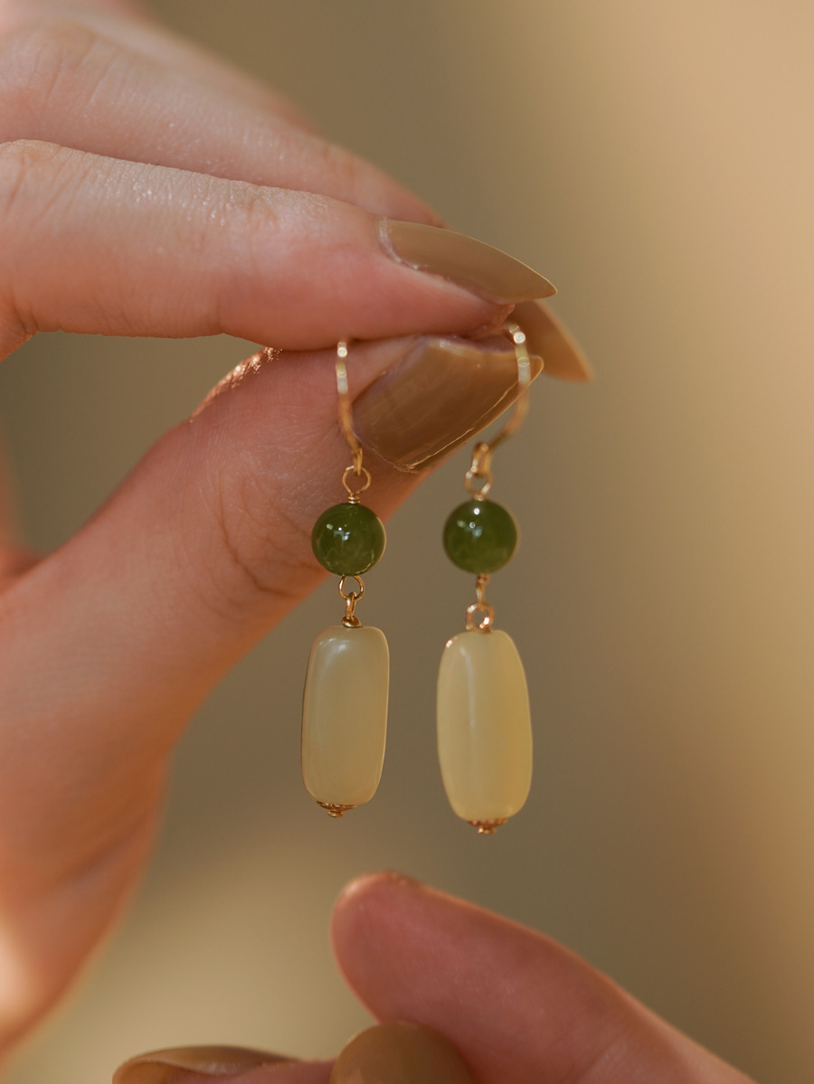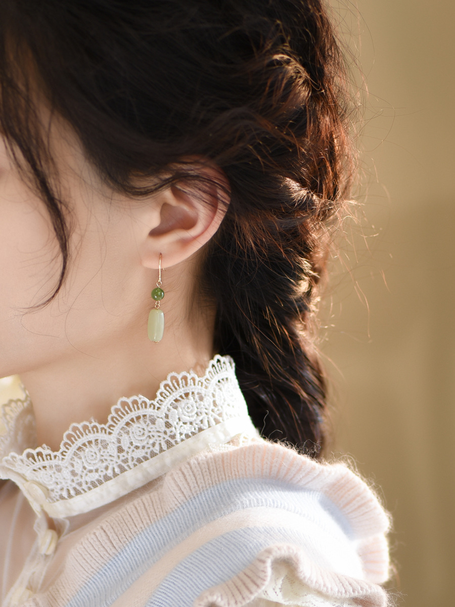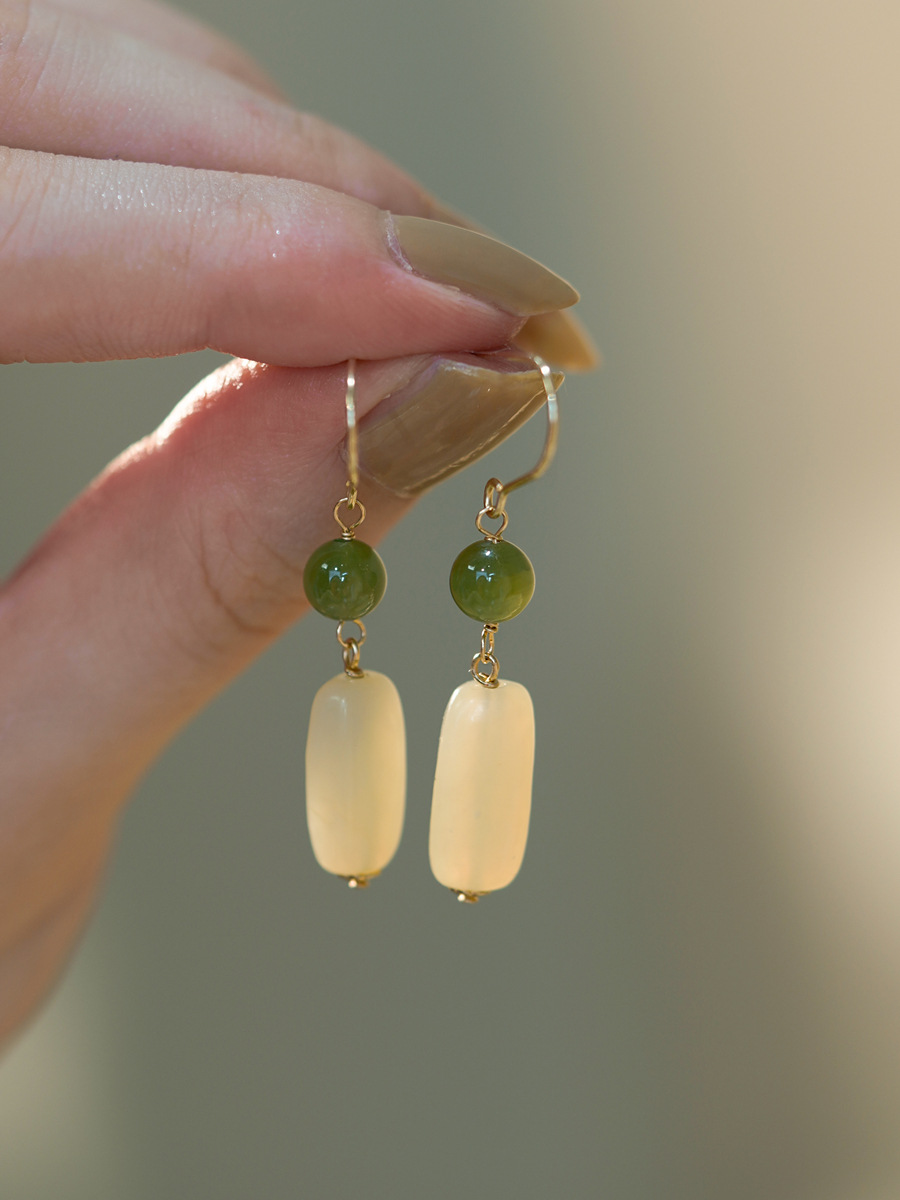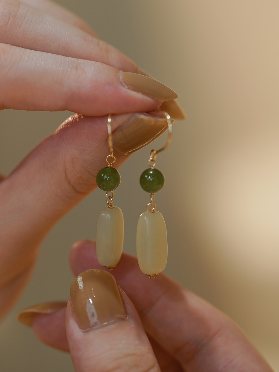 QSS倾尽年华和田玉碧玉14K包金原创小众设计国潮感轻奢耳环耳夹