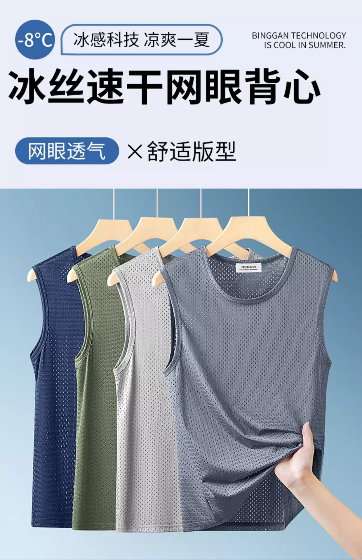 速干网眼透气冰丝男士背心运动无袖上衣200025