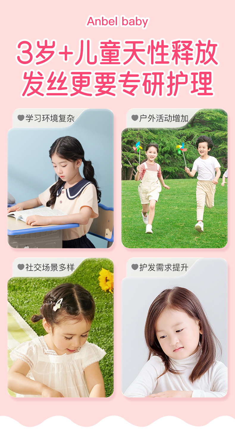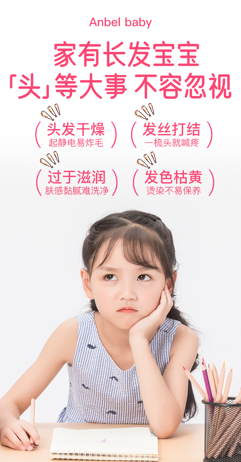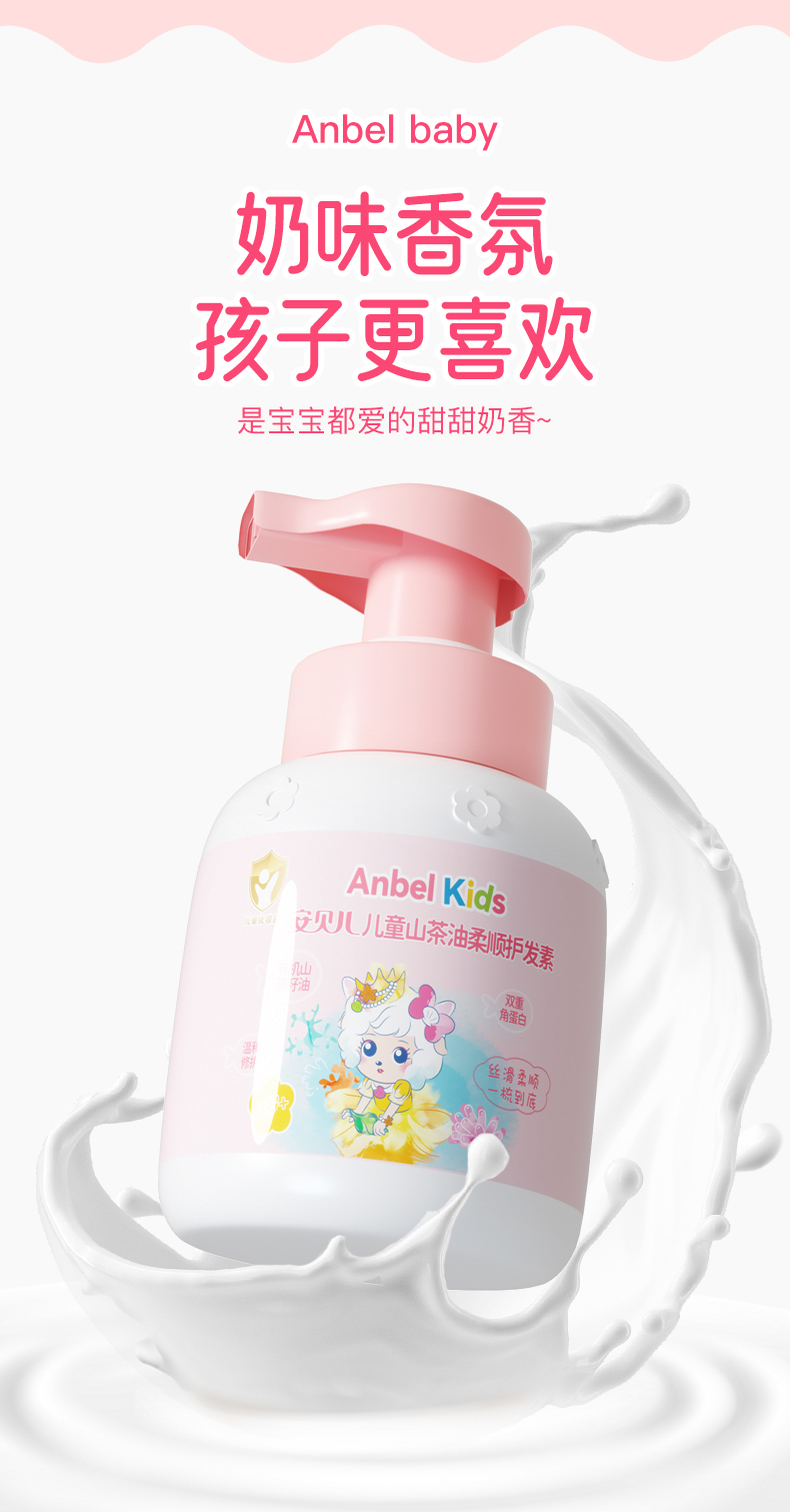 测评优品-安贝儿 儿童山茶油护发素 柔顺护发 改善毛躁 易清洗 不假滑 成分温和