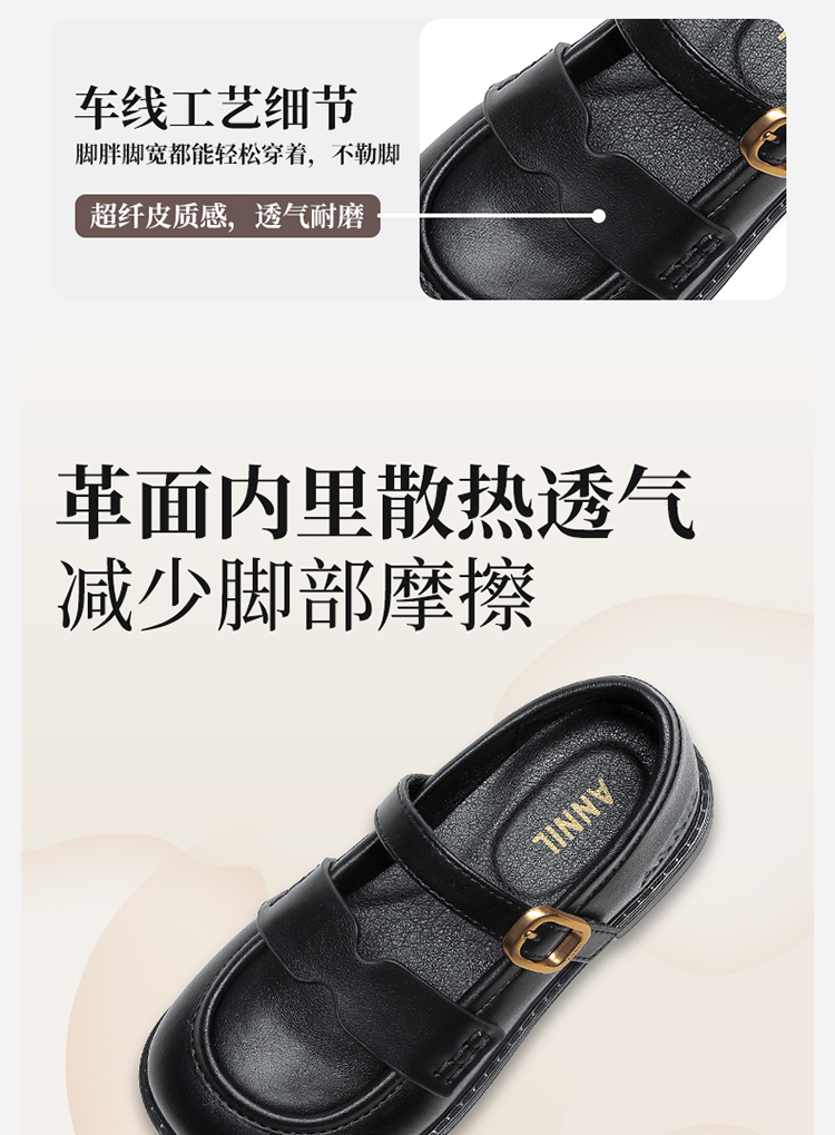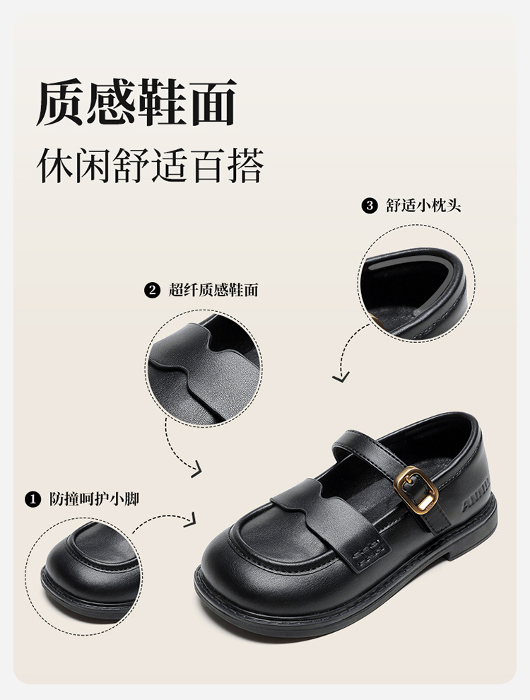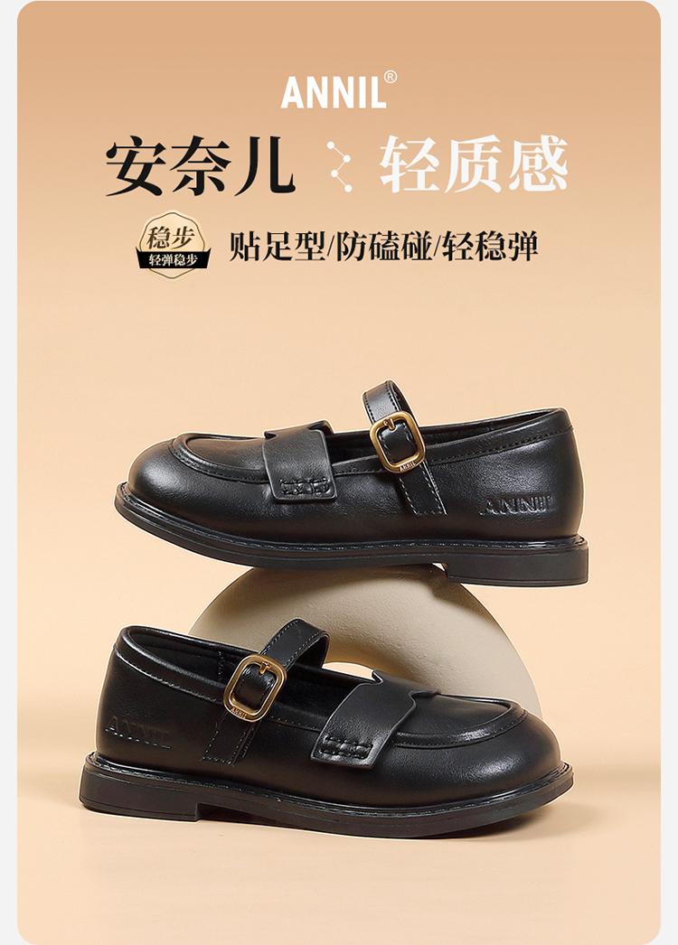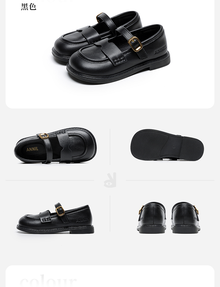 ANNIL/安奈儿女童皮鞋秋款小公主鞋黑色学生软底鞋女孩儿童鞋HM4301079