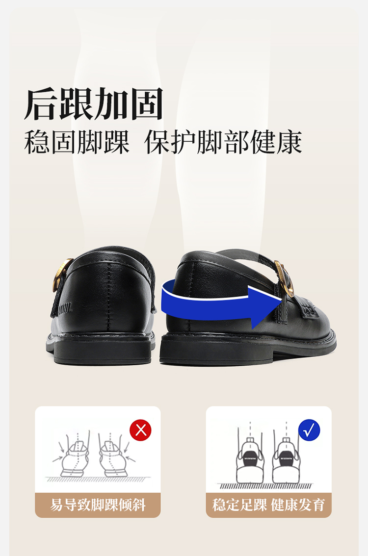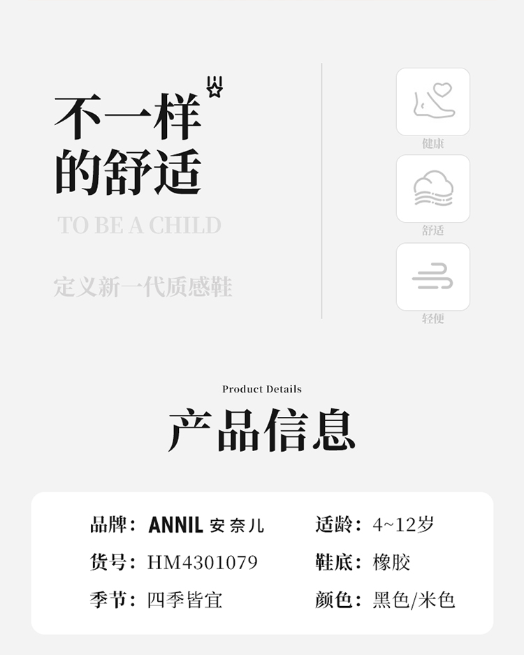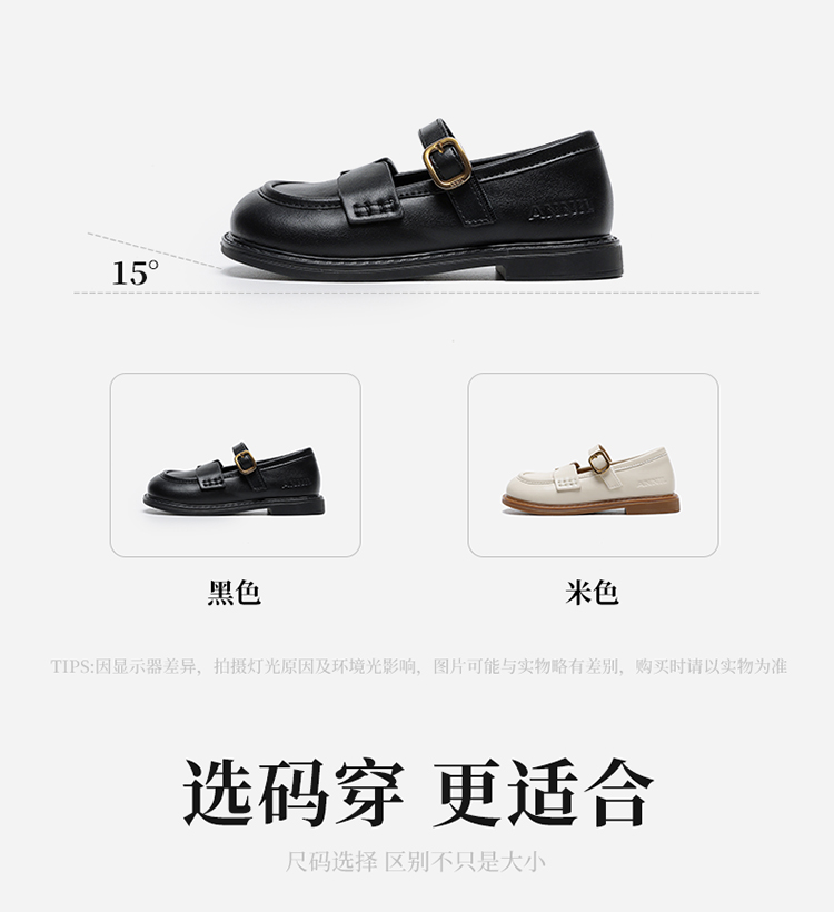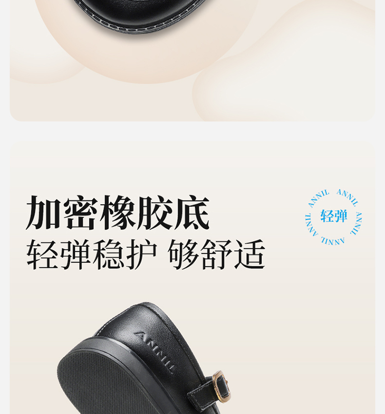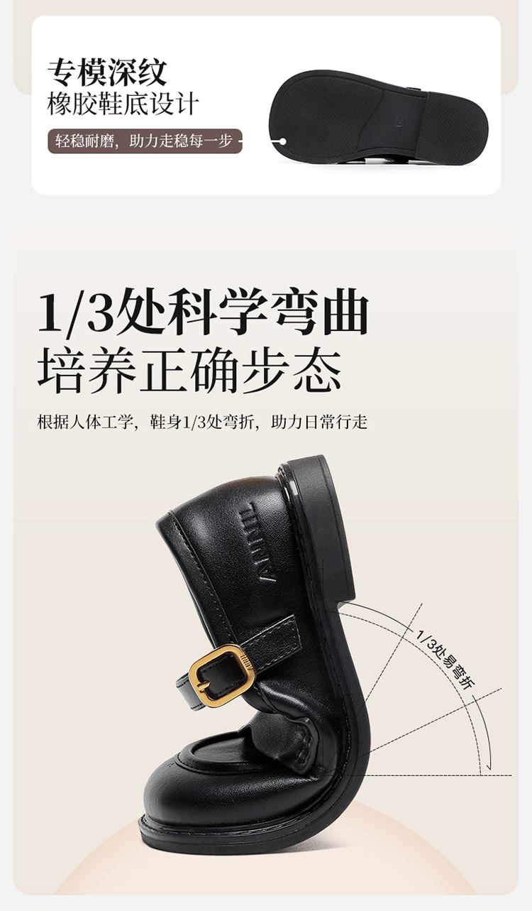ANNIL/安奈儿女童皮鞋秋款小公主鞋黑色学生软底鞋女孩儿童鞋HM4301079