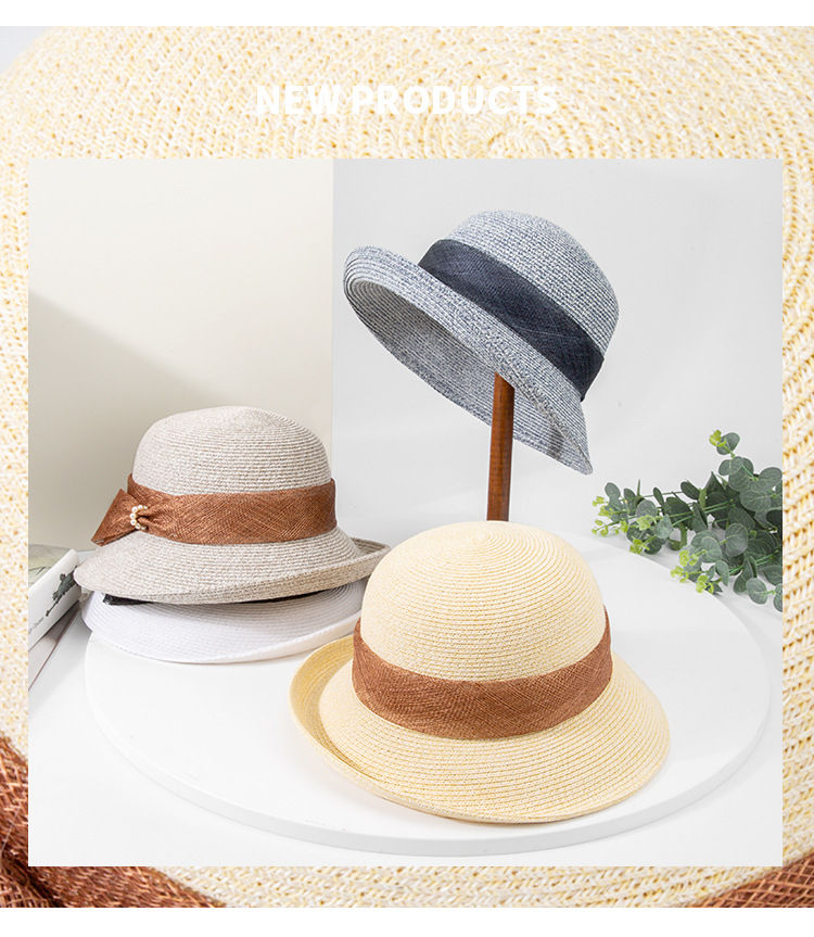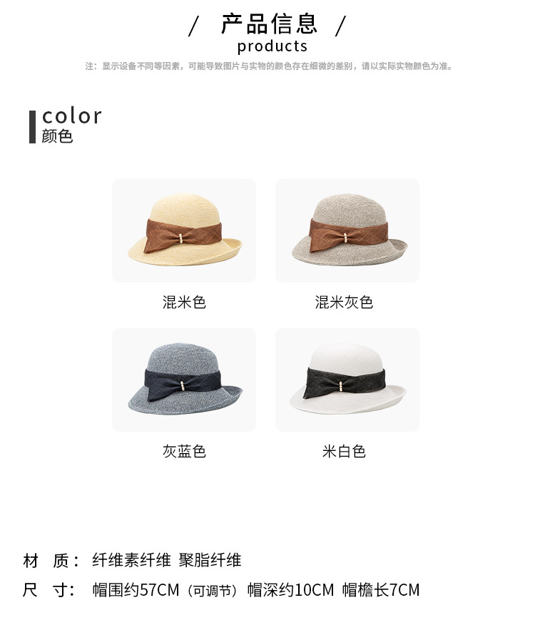 雀说 春夏草编防晒渔夫帽子女夏季出游时尚百搭海边遮阳帽4ZF-9164