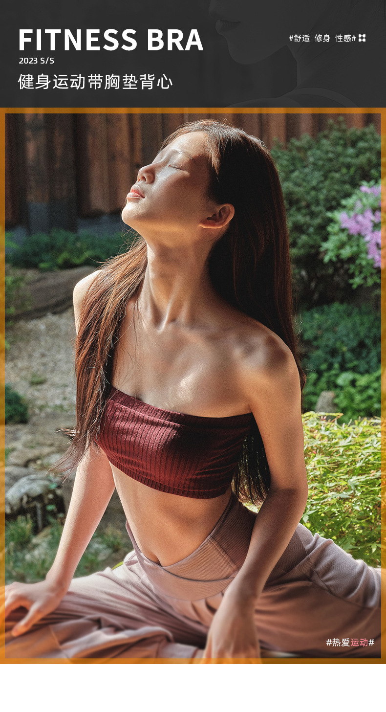 跃牌【洛水之神系列】 新款一体式胸垫速干高弹立体条纹瑜伽文胸HN159