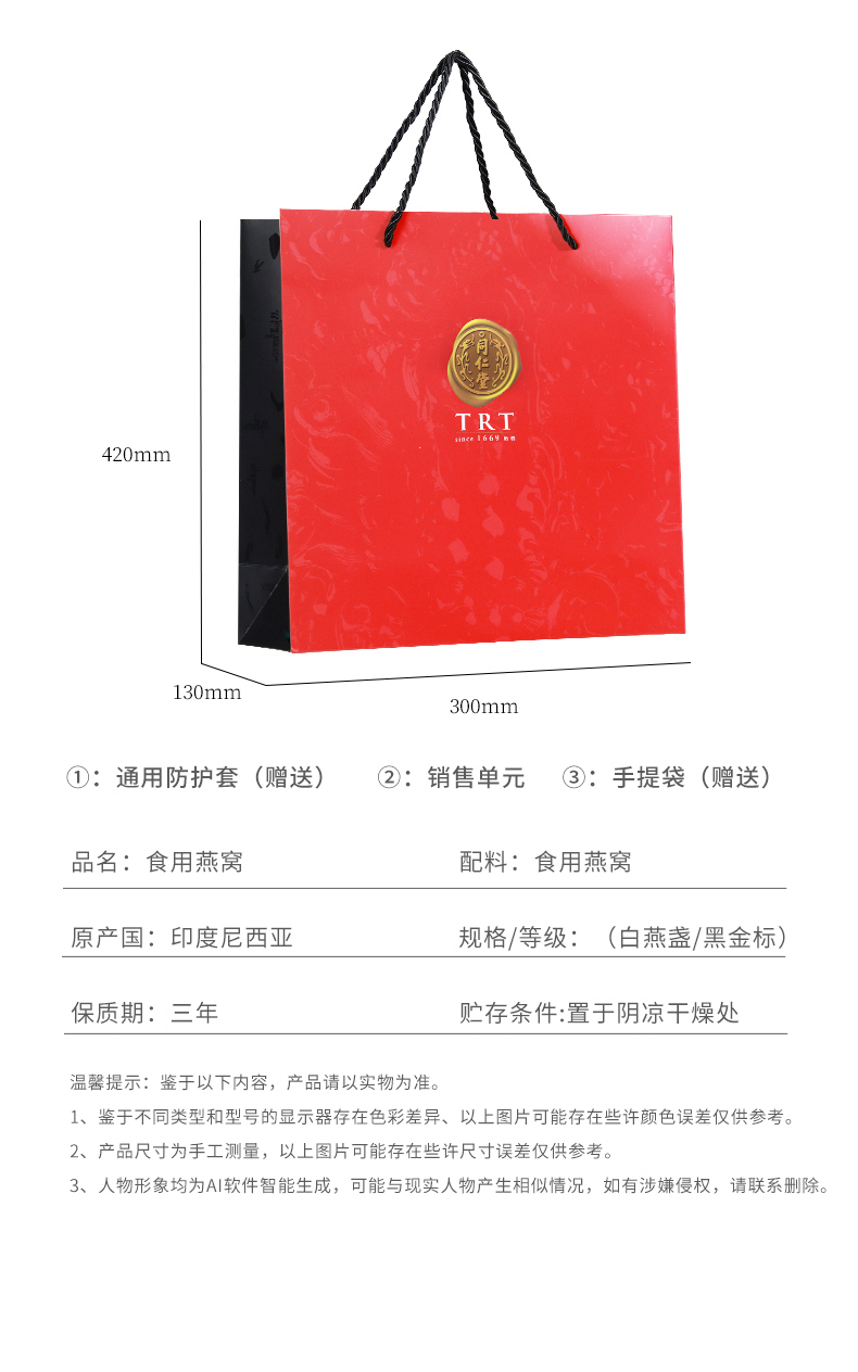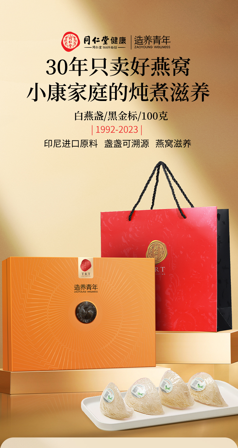 【正宗同仁堂品牌】北京同仁堂 干燕窝礼盒(黑金标款)100克 印尼进口溯源干燕盏 送长辈 孝敬父母 孕妇滋补礼品SY