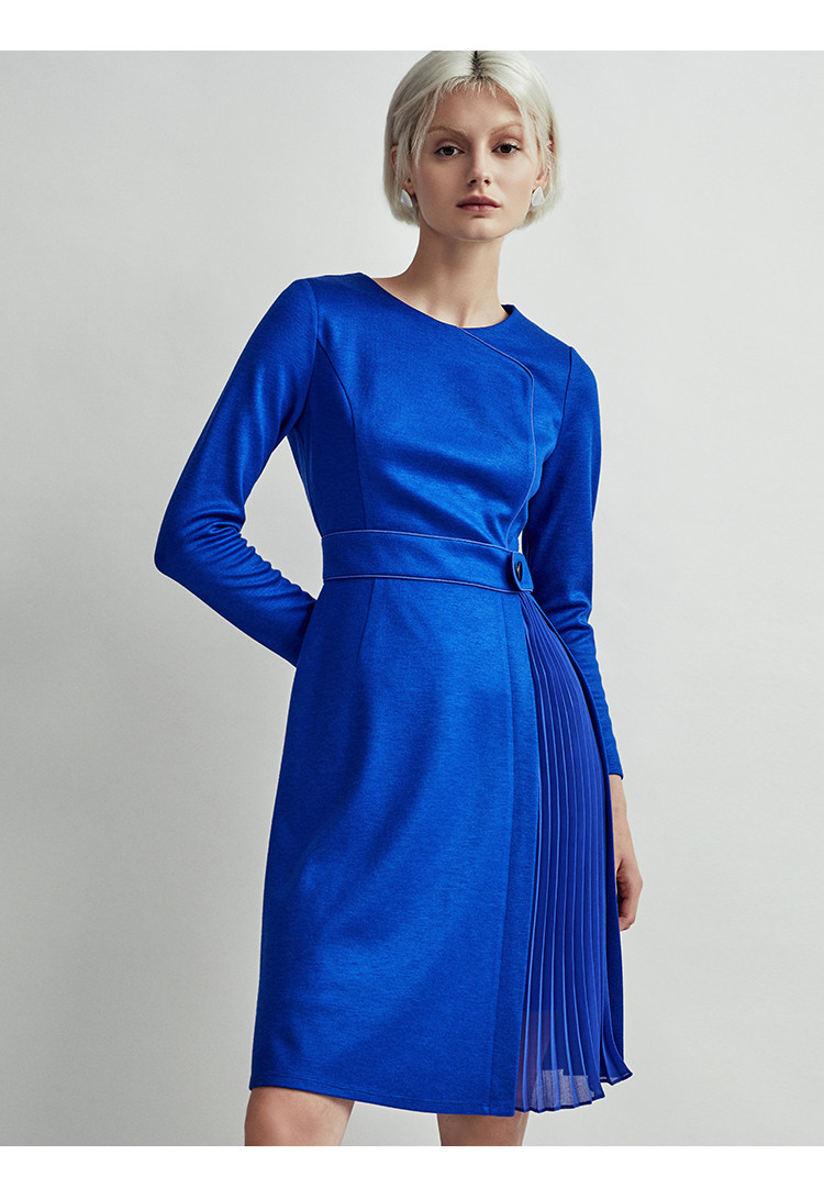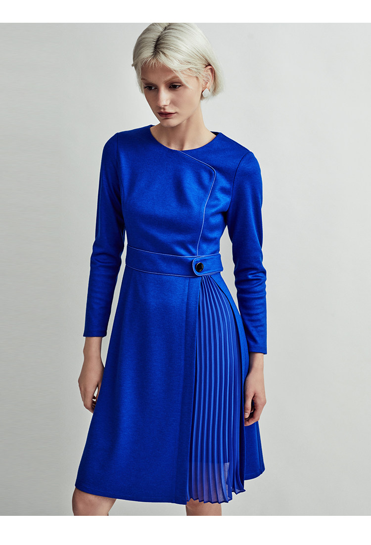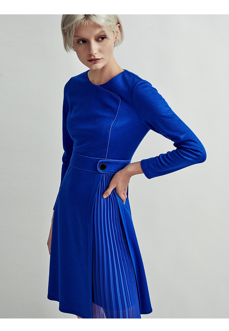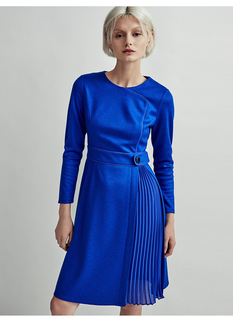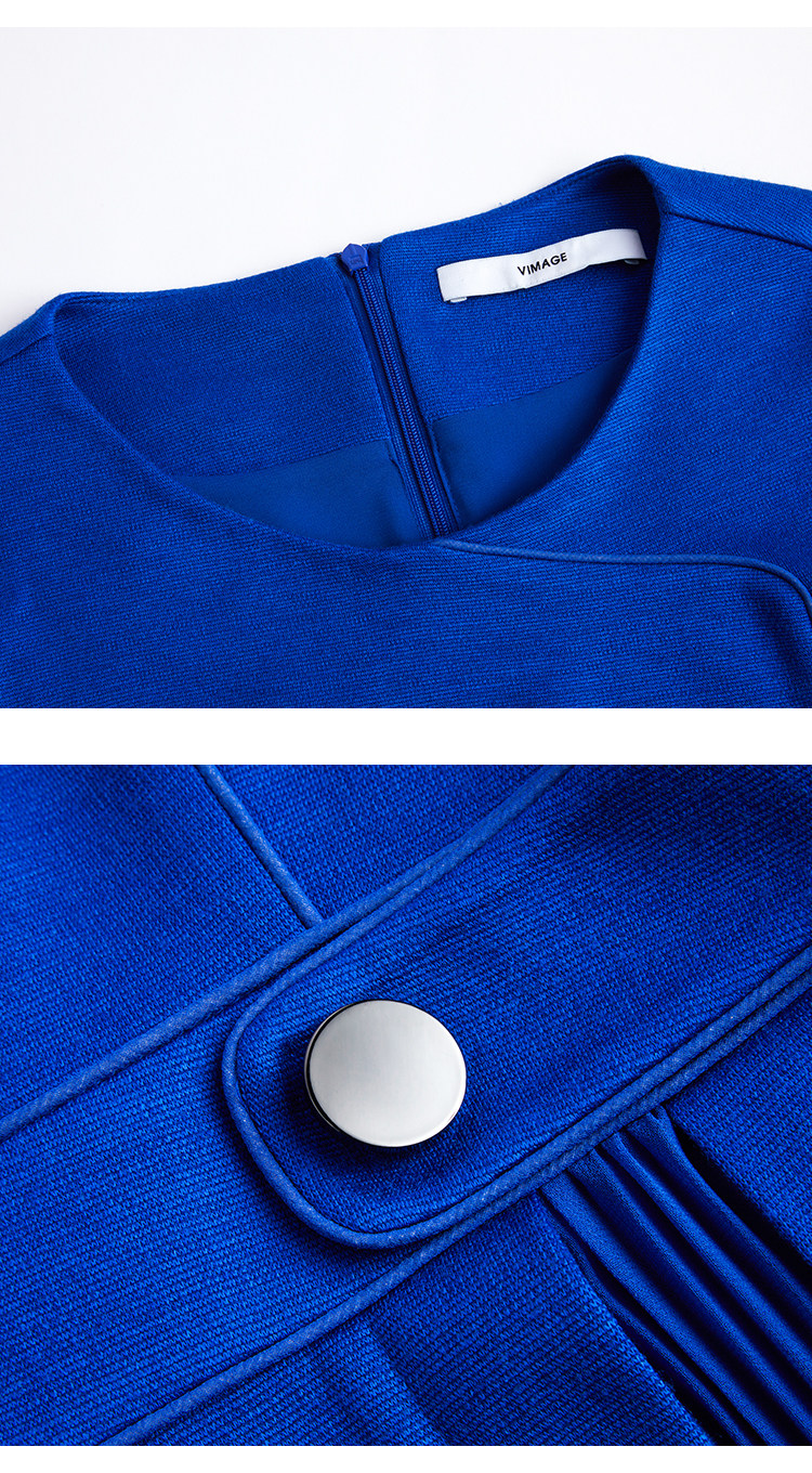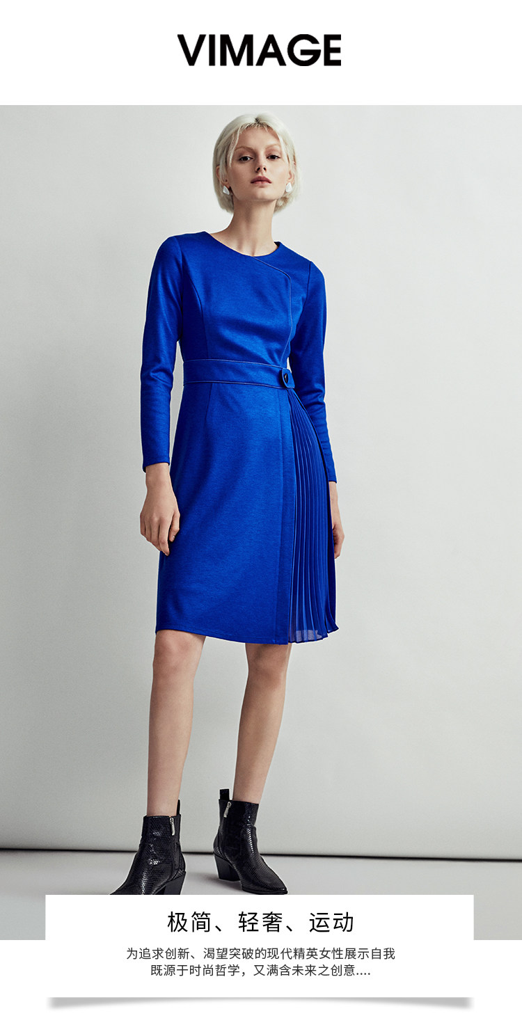 VIMAGE纬漫纪秋季新款高级纯色百搭显瘦气质收腰连衣裙女裙V1407014D