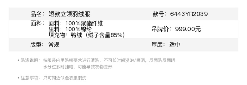 卡尔美旷野之幕系列女士冬季新款短款立领羽绒服