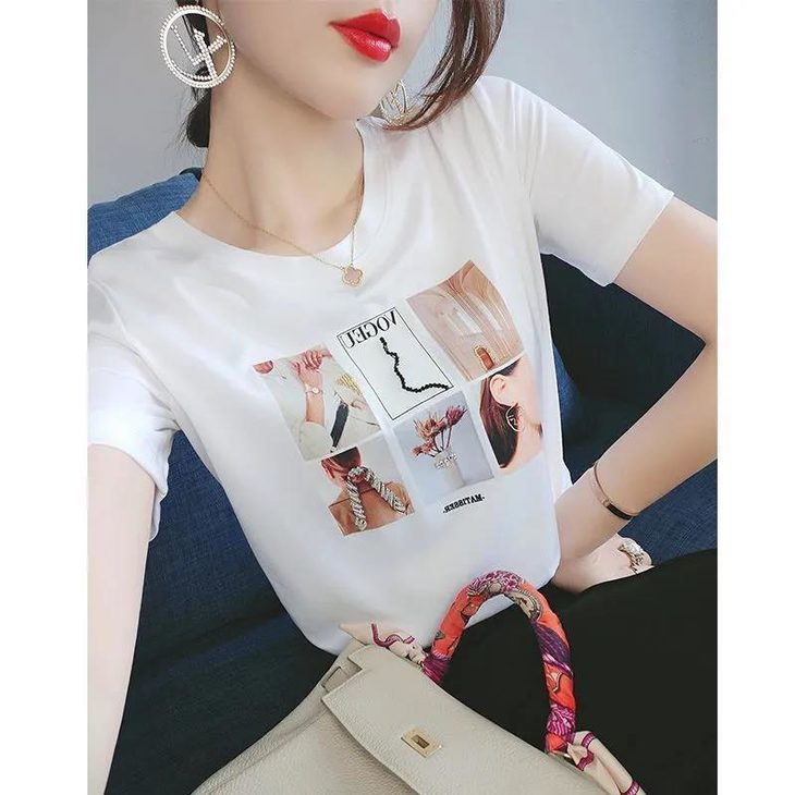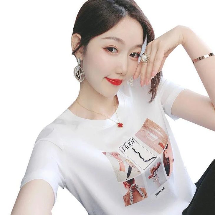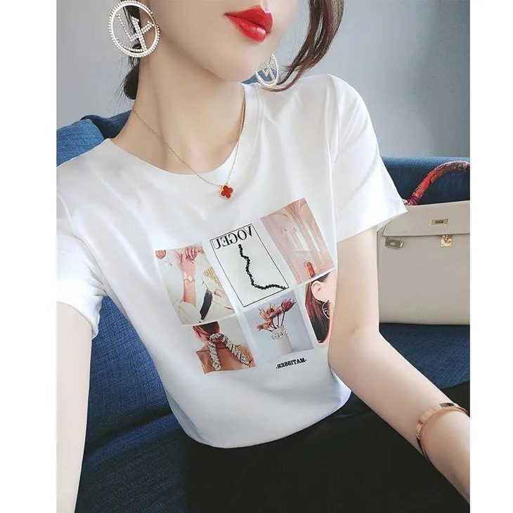 TZW 短袖t恤女印花圆领百搭气质半袖上衣