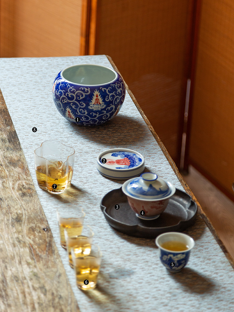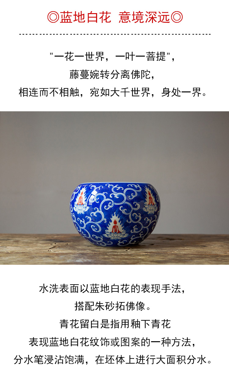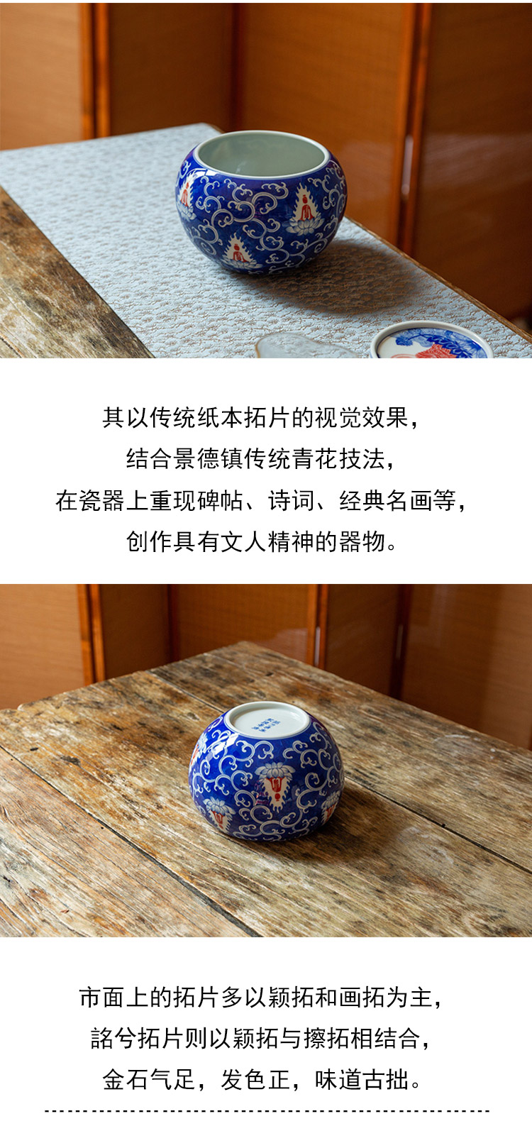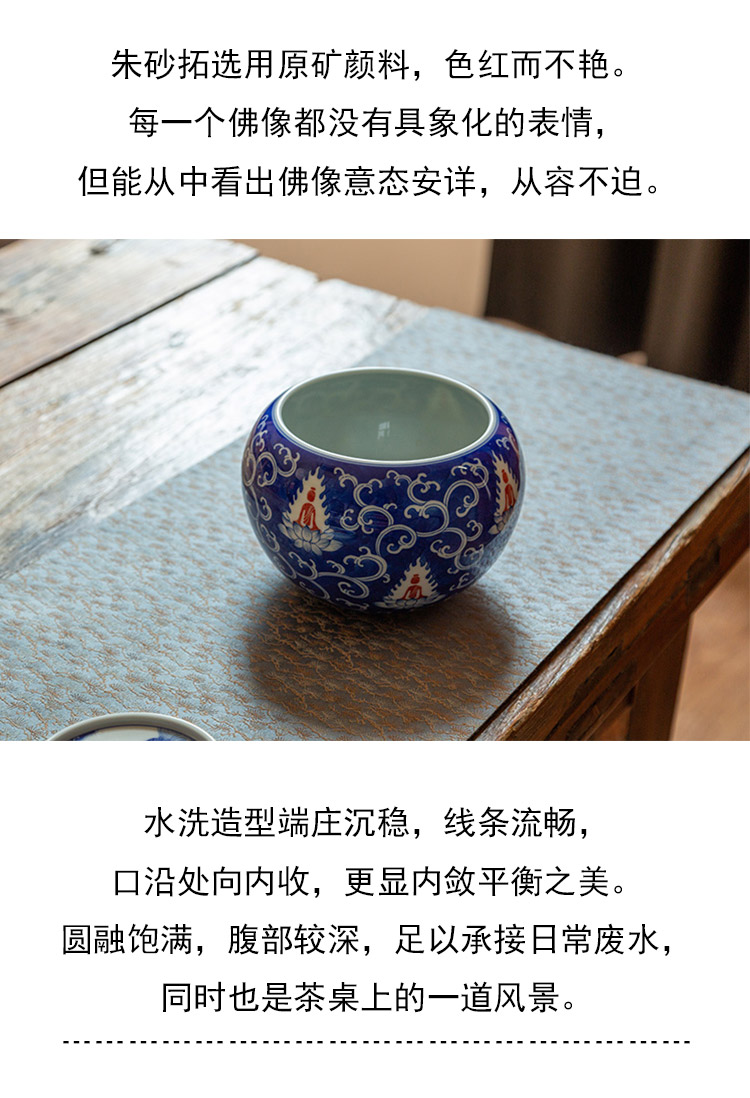 茶香记 詺兮清窑一花一世界大水洗建水1200ml青花拓片蓝地白花