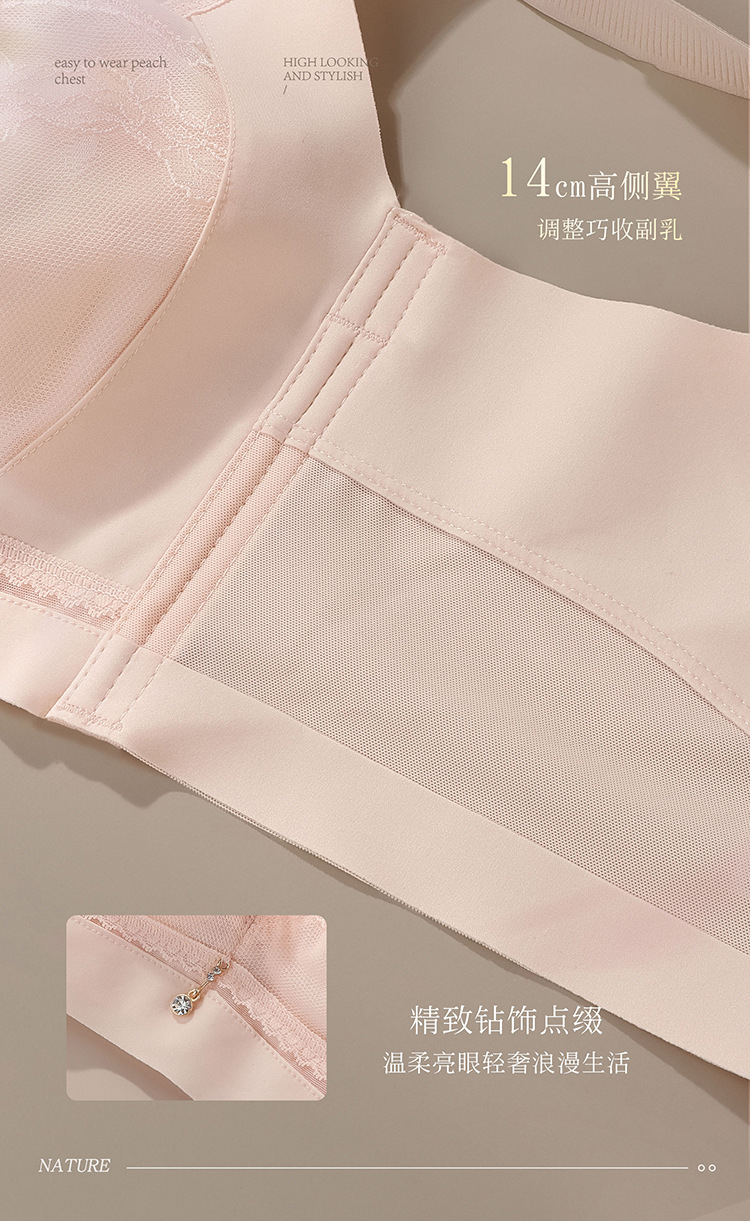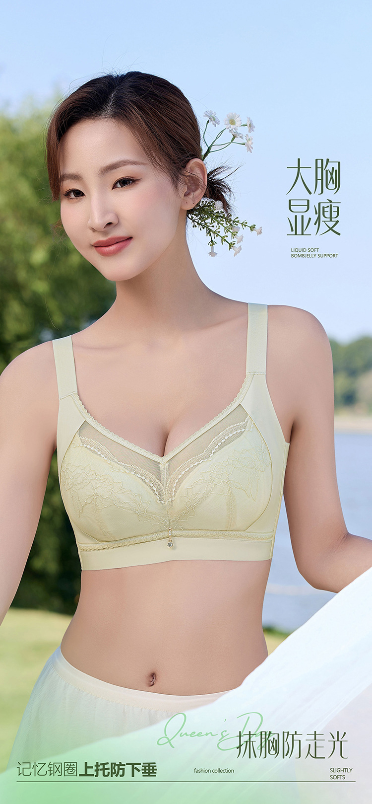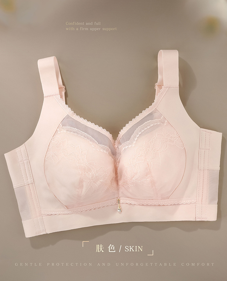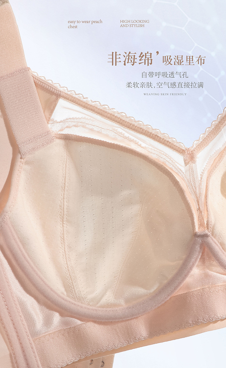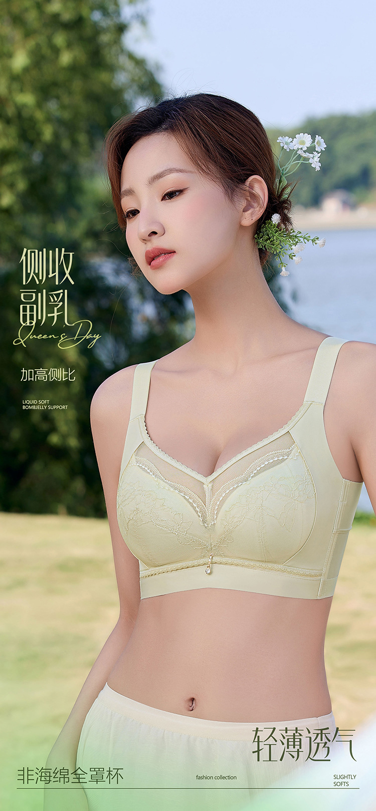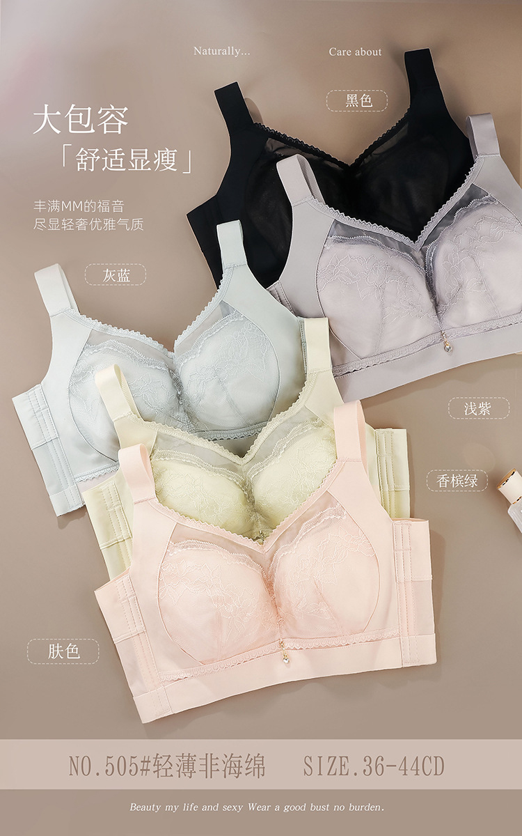 ZYQ-505 大码内衣调整薄款透气全罩杯软钢圈上托五排扣高侧收大胸显小文胸(单件)