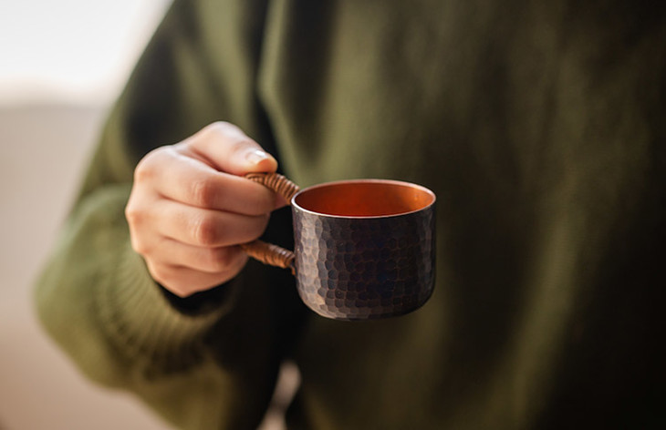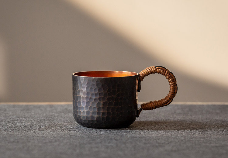 茶香记 手工锤纹带把小铜杯110ml主人杯咖啡杯水杯金属气质复古