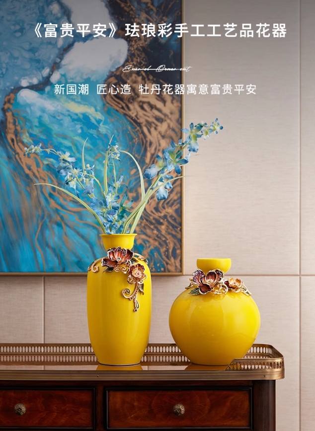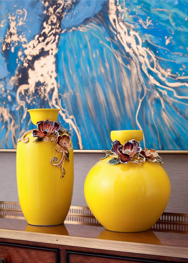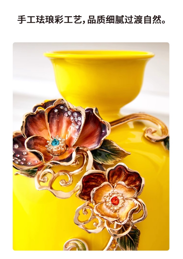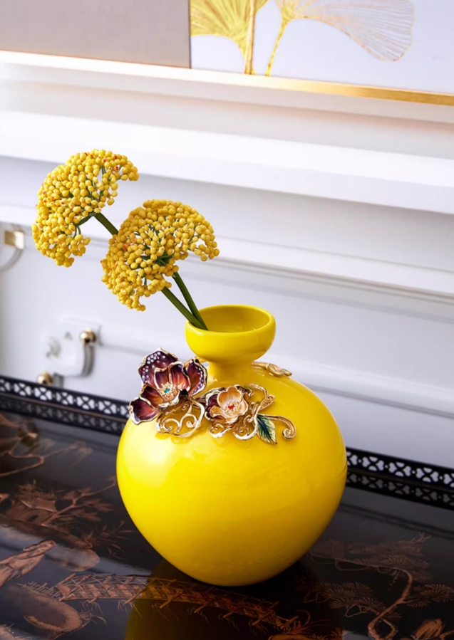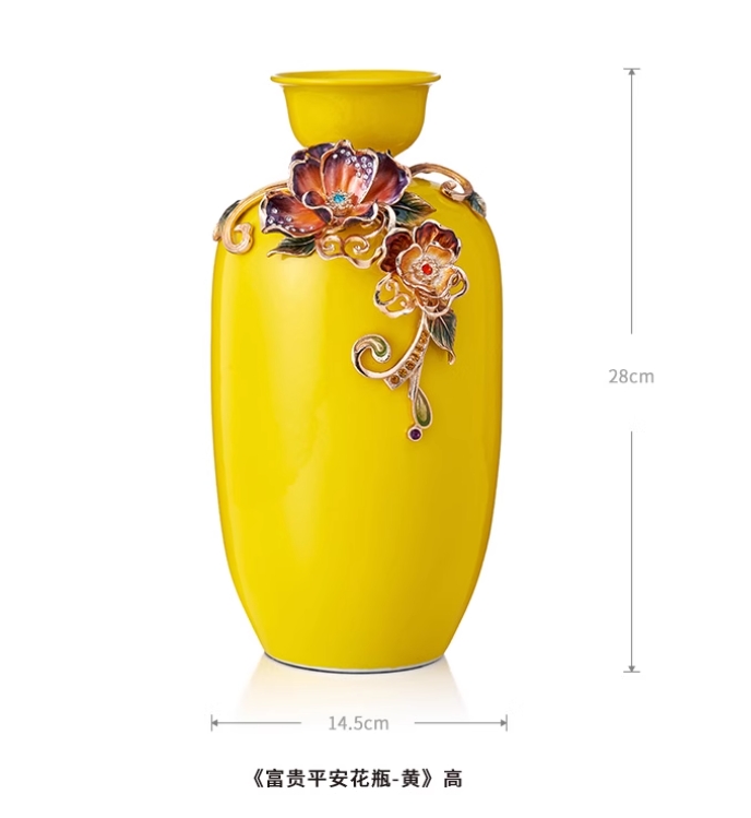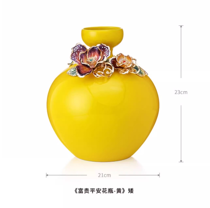 【彼达思】罗比罗丹富贵平安花瓶珐琅彩工艺黄色花瓶创意玄关摆件《富贵平安》家居饰品