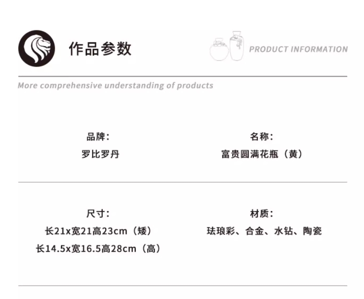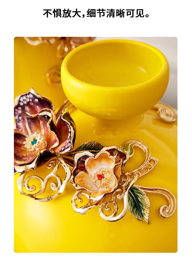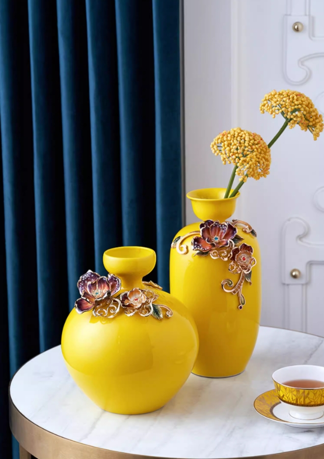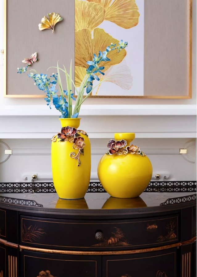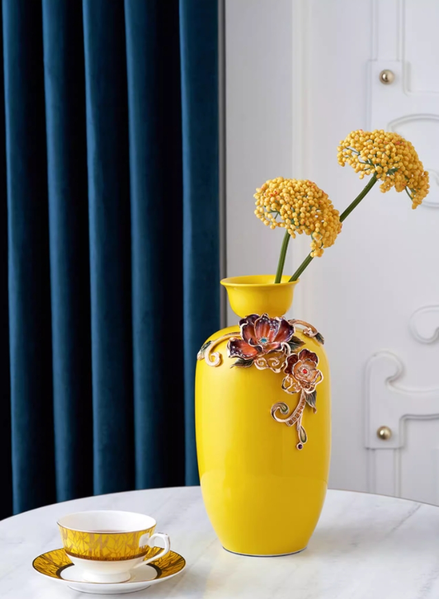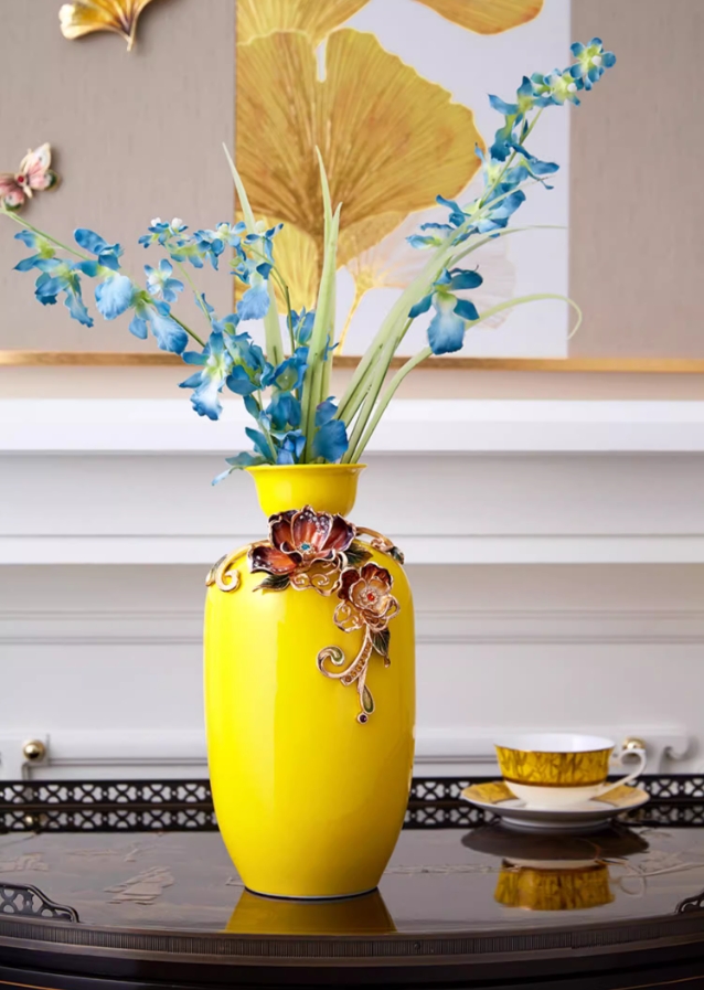 【彼达思】罗比罗丹富贵平安花瓶珐琅彩工艺黄色花瓶创意玄关摆件《富贵平安》家居饰品