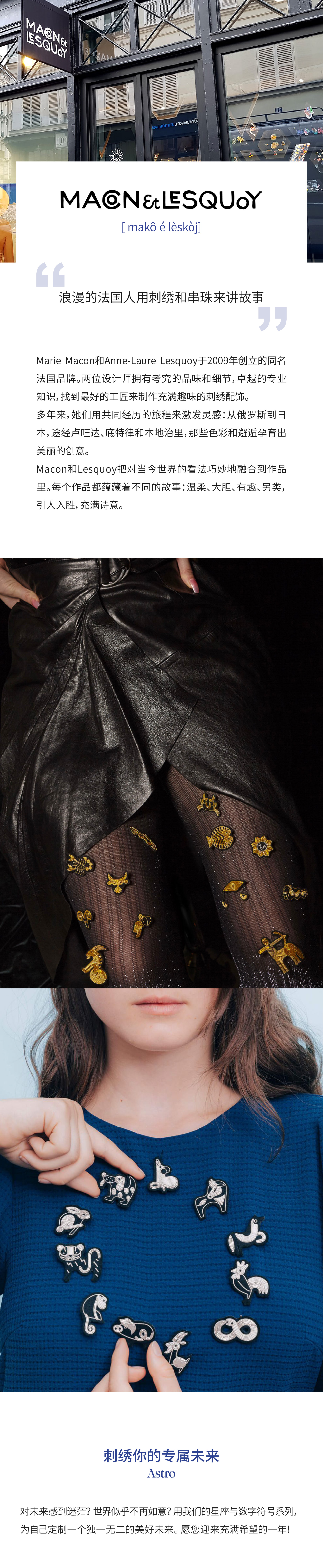 Macon&Lesquoy法国原创设计 金牛座 十二星座系列 24ss M&L刺绣手工饰品胸针