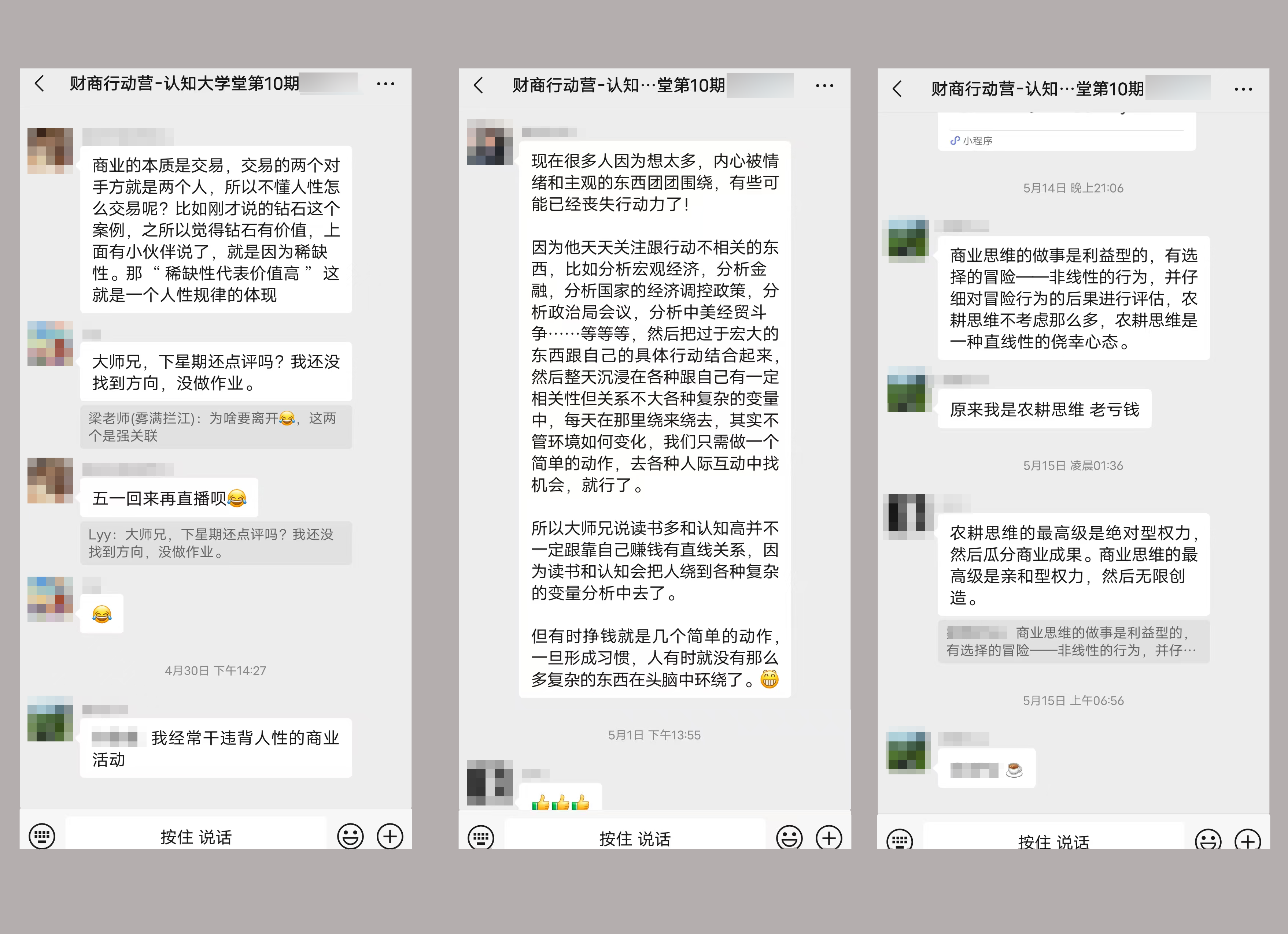 我们认知大学堂是以 “微信群+小打卡App” 的方式呈现。