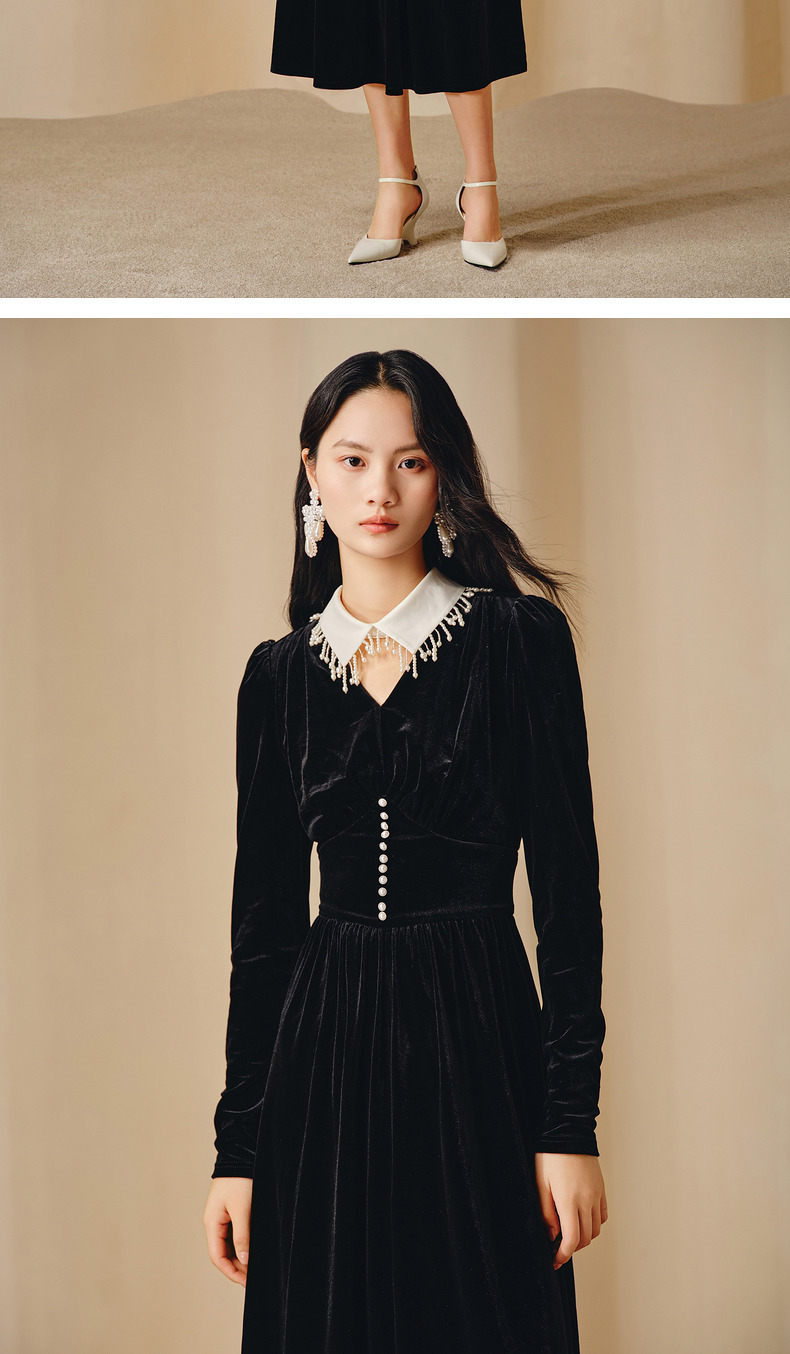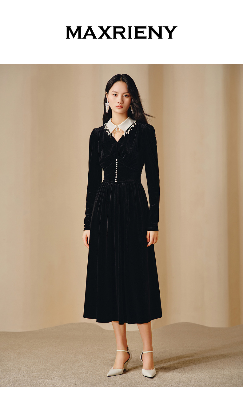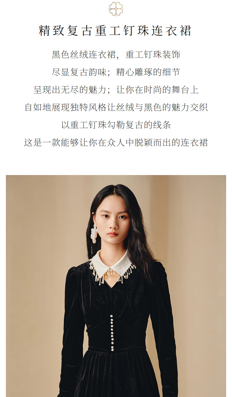 玛克门店发货:MAXRIENY复古重工钉珠连衣裙(货号:MC88DR815)