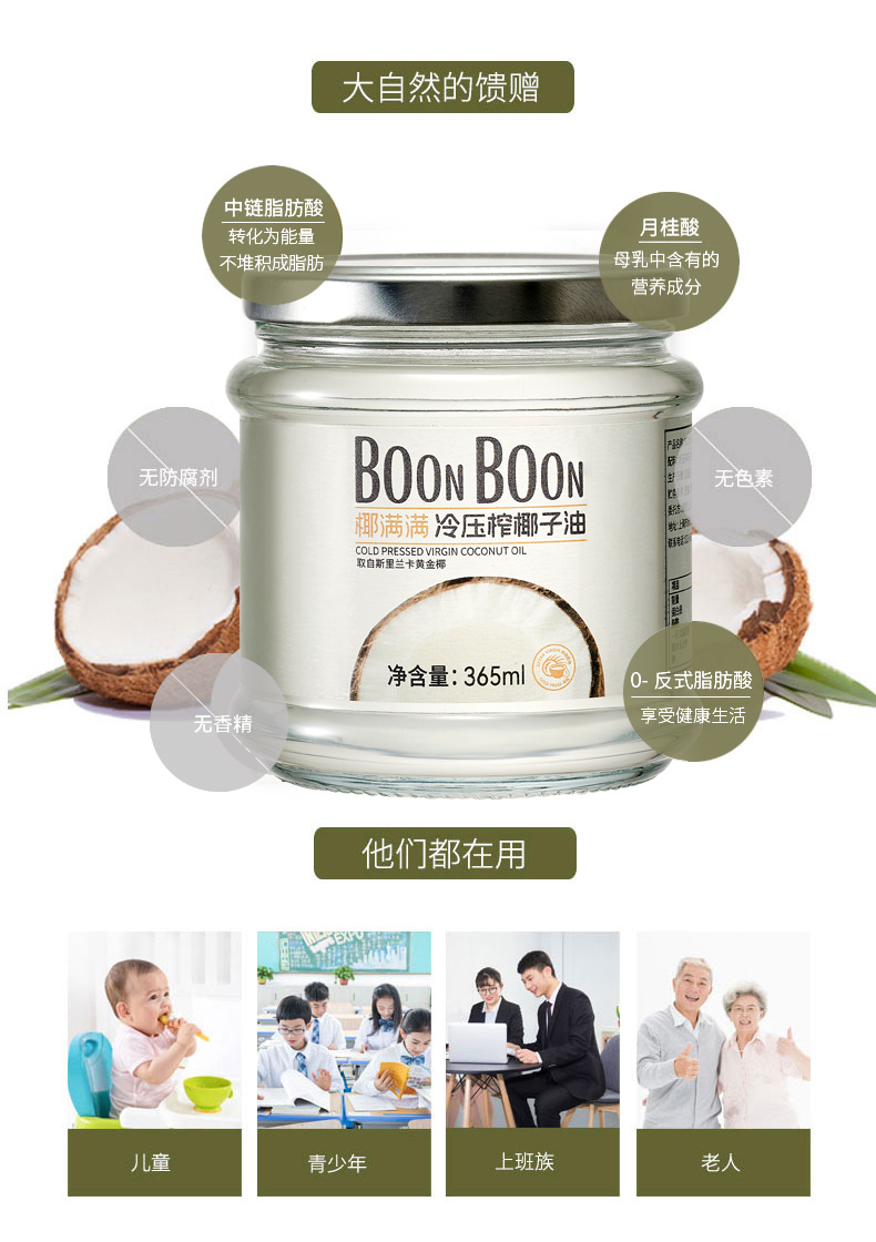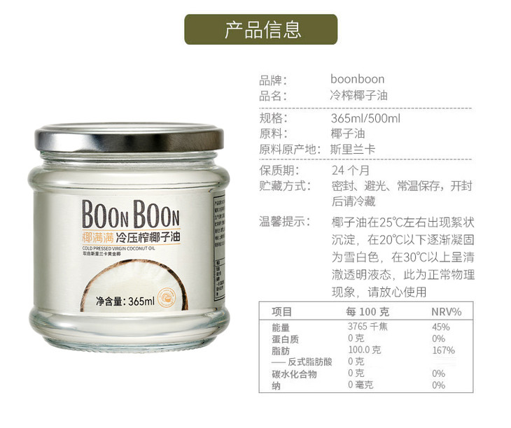 椰子油 | BOONBOON 椰满满斯里兰卡黄金椰冷压初榨 椰子油