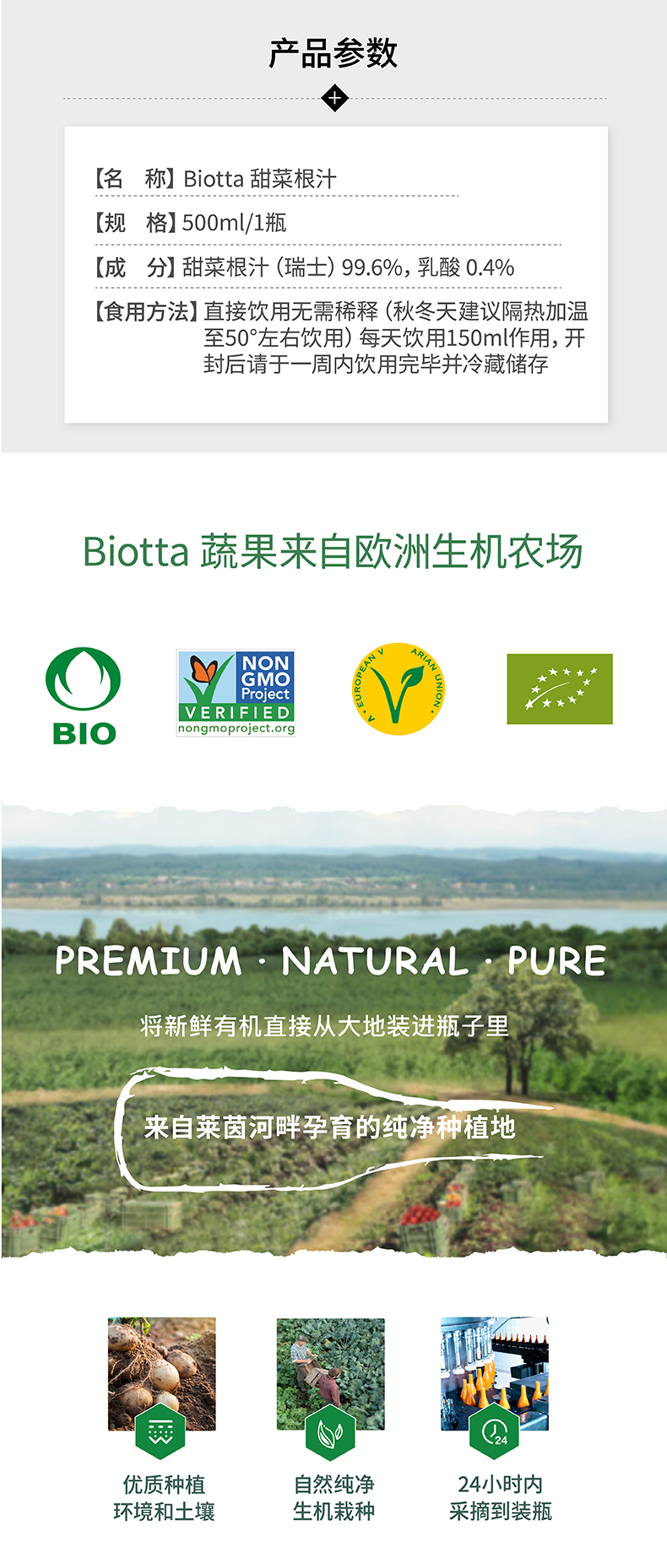 Biotta甜菜根汁进口无添加轻断食代餐饮品非浓缩铁叶酸碱纯蔬果汁