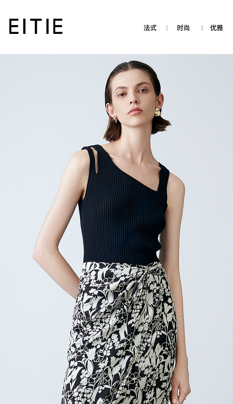 EITIE爱特爱夏季新款百搭时尚减龄修身无袖针织衫7701409