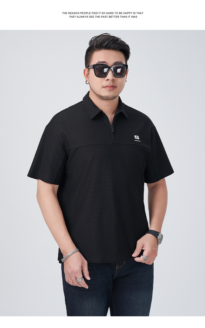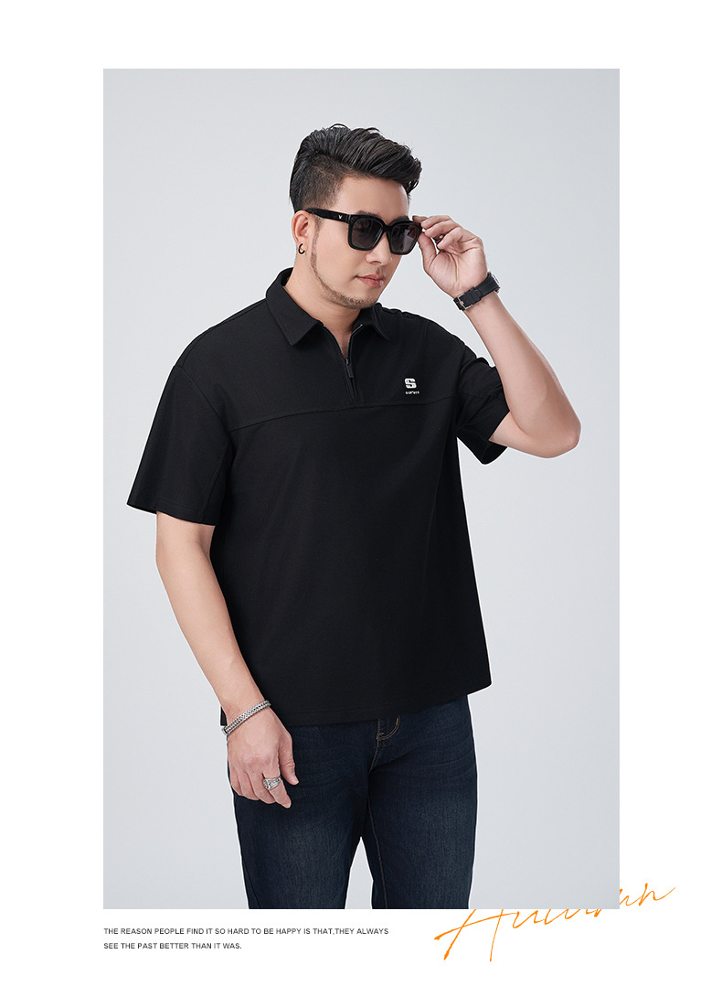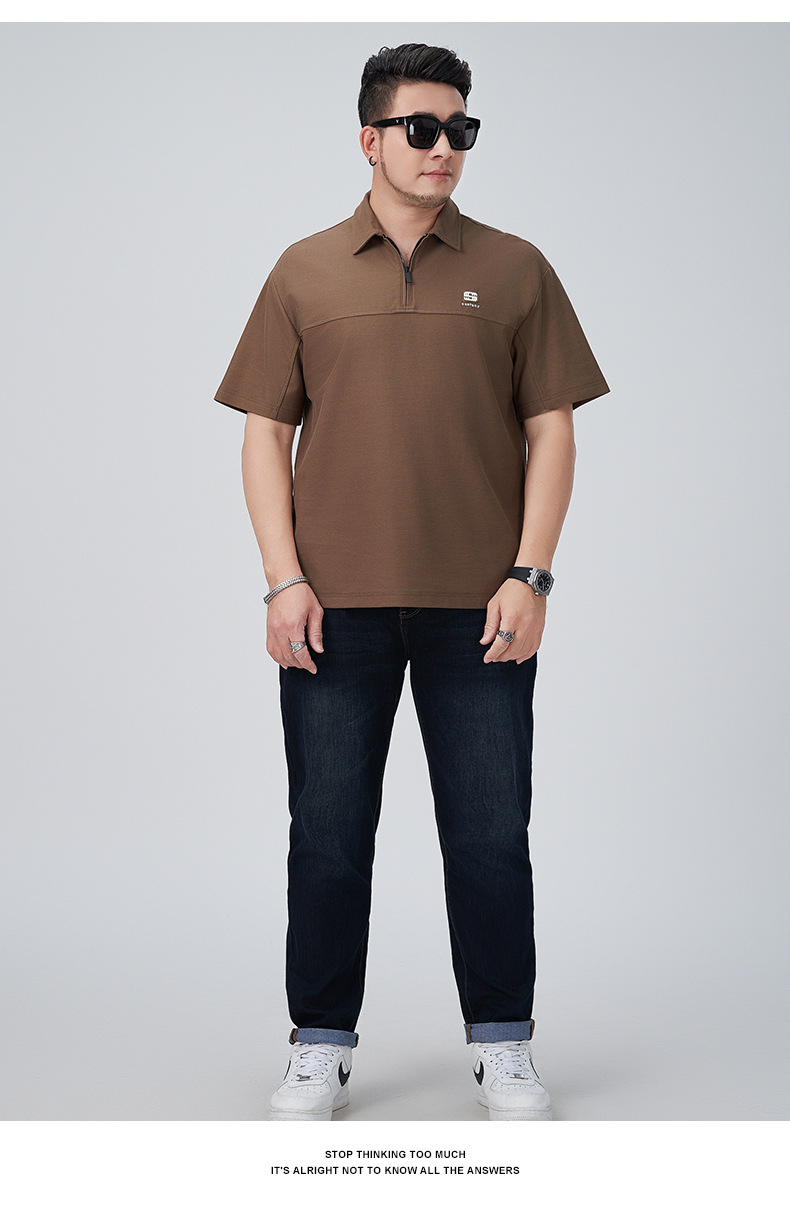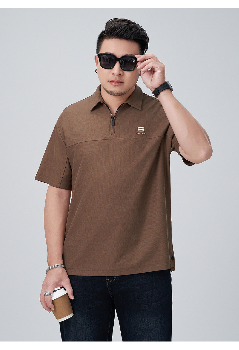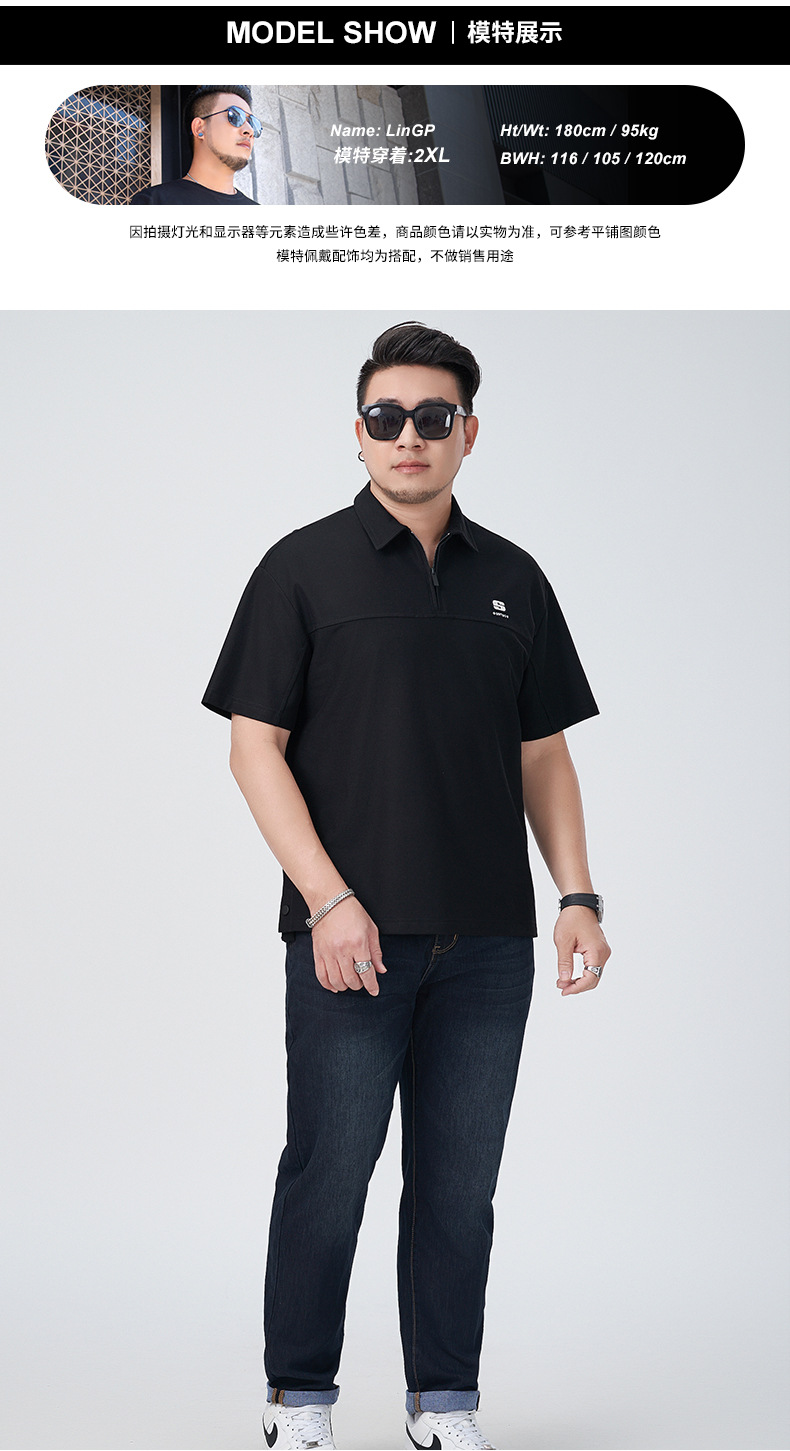 【DMH】大依优型大码拉链短袖POLO衫大码男装夏季简约百搭休闲翻领半袖透气上衣男士