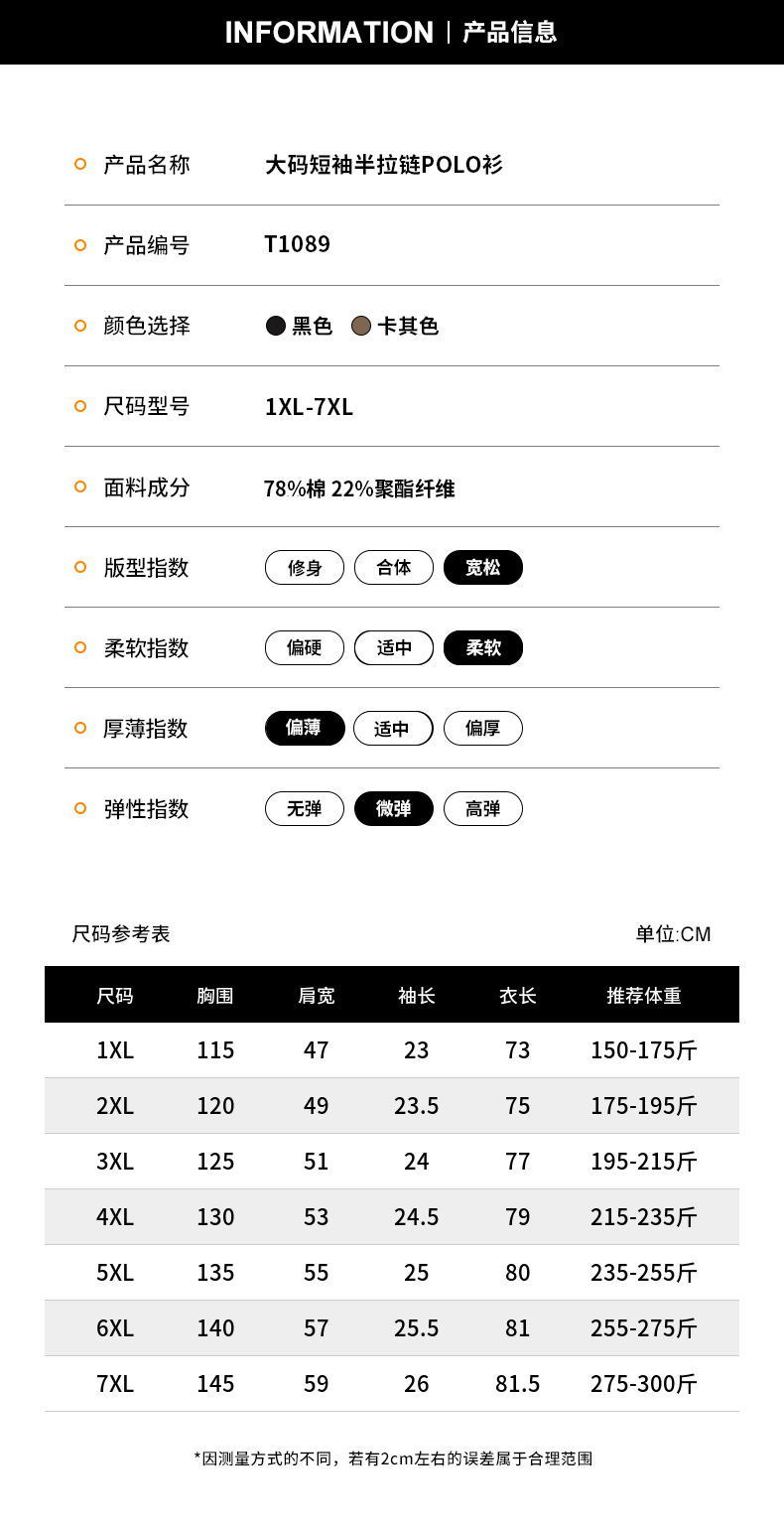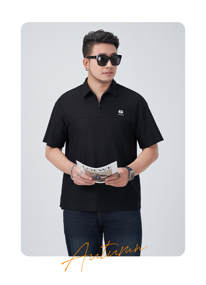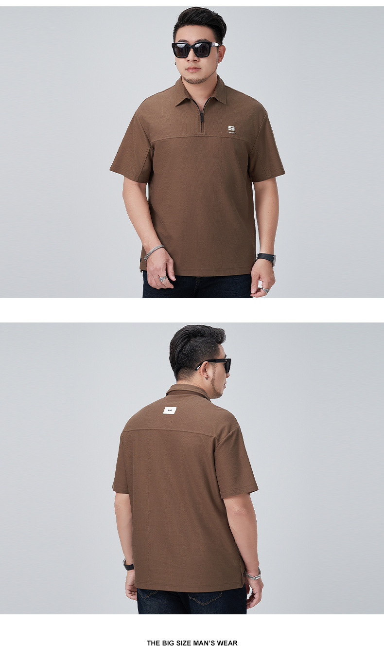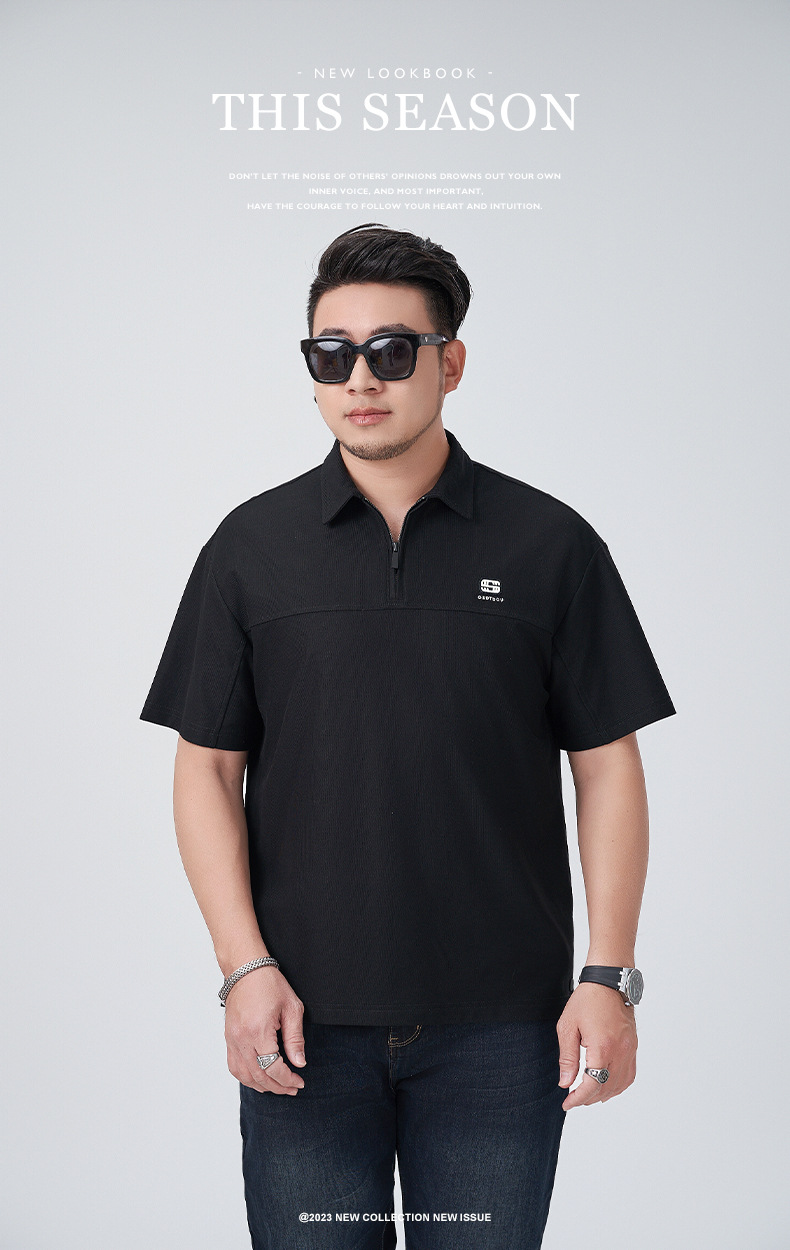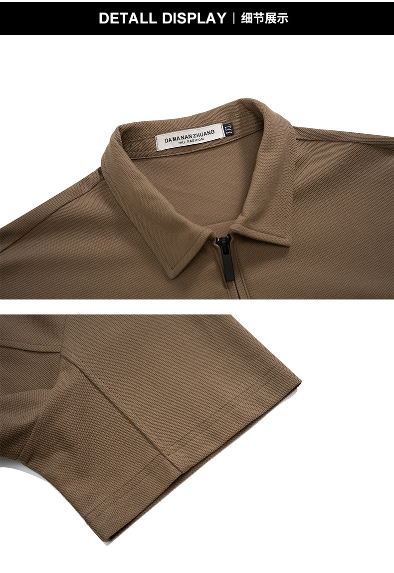 【DMH】大依优型大码拉链短袖POLO衫大码男装夏季简约百搭休闲翻领半袖透气上衣男士