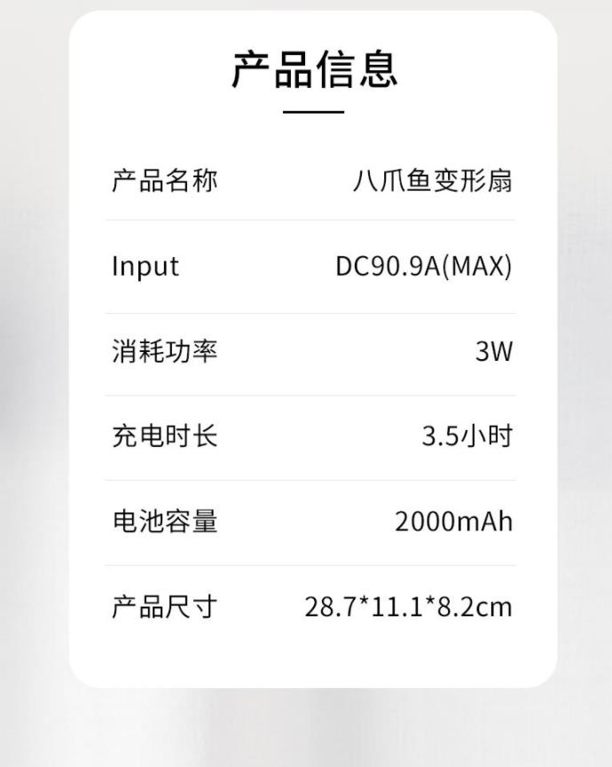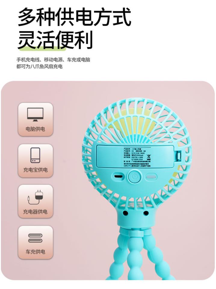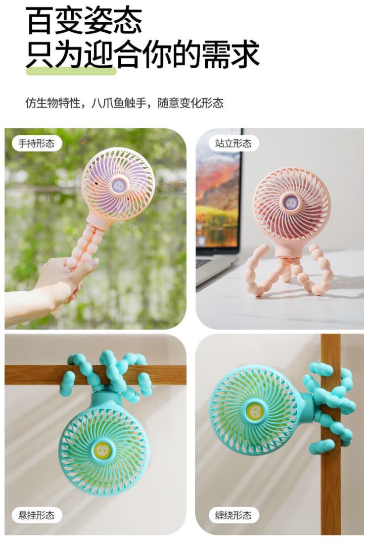 【家用电器】*八爪鱼变形卡通折叠usb充电迷你风扇