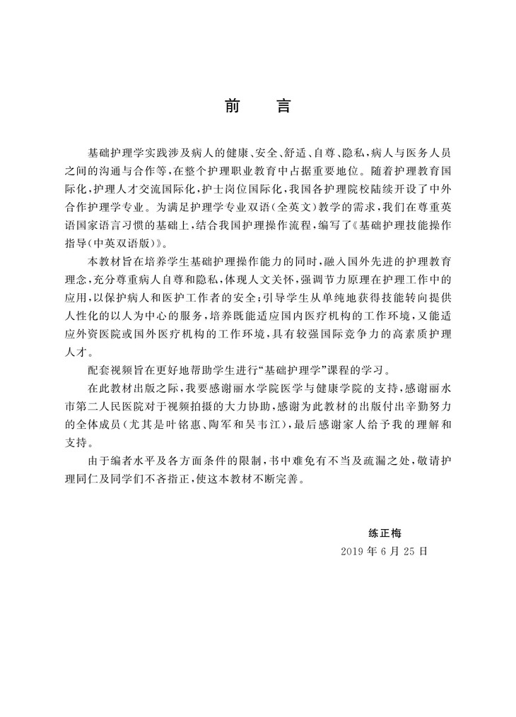 基础护理技能操作指导(中英双语版高等院校数字化融媒体特色教材)/练正梅/浙江大学出版社