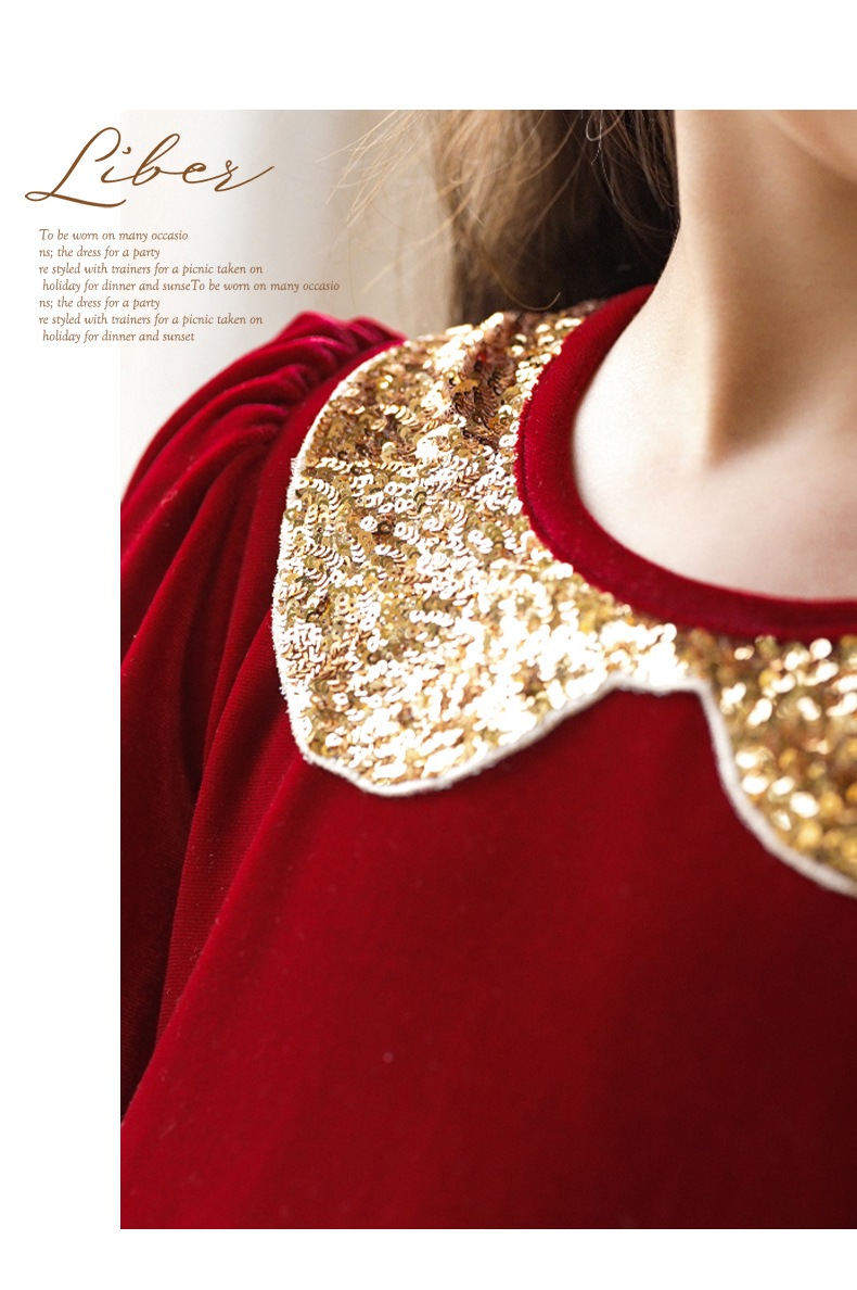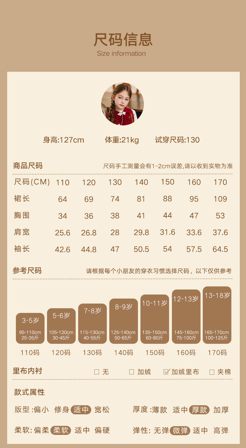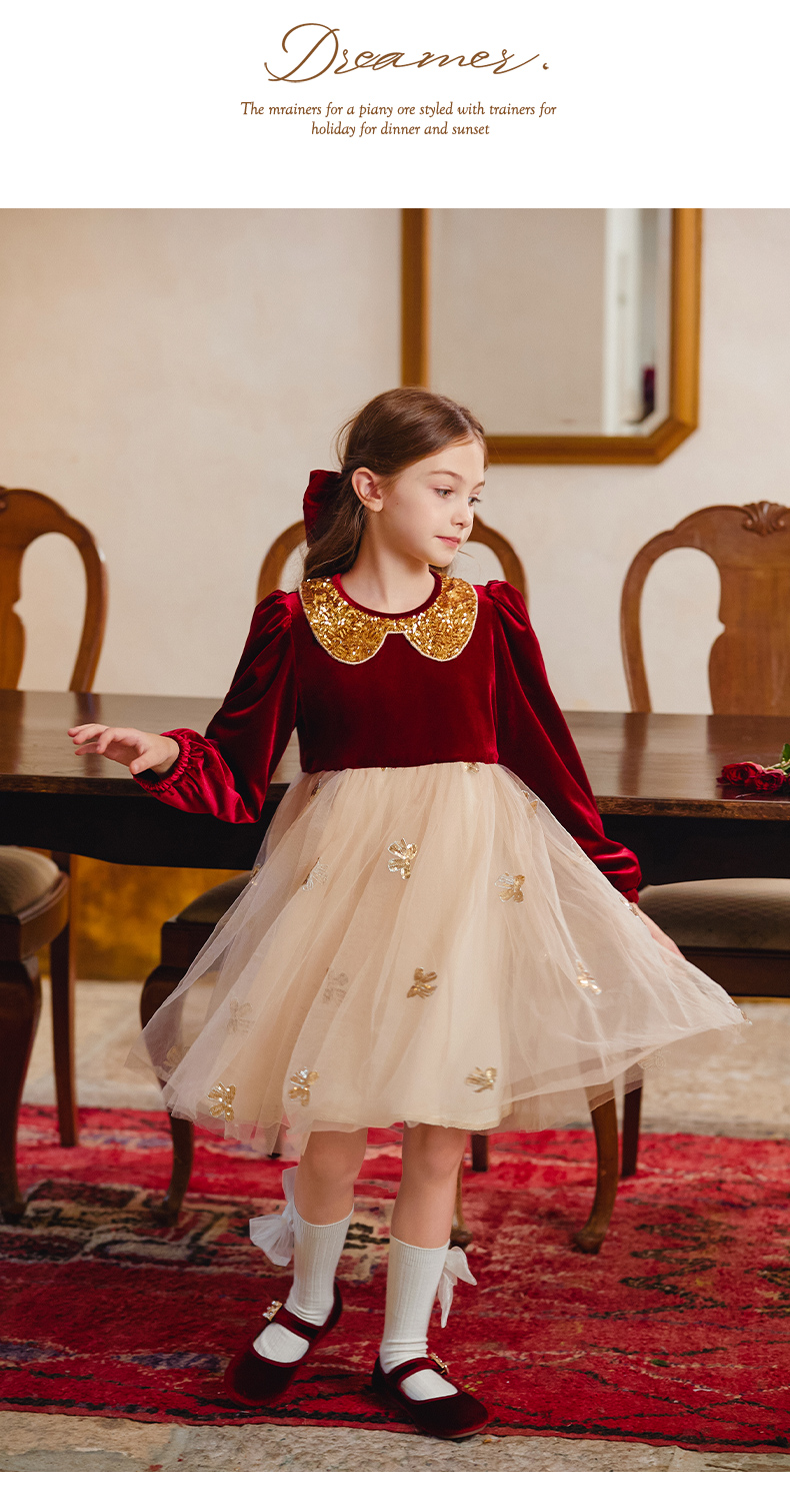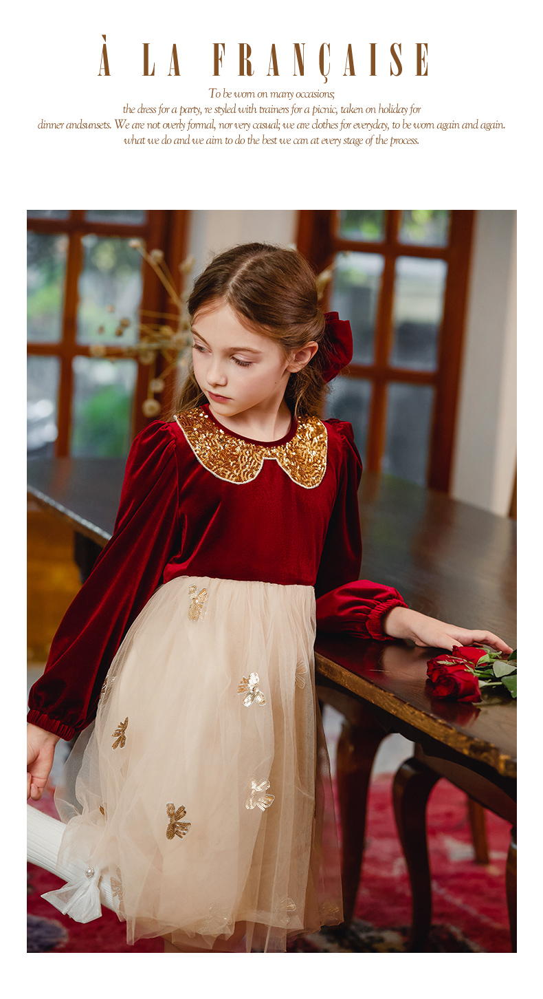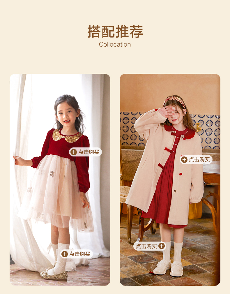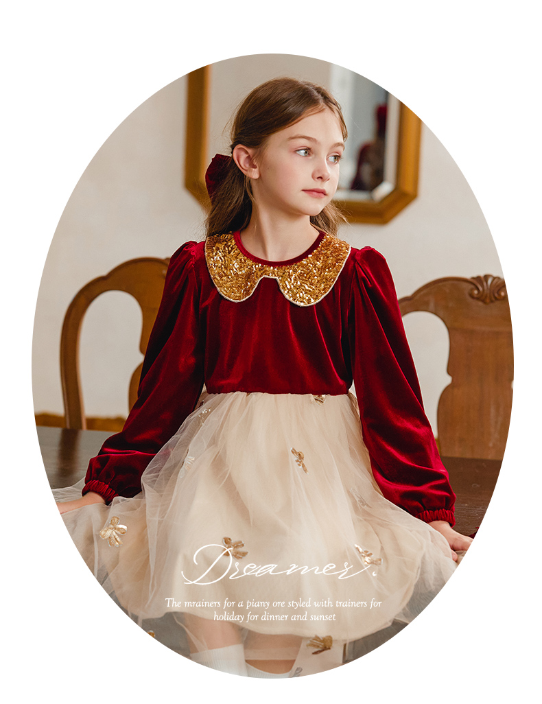 LittleNaive秋冬女童圣诞礼服红色新年网纱公主裙儿童加绒连衣裙