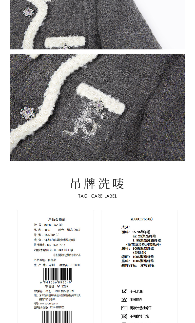 玛克门店发货:MAXRIENY钉珠大衣(货号:MC88CT765)