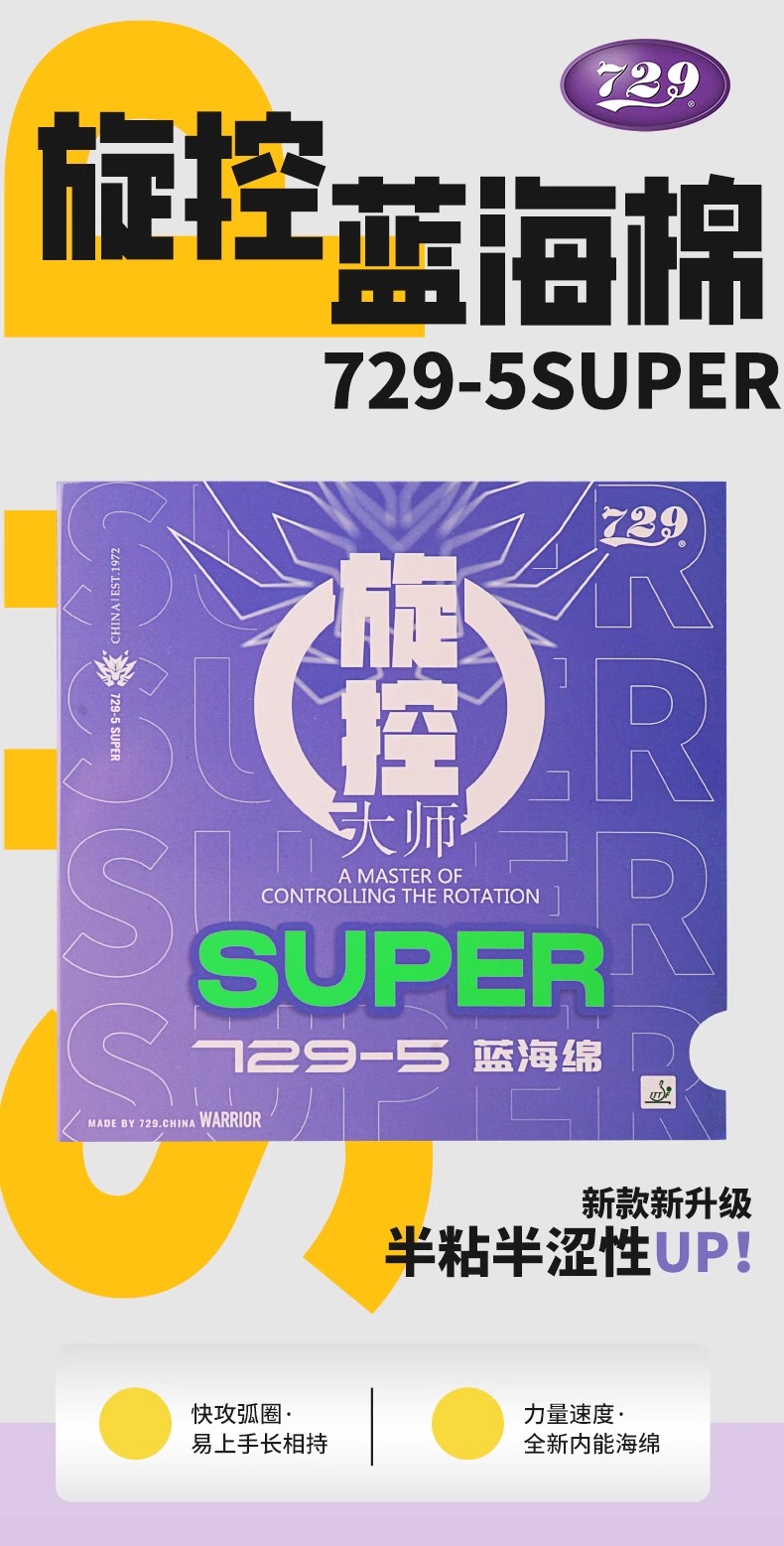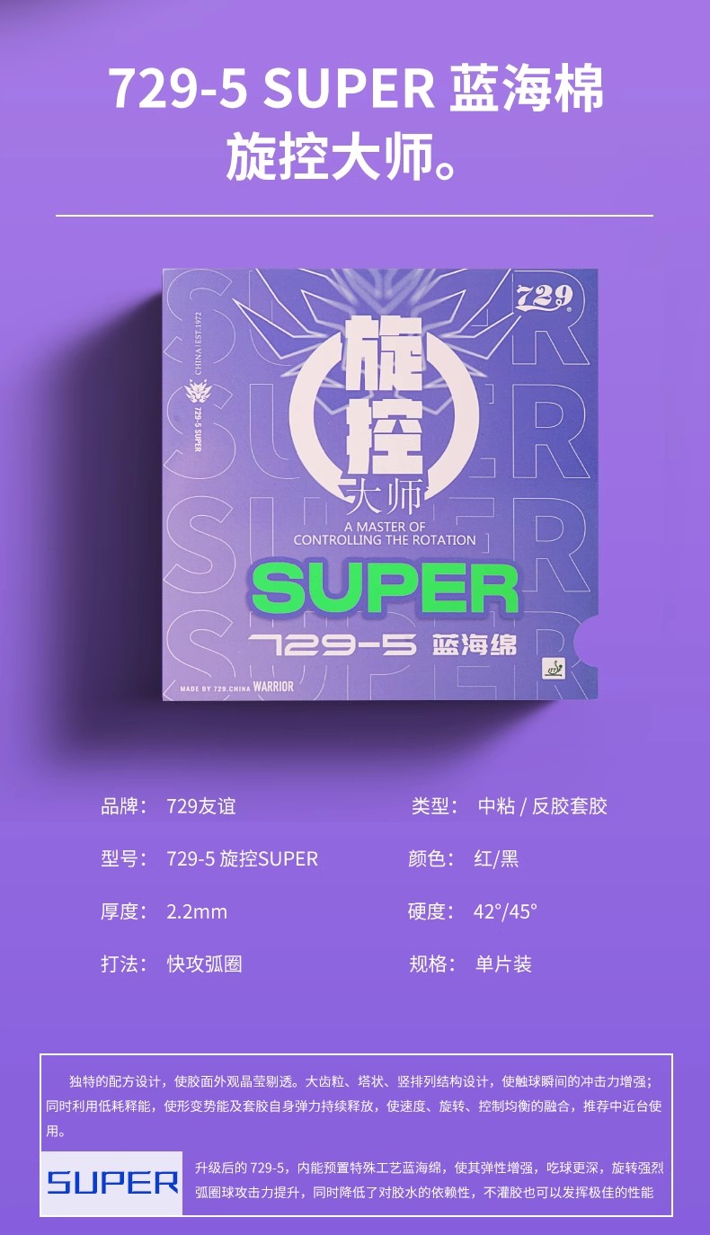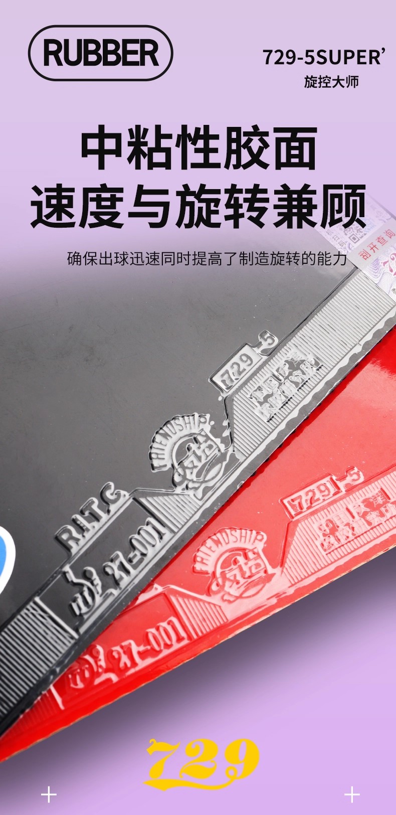 友谊729升级版蓝海绵旋控型729-5super乒乓球拍胶皮反胶快攻胶皮