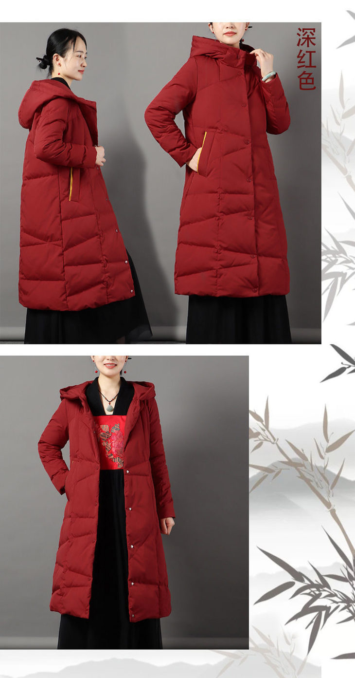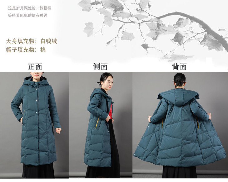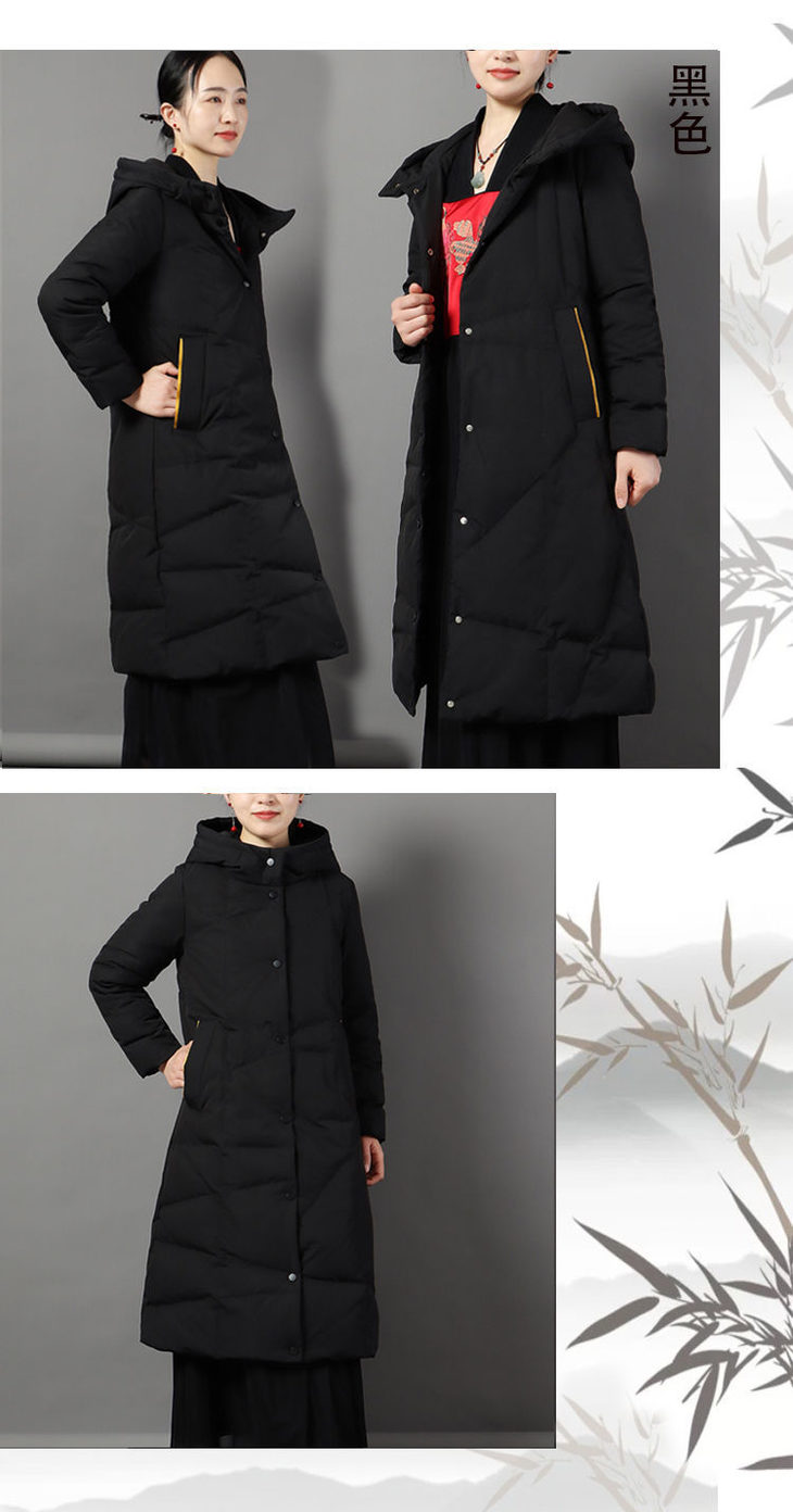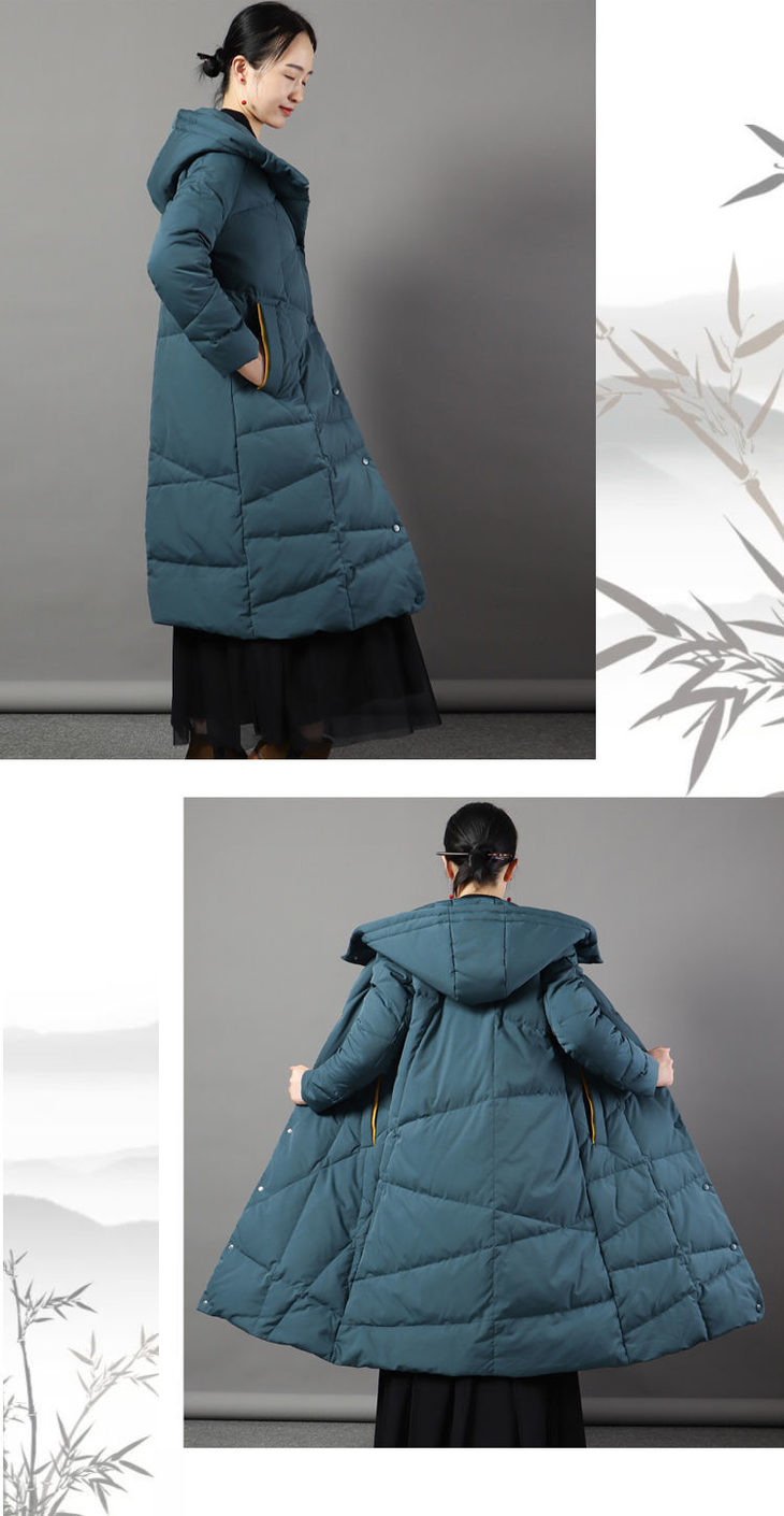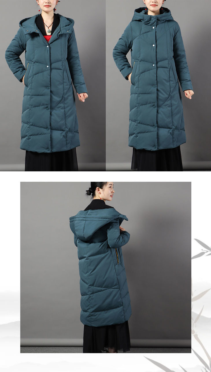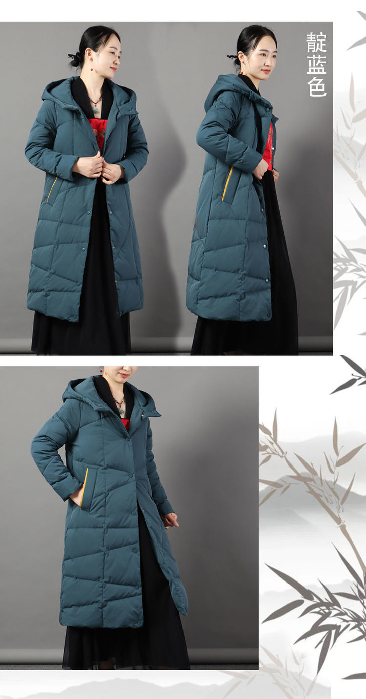 JXG-冬季新款长款羽绒服女白鸭绒文艺休闲宽松大码加厚保暖过膝加长款