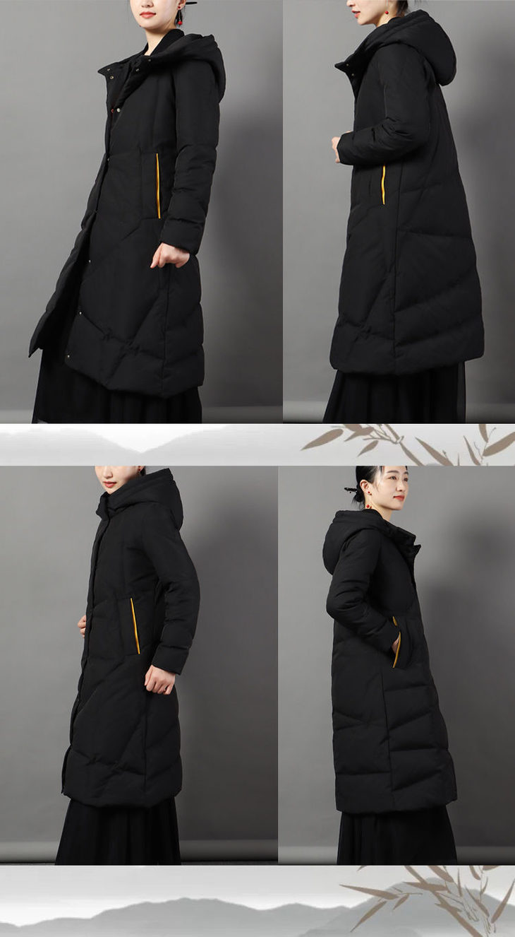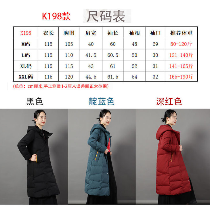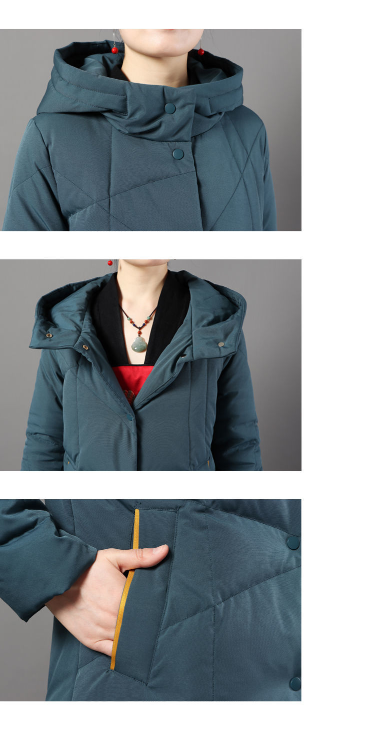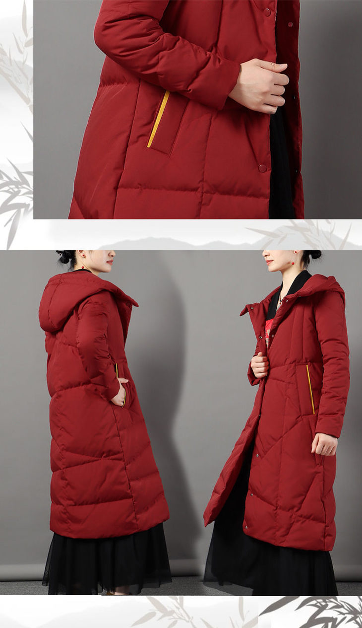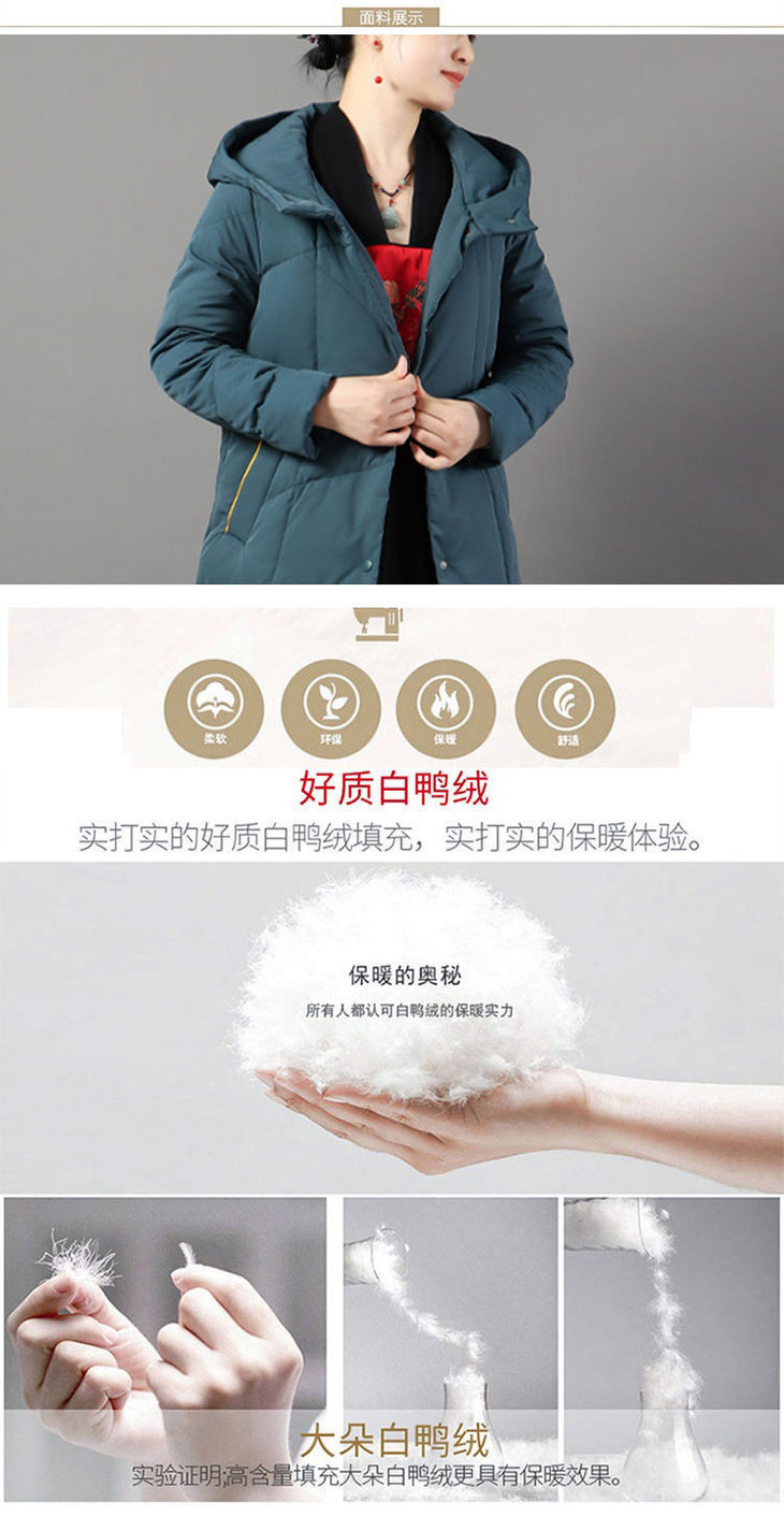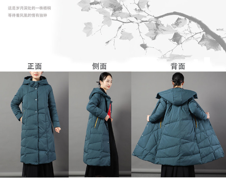 JXG-冬季新款长款羽绒服女白鸭绒文艺休闲宽松大码加厚保暖过膝加长款