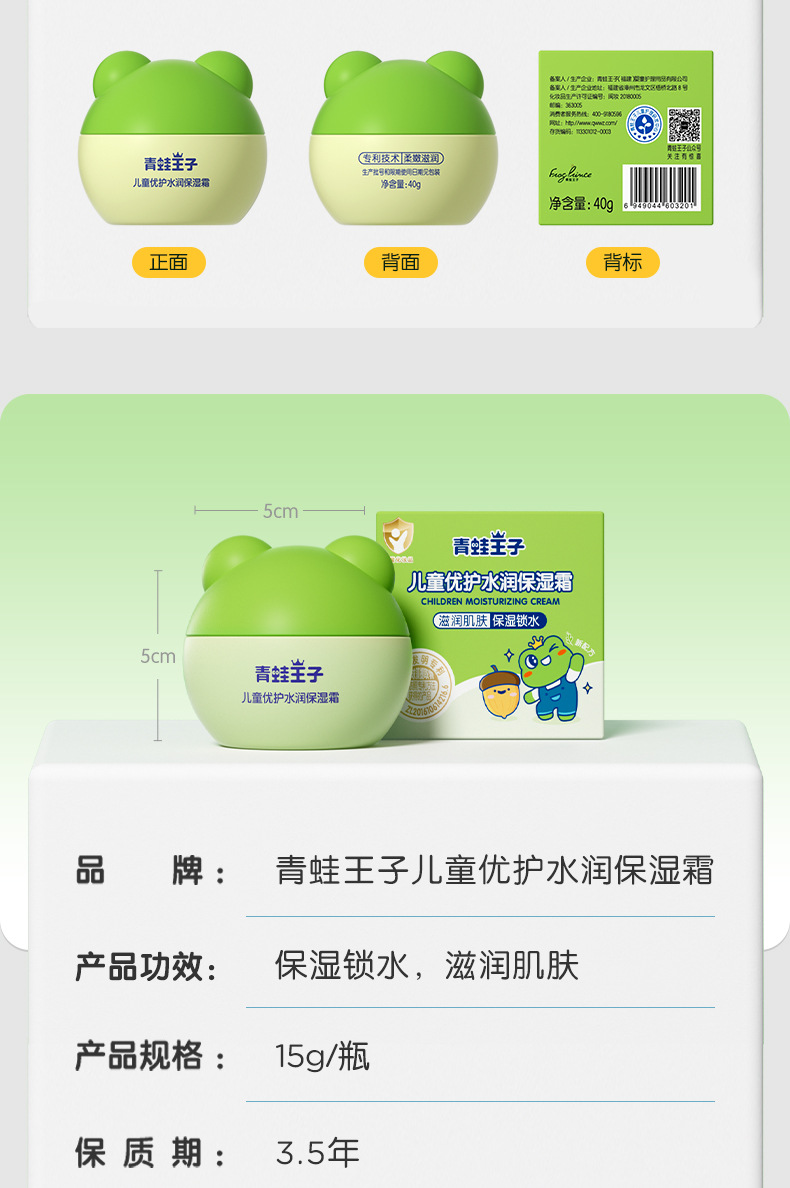 【国民老品牌!新生儿可用 | 无香精酒精】青蛙王子儿童面霜 15g40g 婴儿优护水润保湿霜倍润宝宝舒润润肤霜。hb