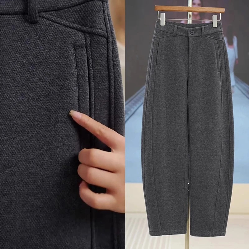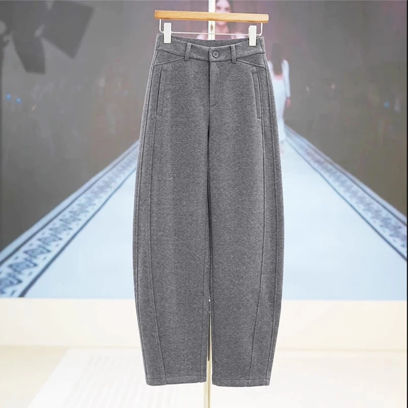 xk1151深灰色羊毛呢香蕉裤女秋冬季加厚新款休闲裤子同款阔腿弯刀裤