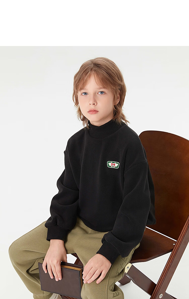 【MQD】童装男大童冬新款基础百搭运动休闲半高领加绒卫衣