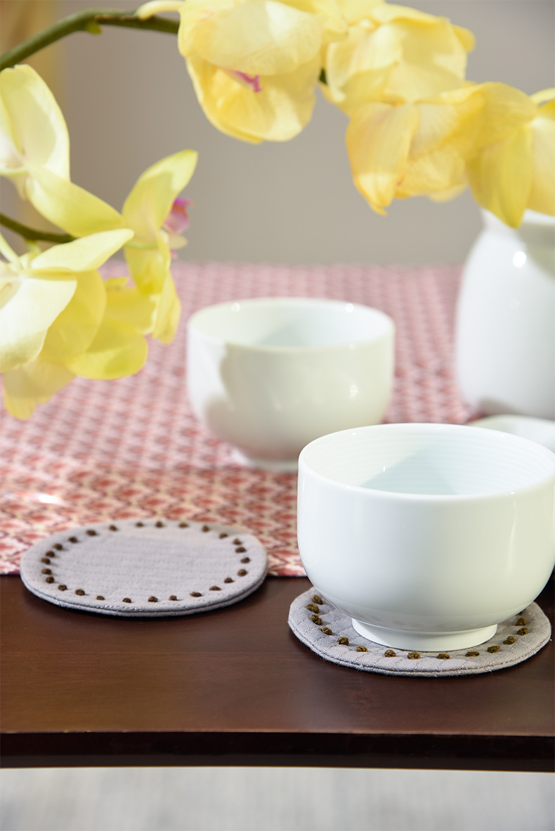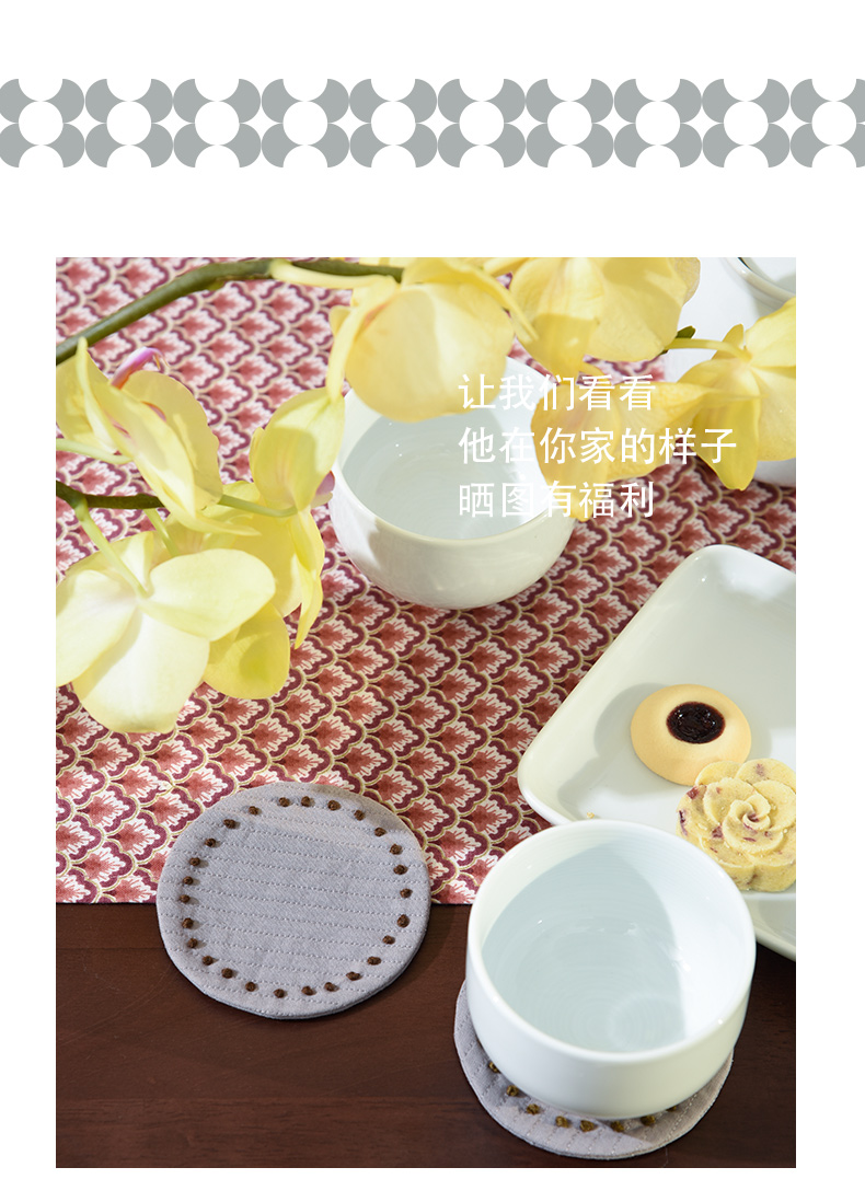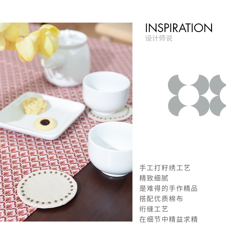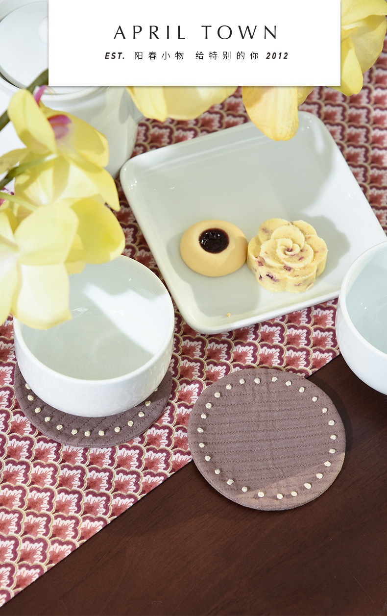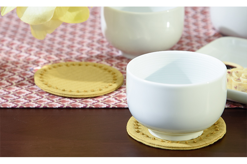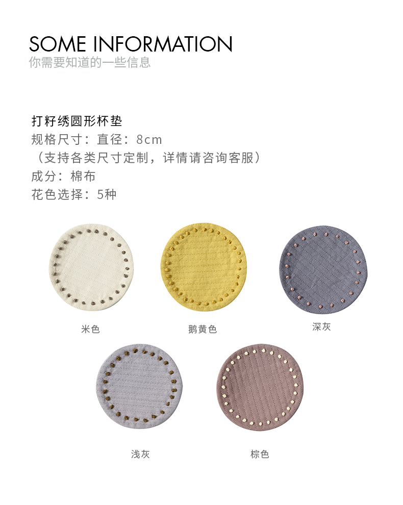 打籽绣圆形杯垫纯色布艺咖啡圆杯垫日式简约