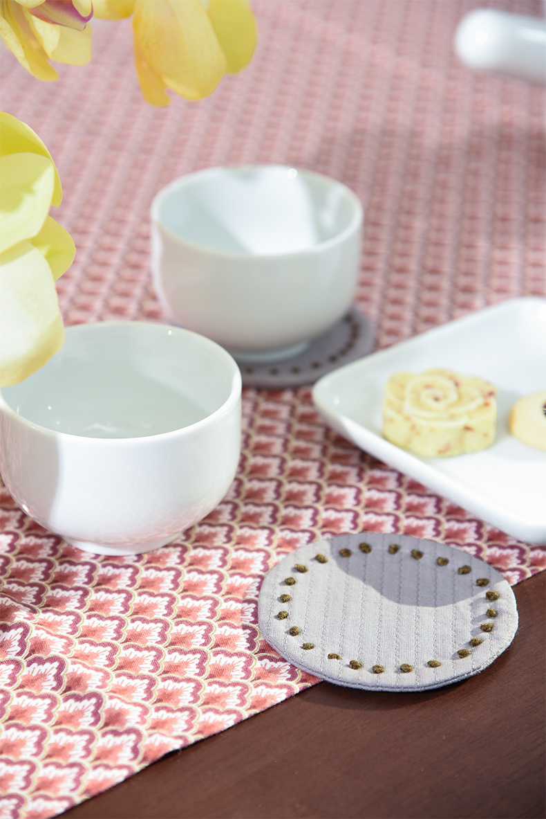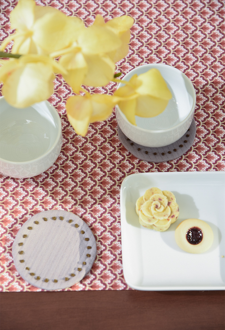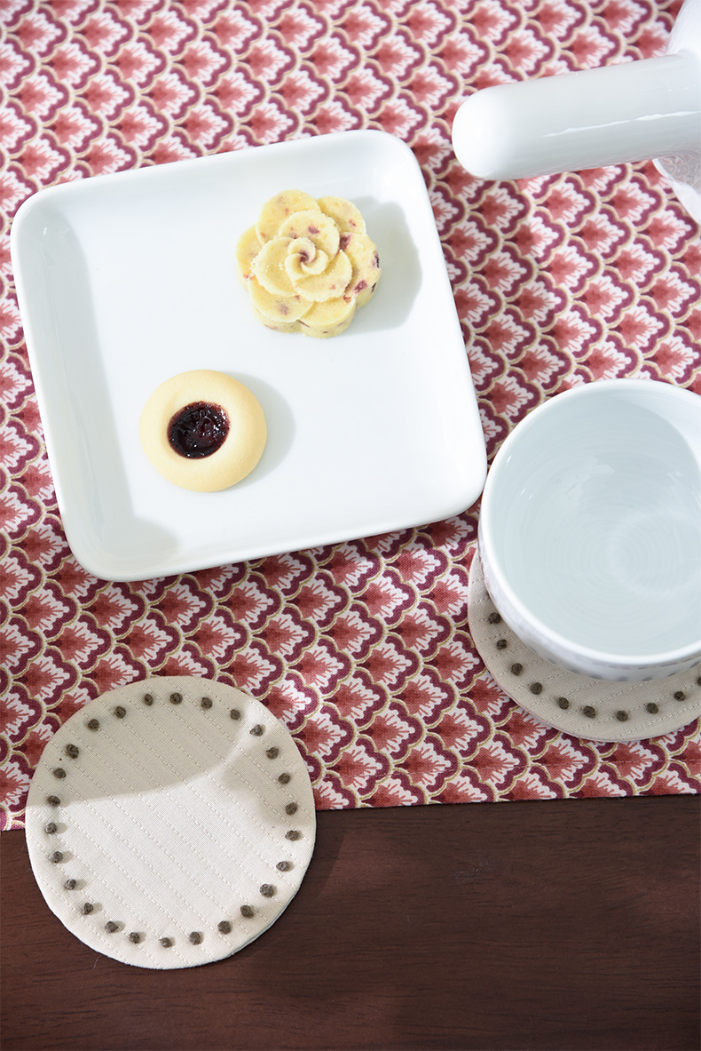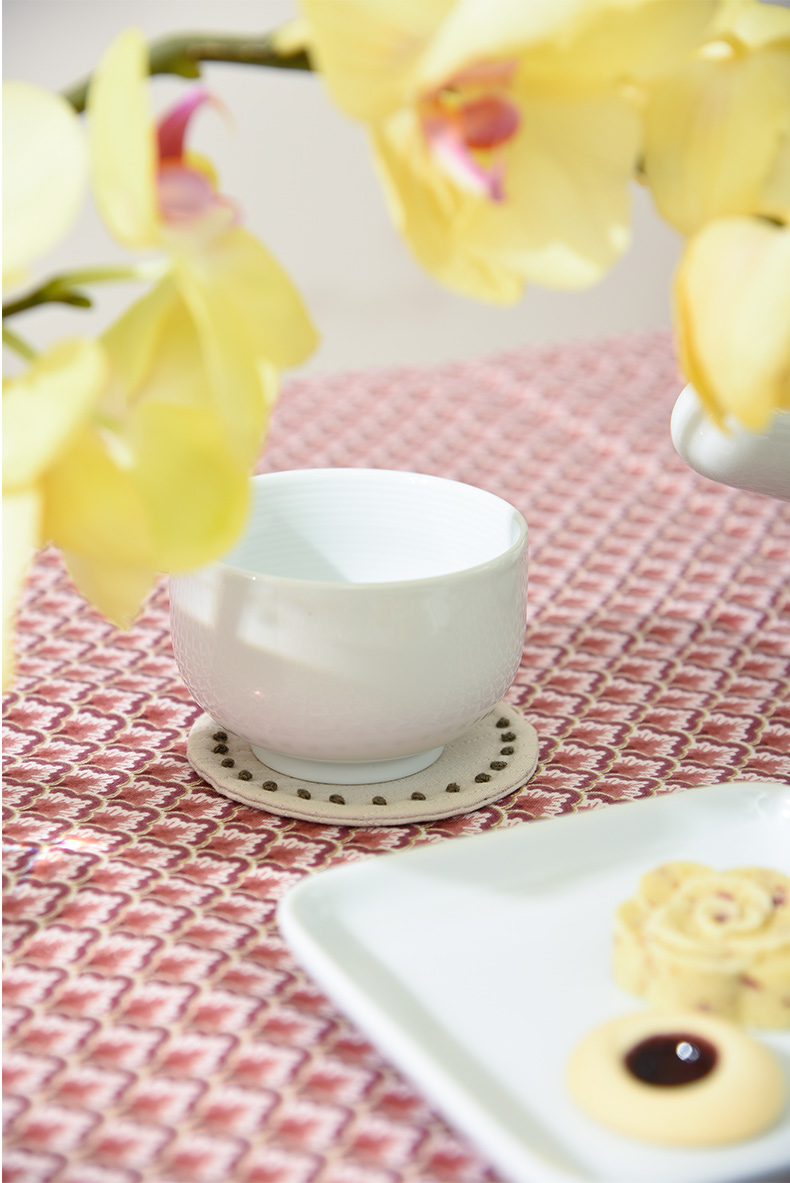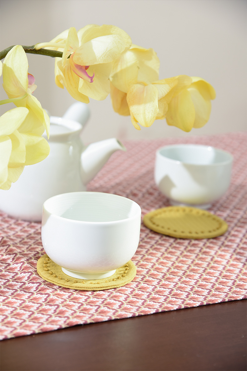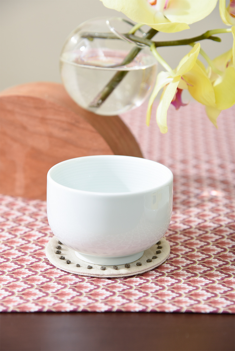 打籽绣圆形杯垫纯色布艺咖啡圆杯垫日式简约