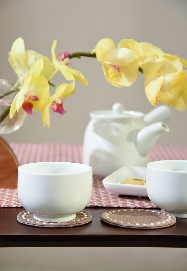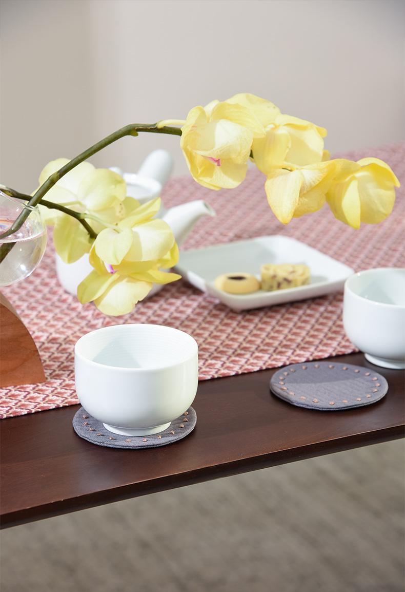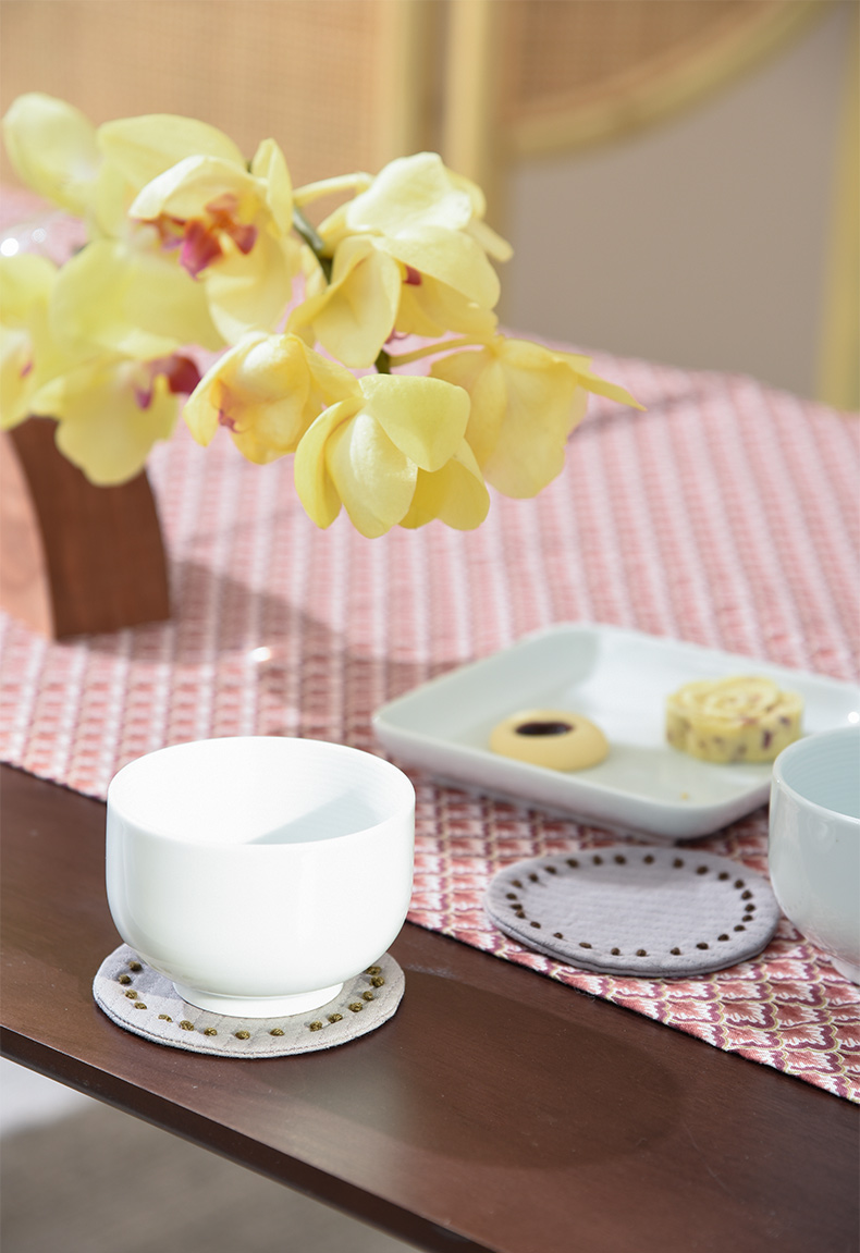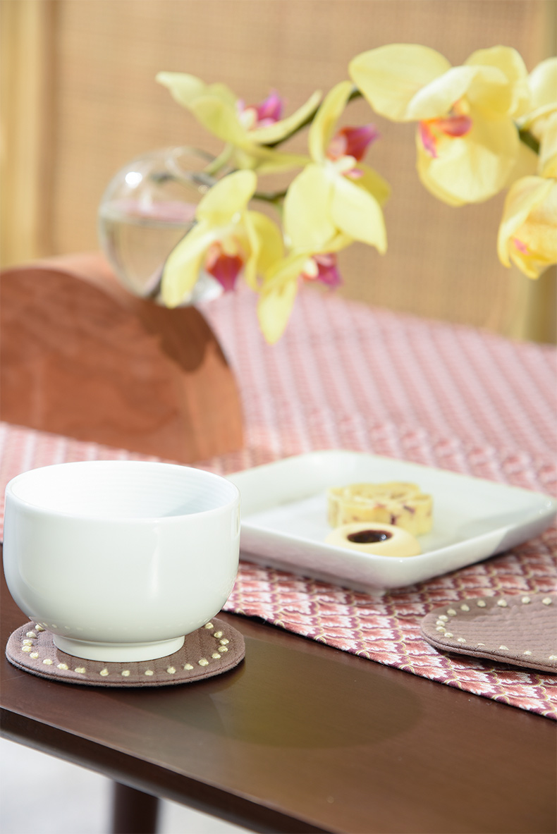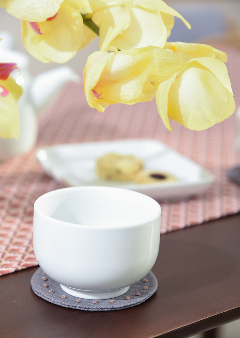 打籽绣圆形杯垫纯色布艺咖啡圆杯垫日式简约