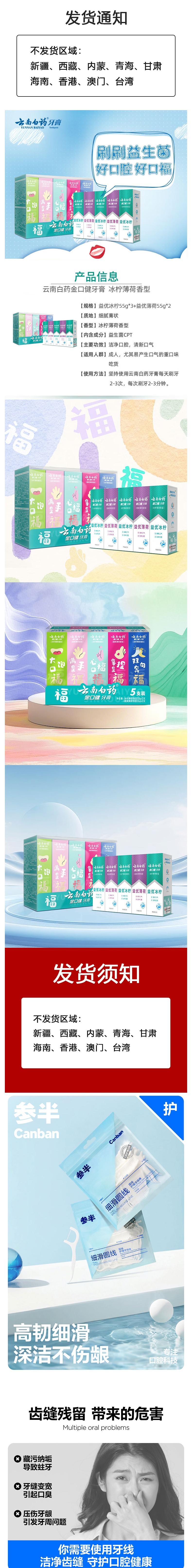 云南白药 益生菌牙膏清新口气金口健牙膏好口福套装55g*5支 1070615672