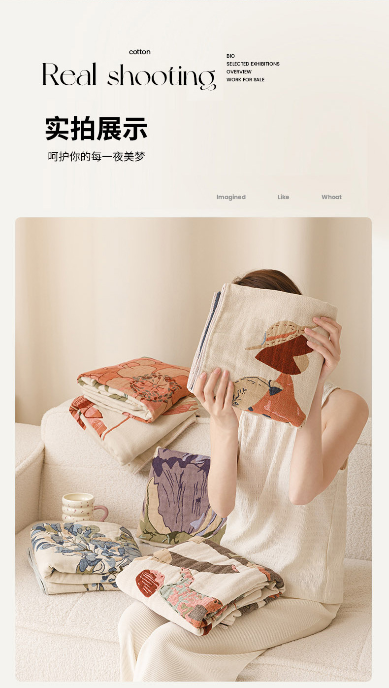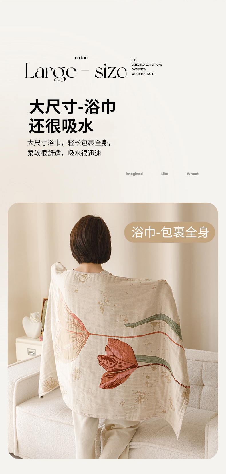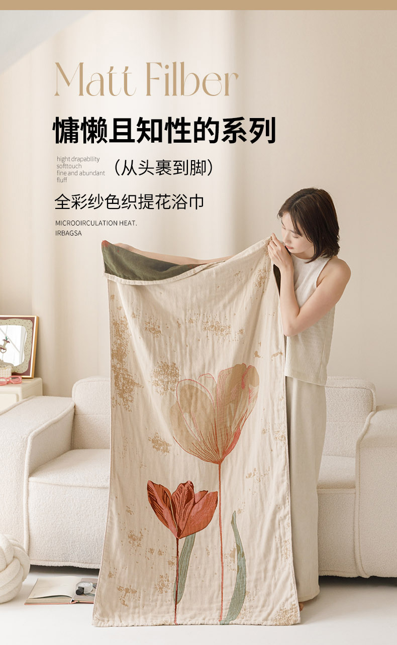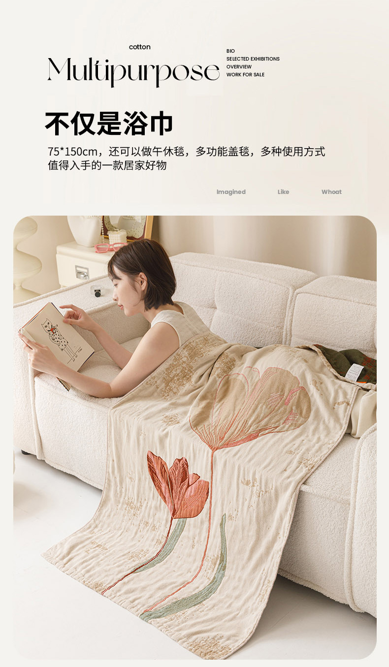 【品牌直发】加倍生活 全棉彩纱浴巾多功能披肩毯二合一 75*150cm新疆棉毛巾被 午睡纱布毛巾被