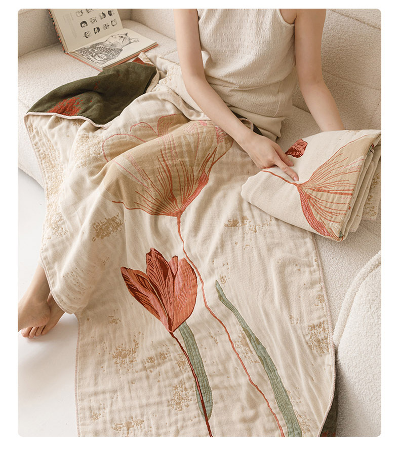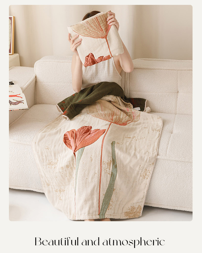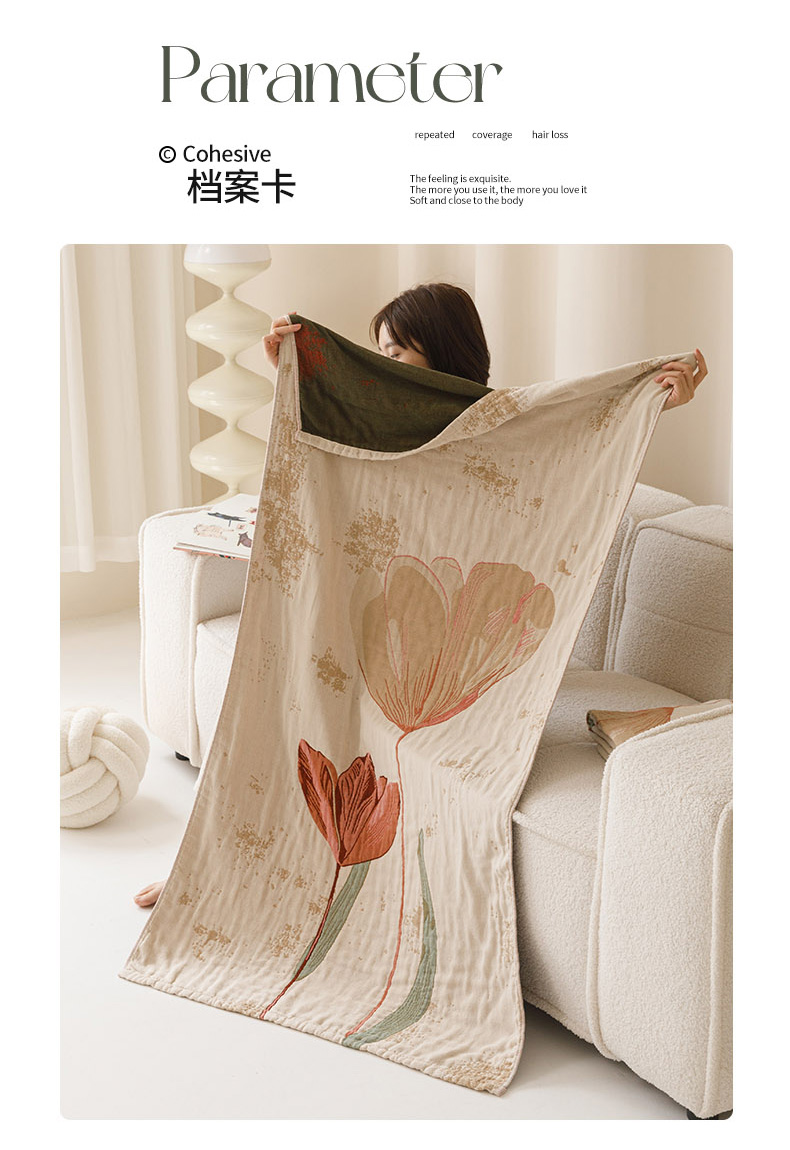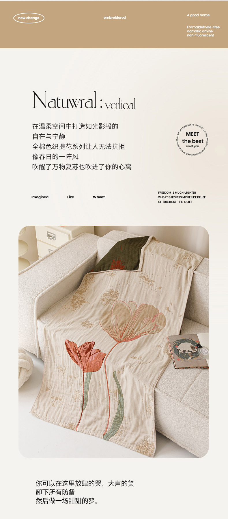 【品牌直发】加倍生活 全棉彩纱浴巾多功能披肩毯二合一 75*150cm新疆棉毛巾被 午睡纱布毛巾被