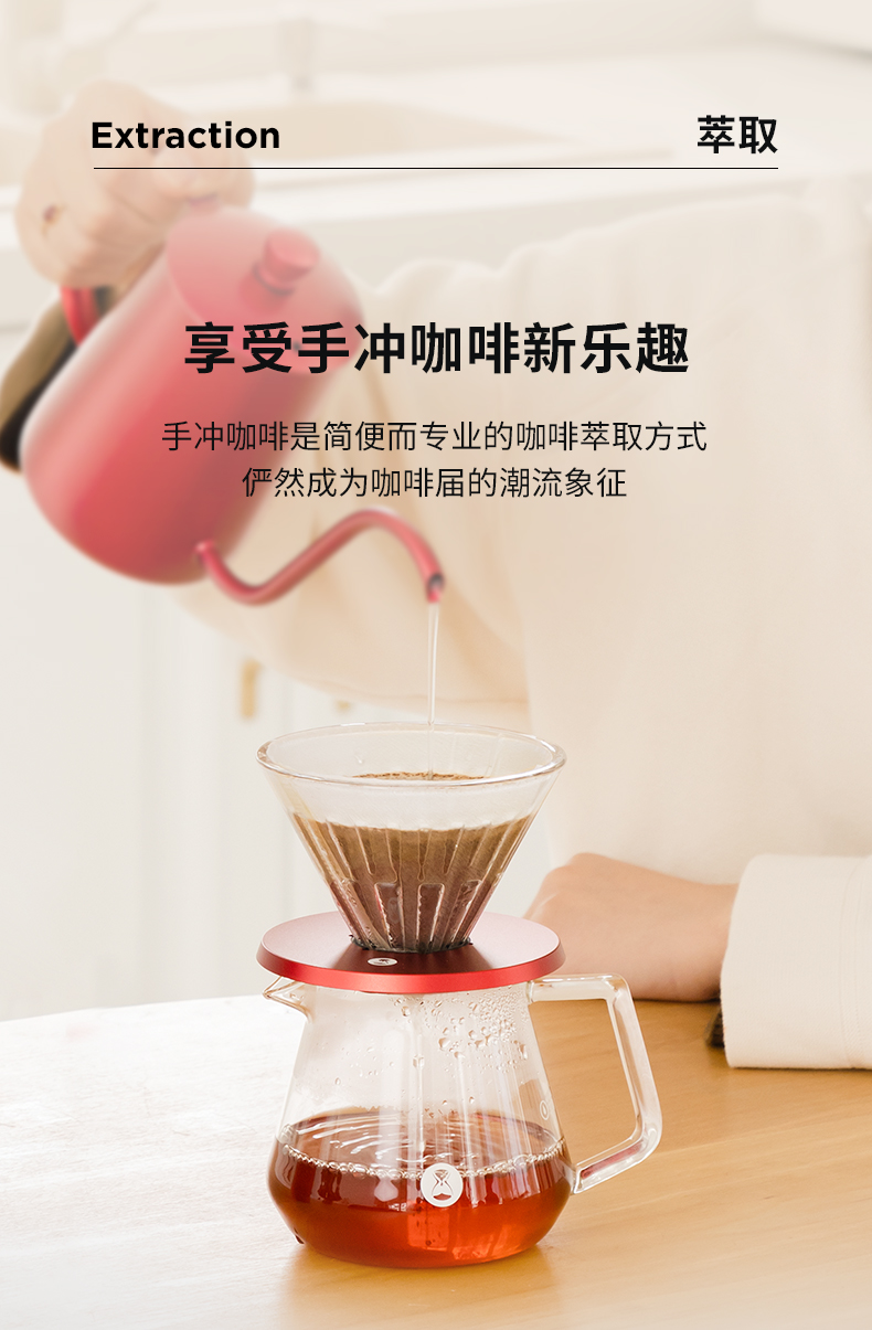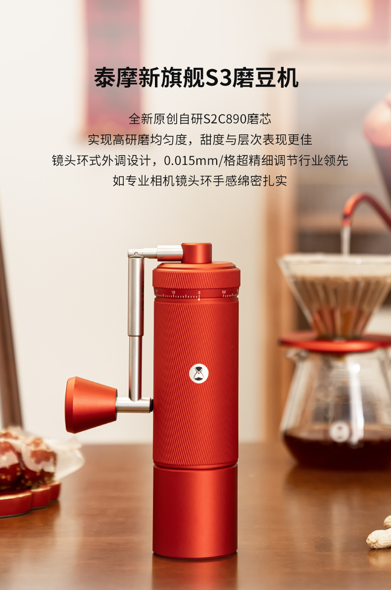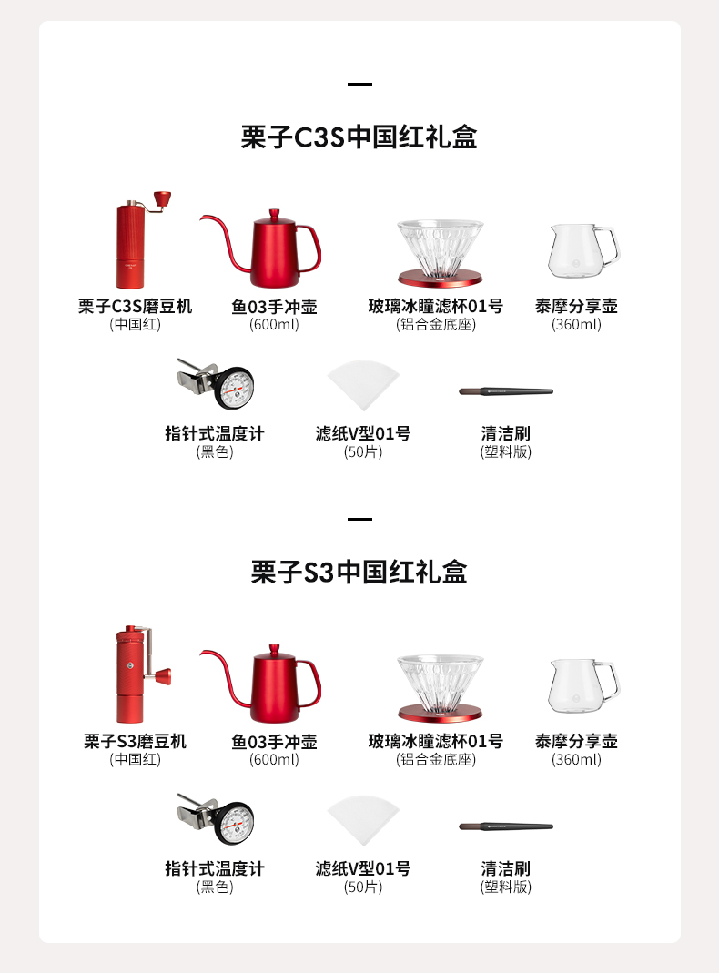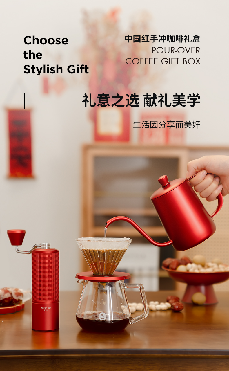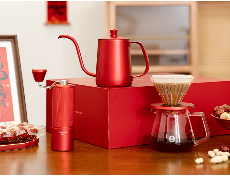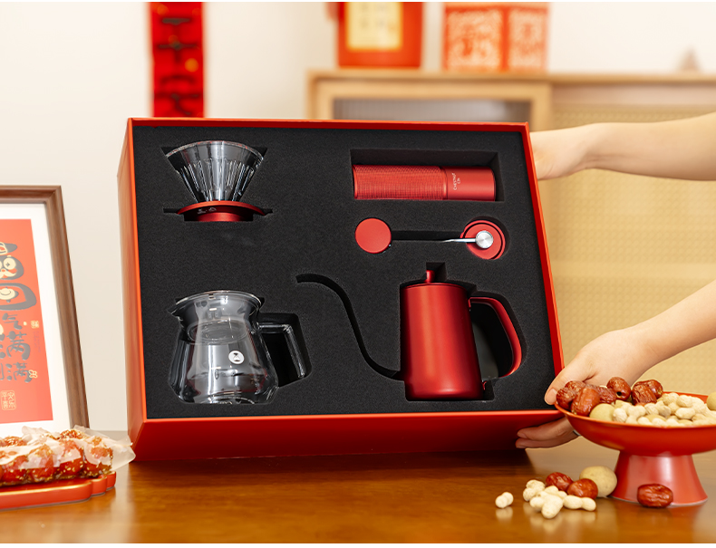 泰摩 中国红全套手冲咖啡礼盒 磨豆机咖啡壶器具圣诞节日送礼之选
