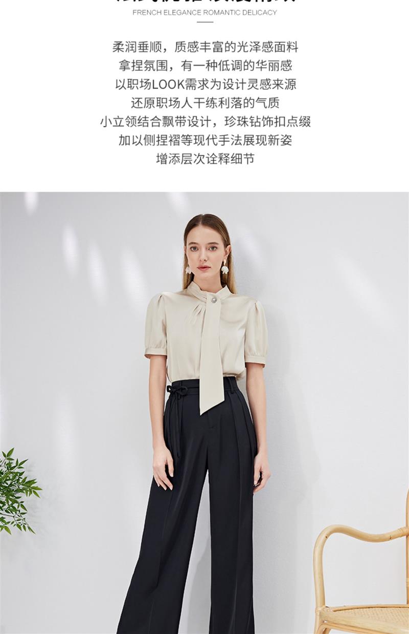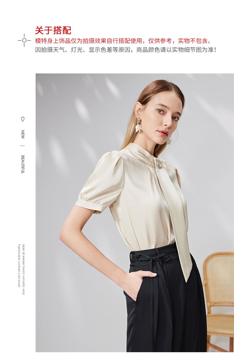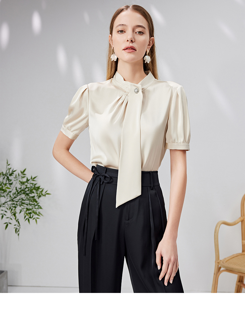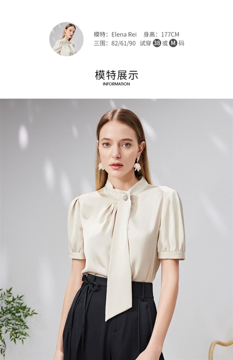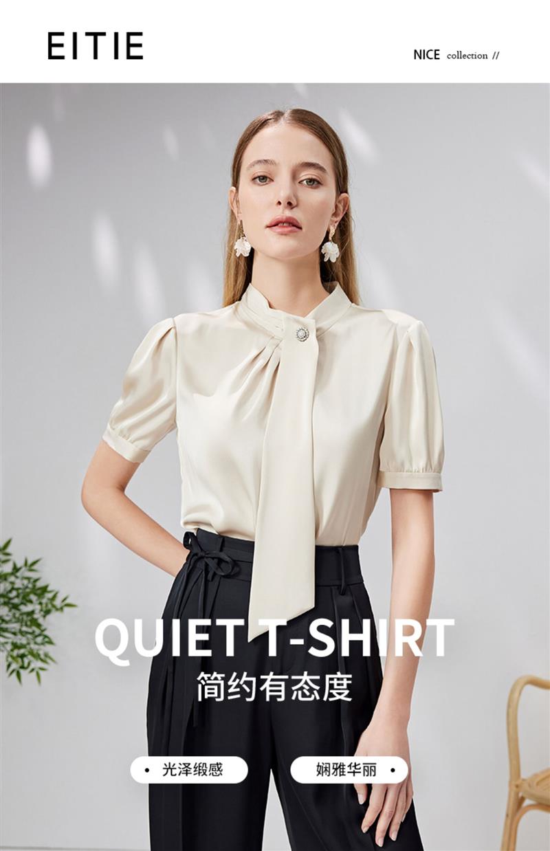 EITIE爱特爱高级感半高领飘带复古直筒上衣显瘦通勤夏新款B13132
