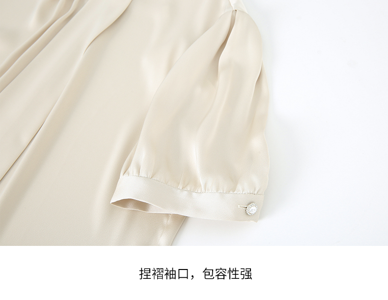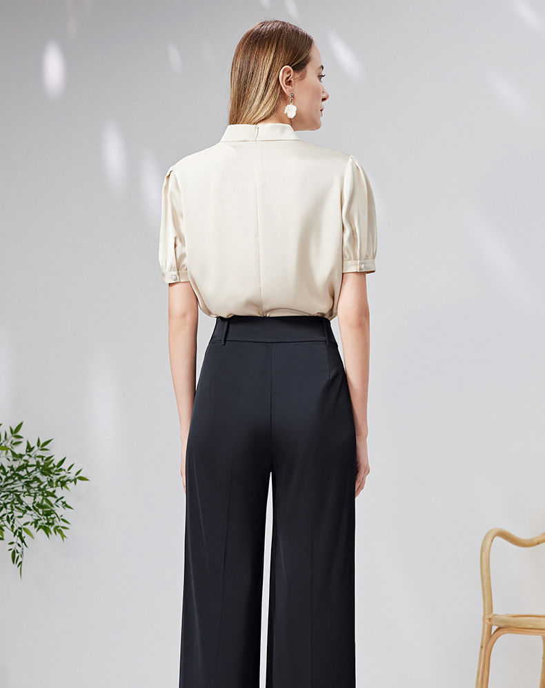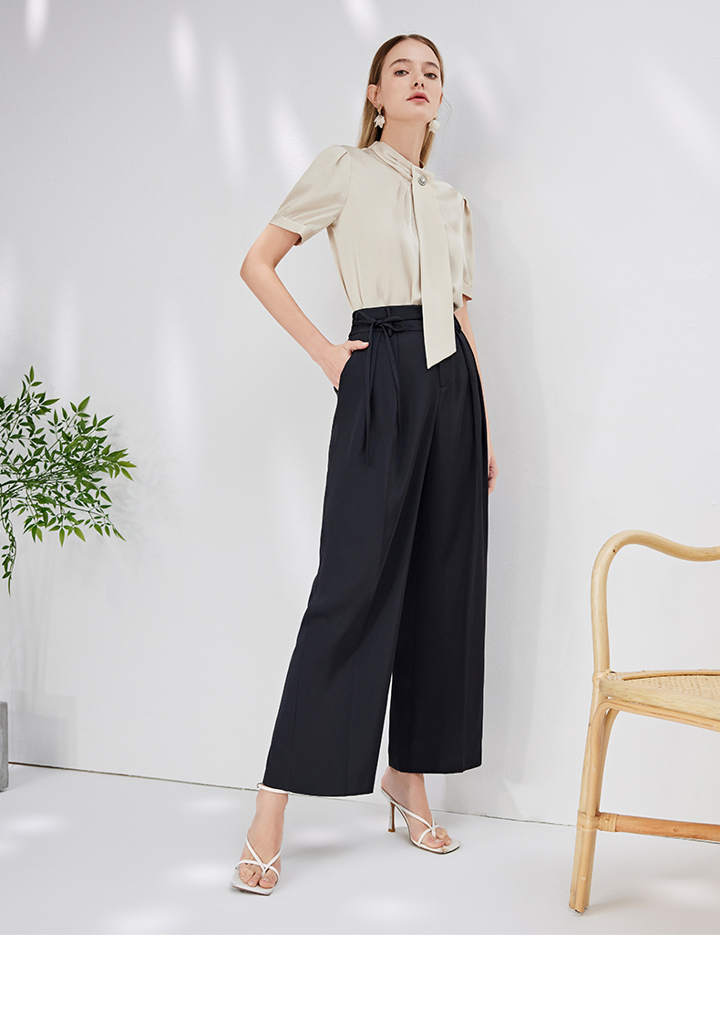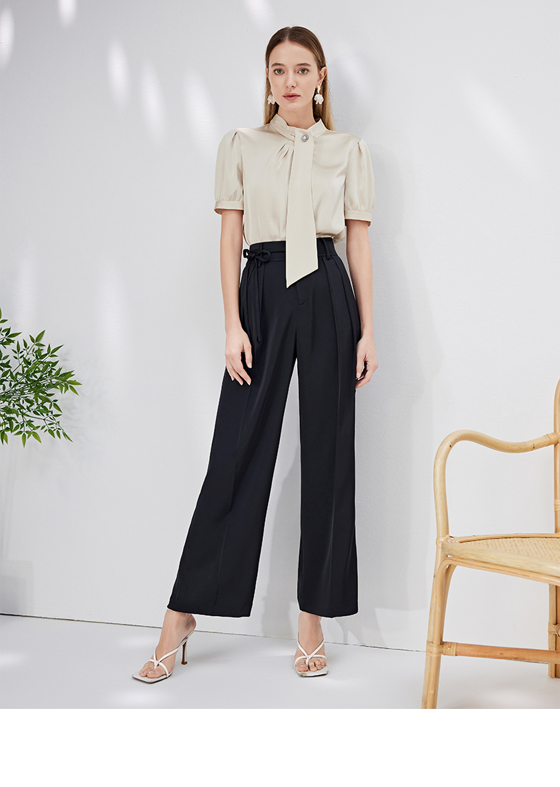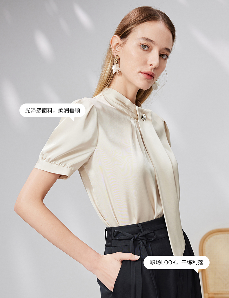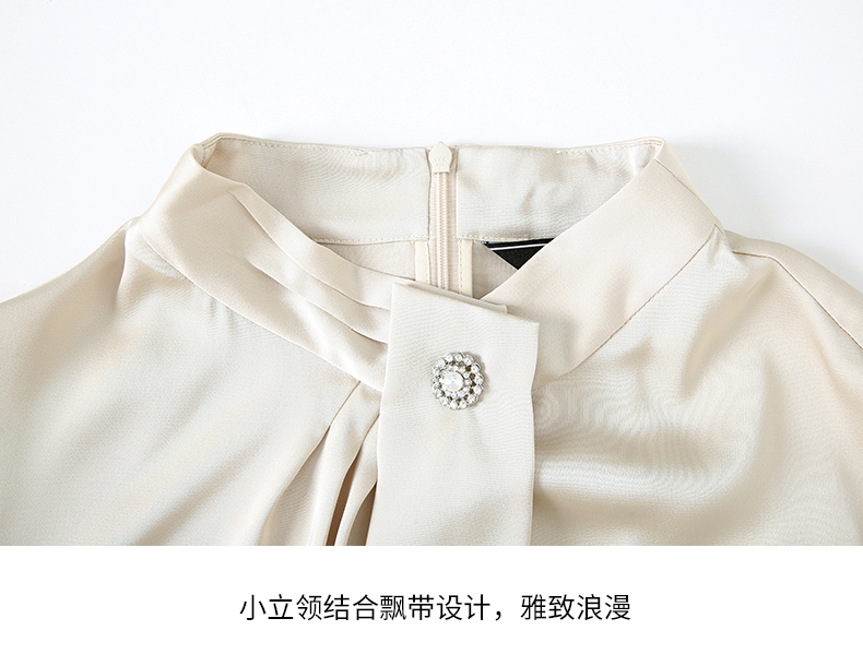 EITIE爱特爱高级感半高领飘带复古直筒上衣显瘦通勤夏新款B13132