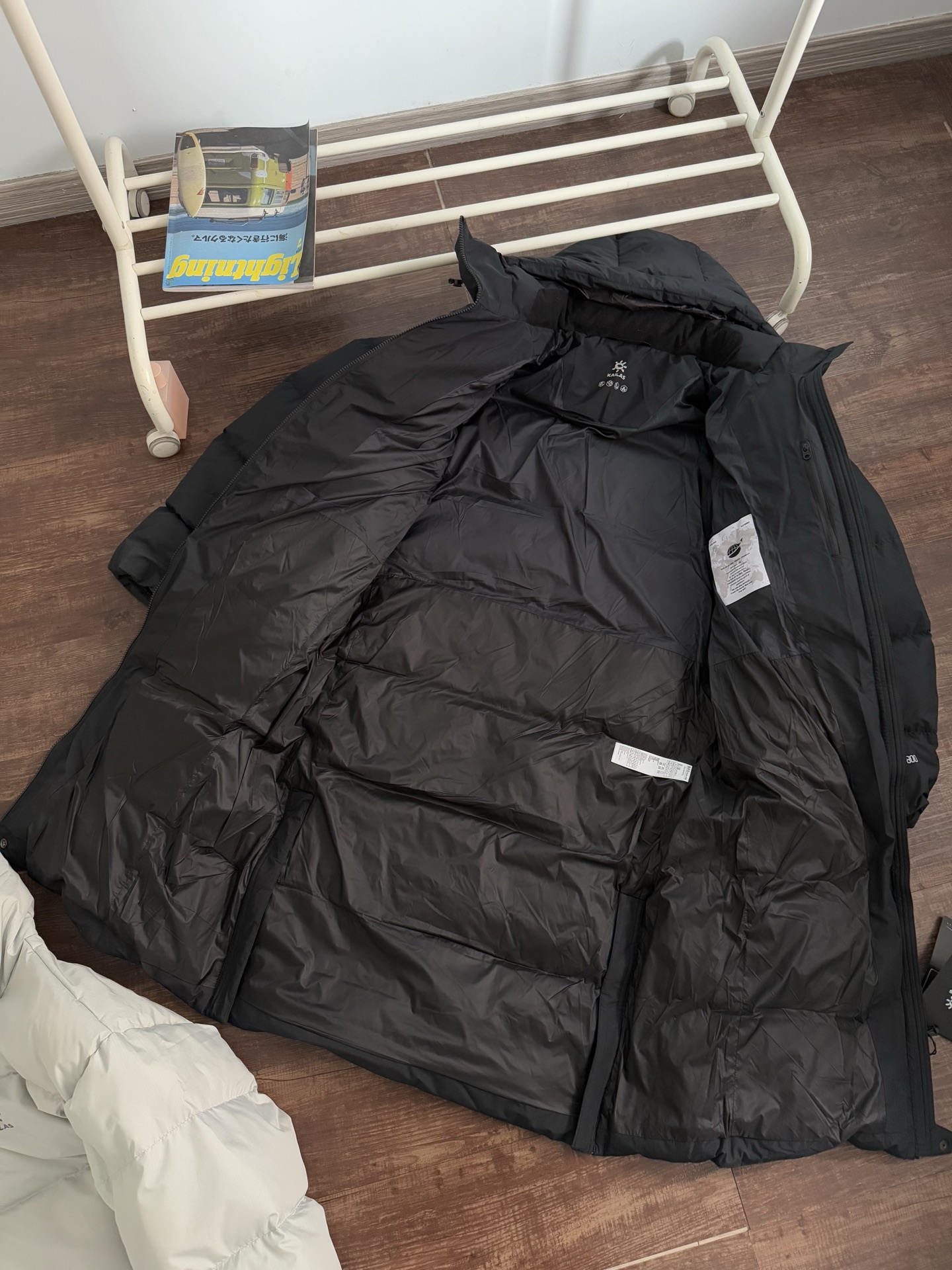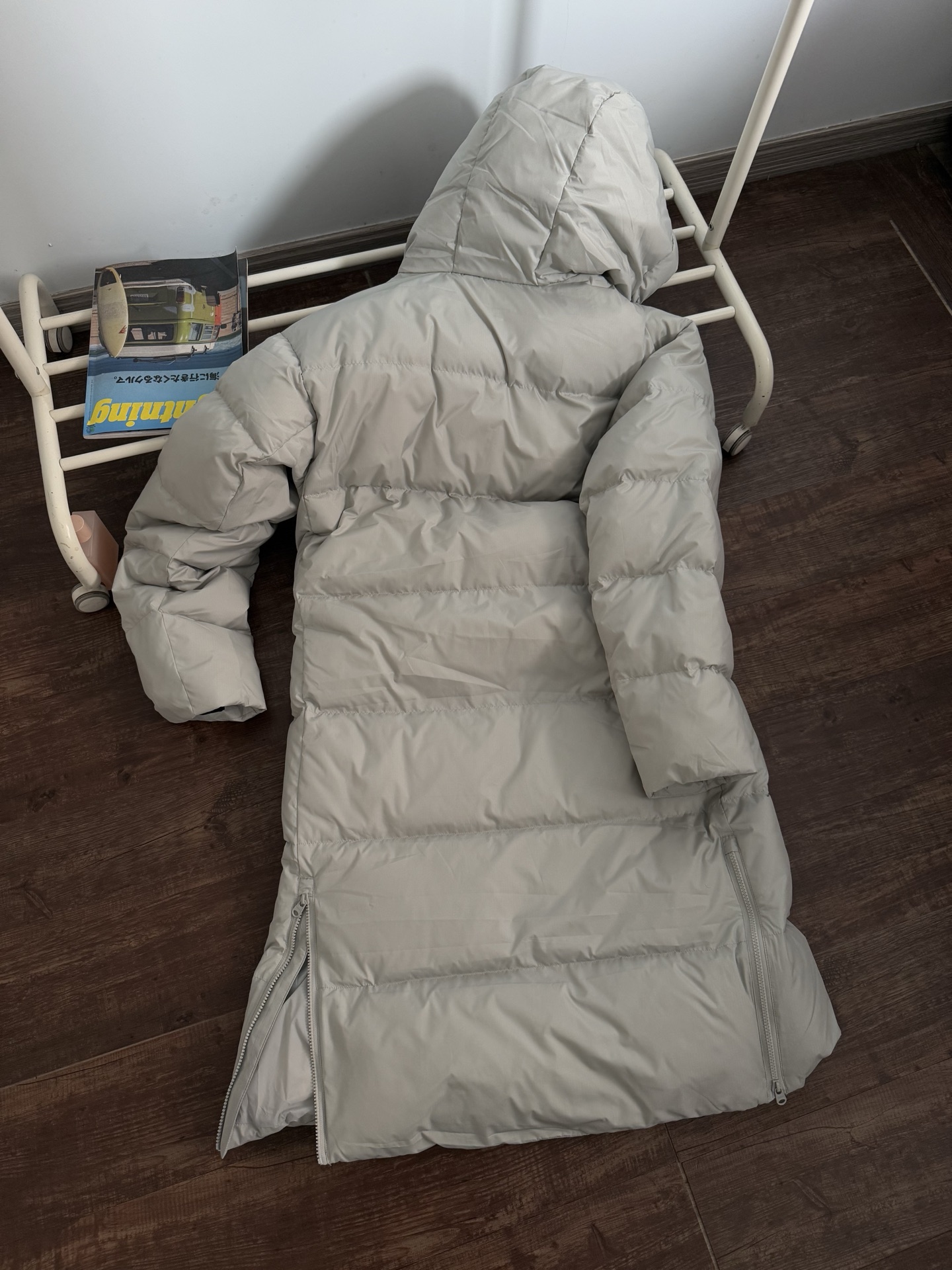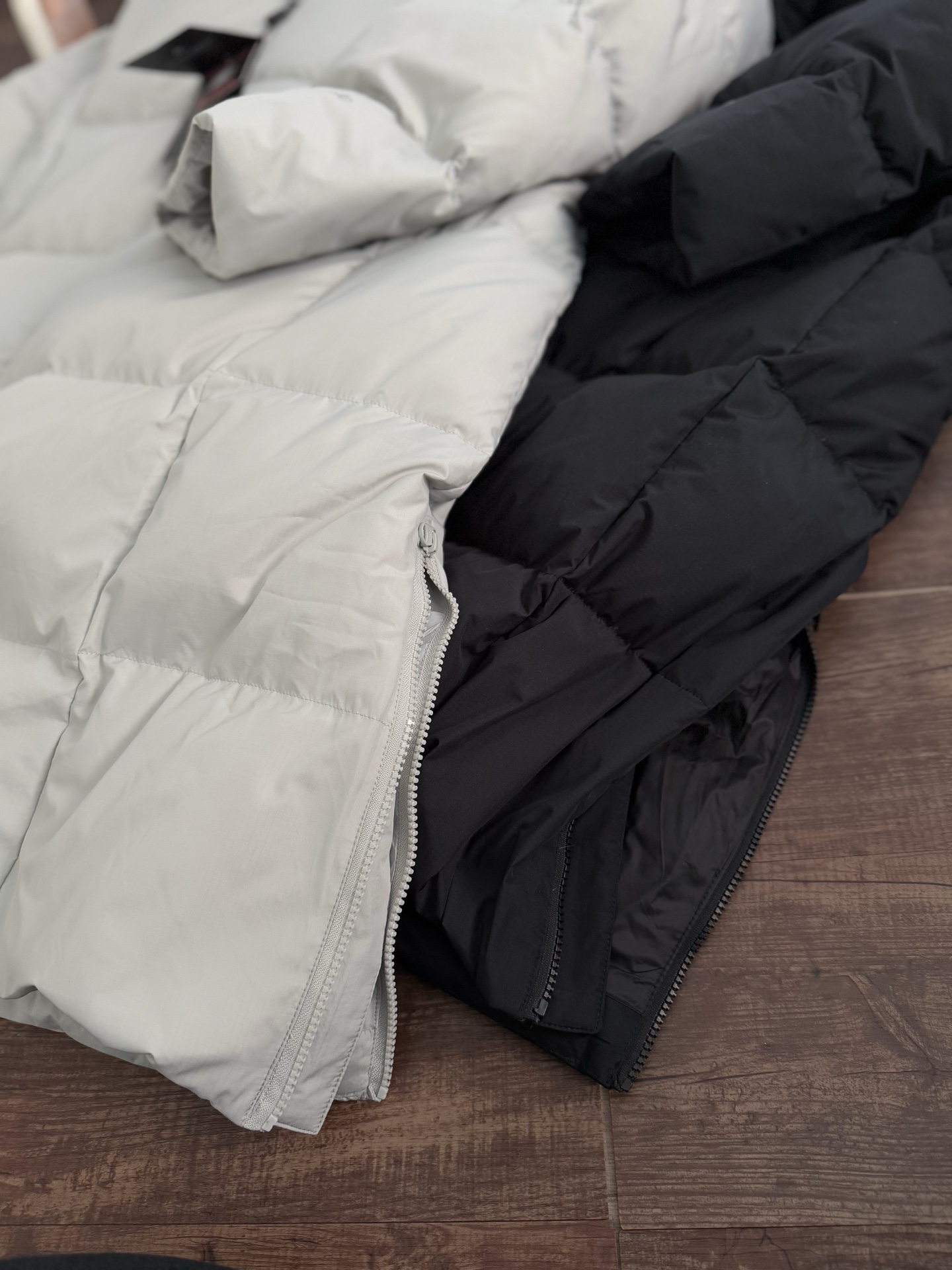 线上3000+客供仿生科技防风防水面料,轻量透气、防止钻绒,内里95%白鹅绒填充,轻盈蓬松,保暖舒适!长款过膝版型,双开拉链门襟,下摆可调节拉链开衩设计,保证户外也可行动自如,防风螺纹袖口,领里绒布拼接,内置拉链口袋,做工细节都无可挑剔,上身效果一级棒,可配情侣,喜欢的不要错过!