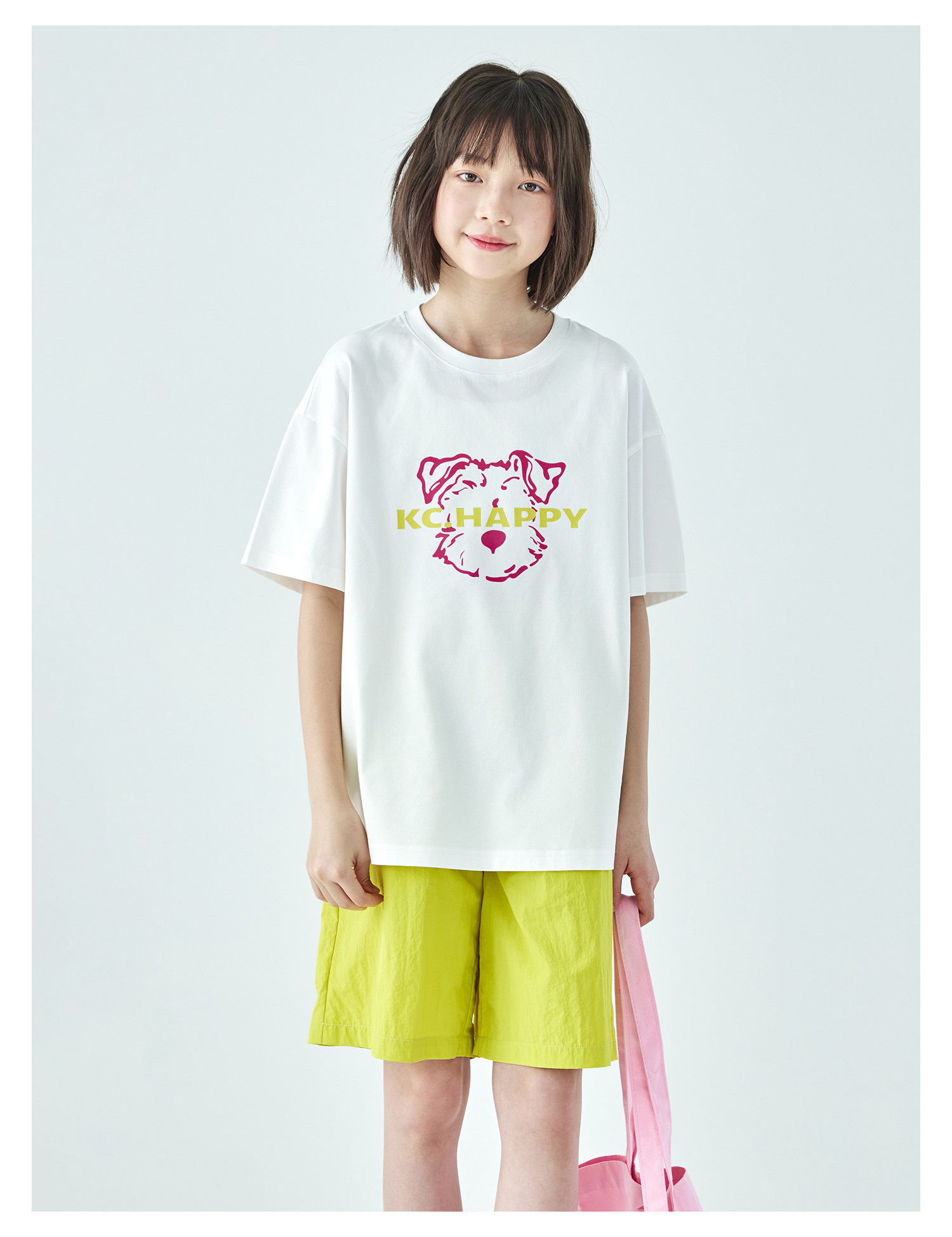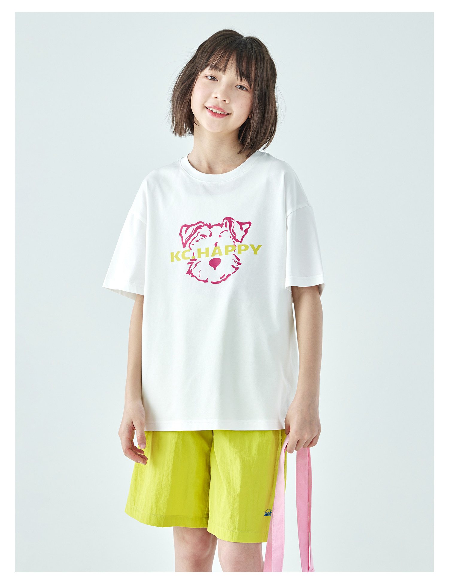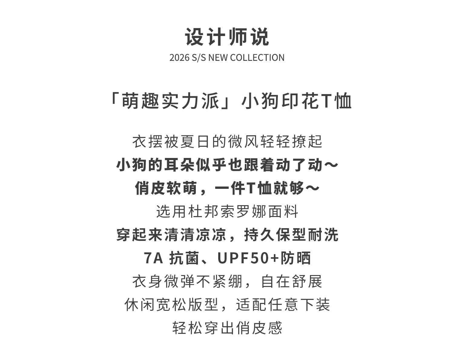 棵初26年夏季新款中大女童小狗印花凉感T恤7A抗菌UPF50+防晒短袖